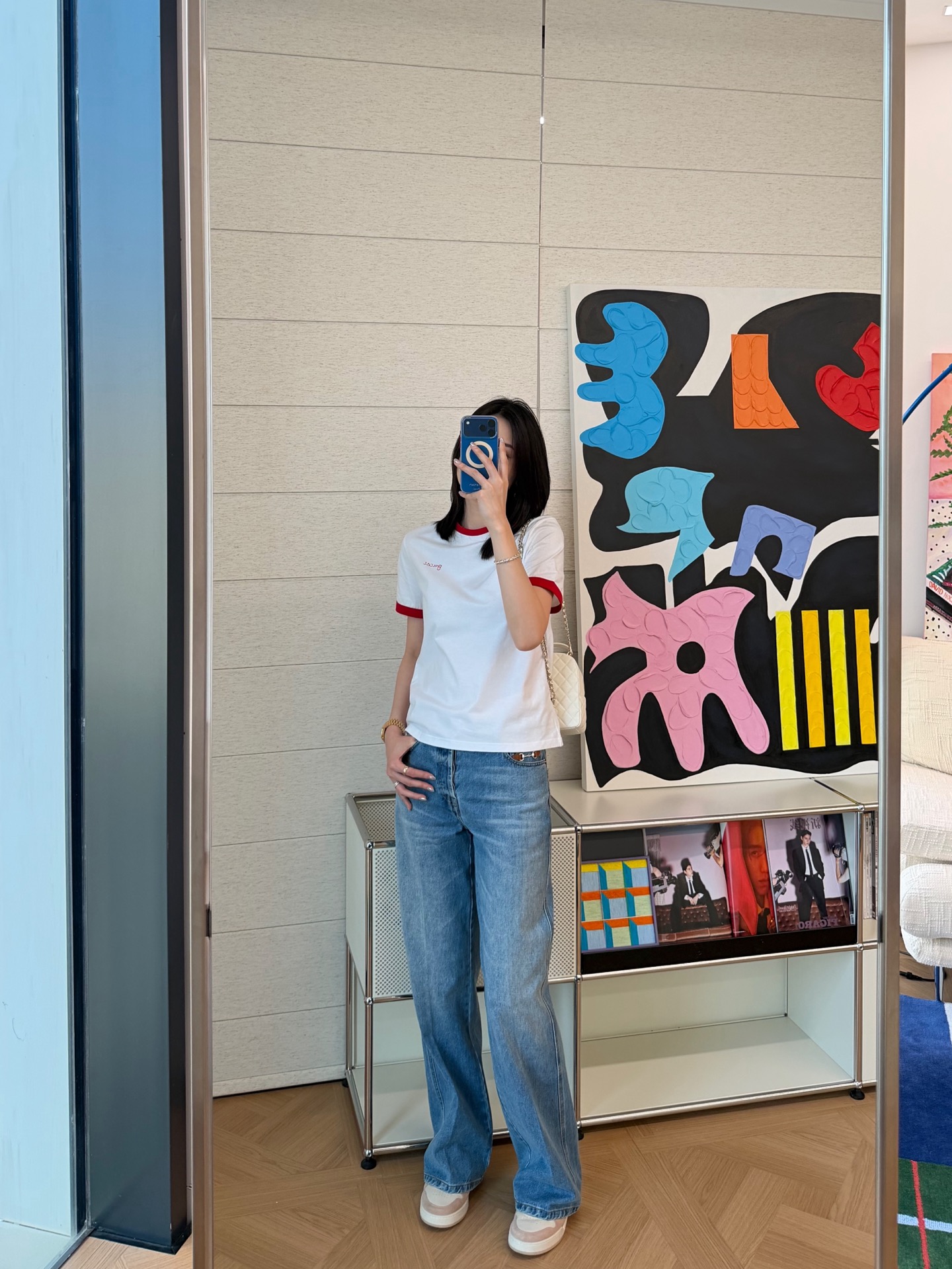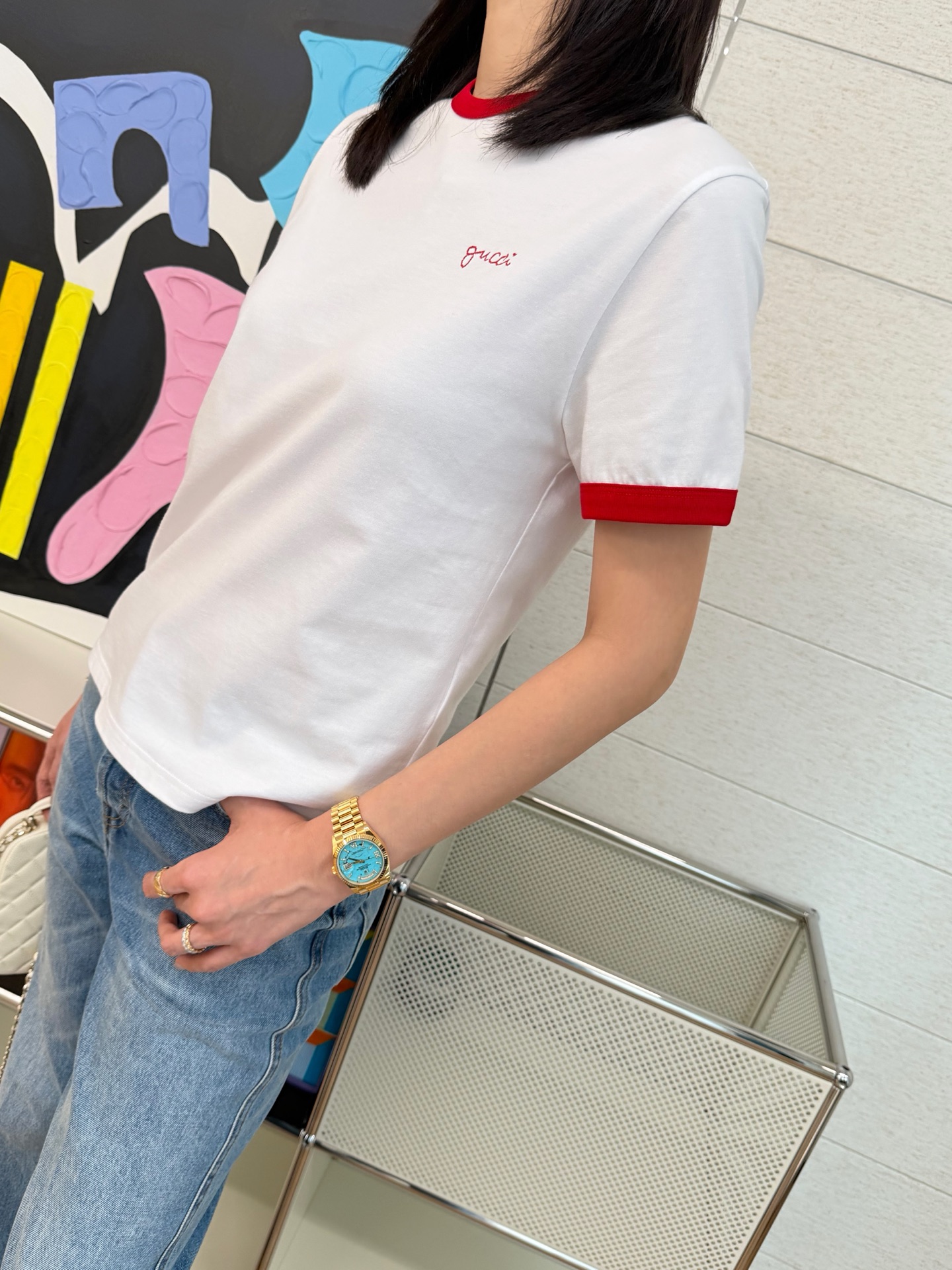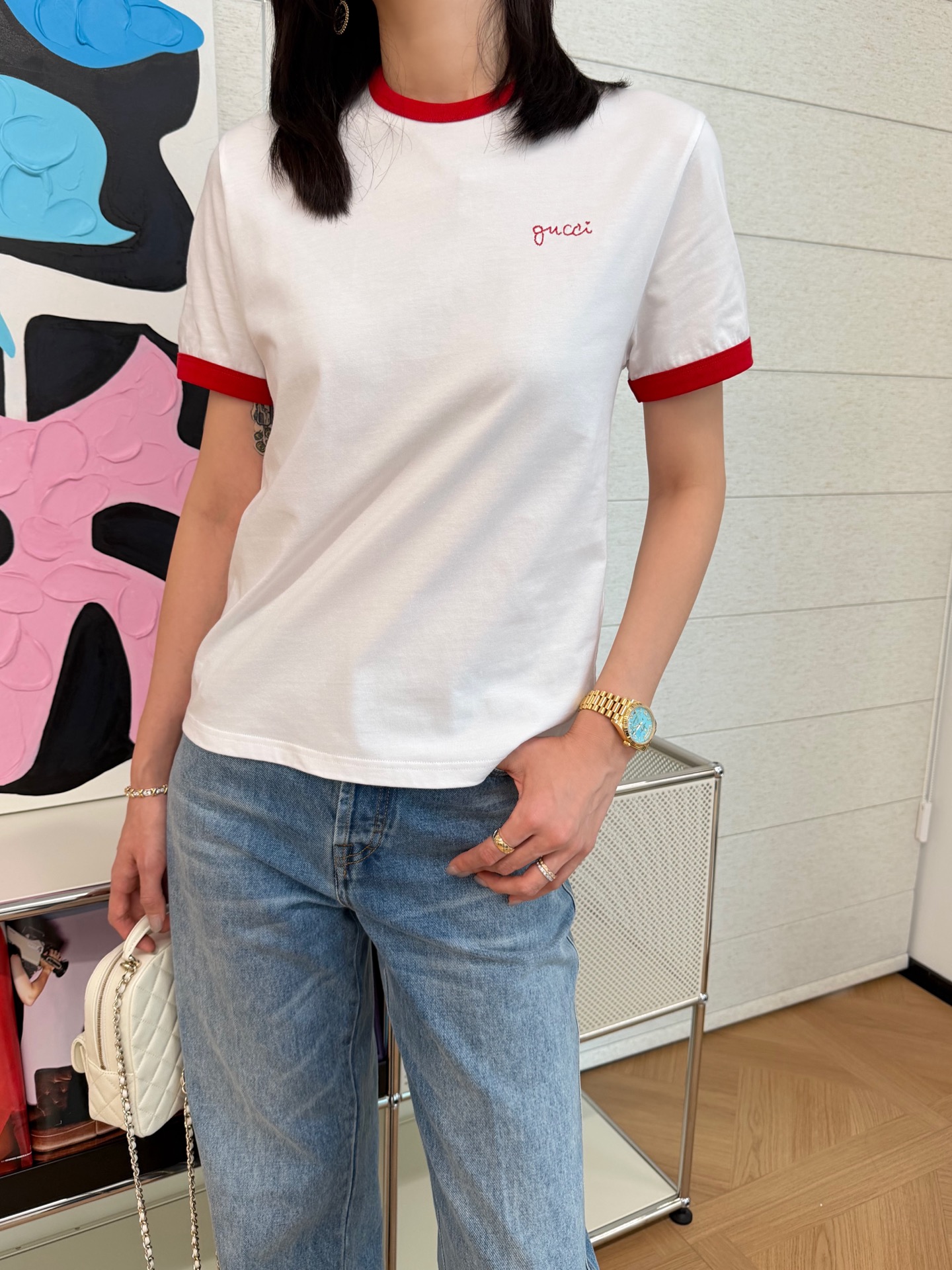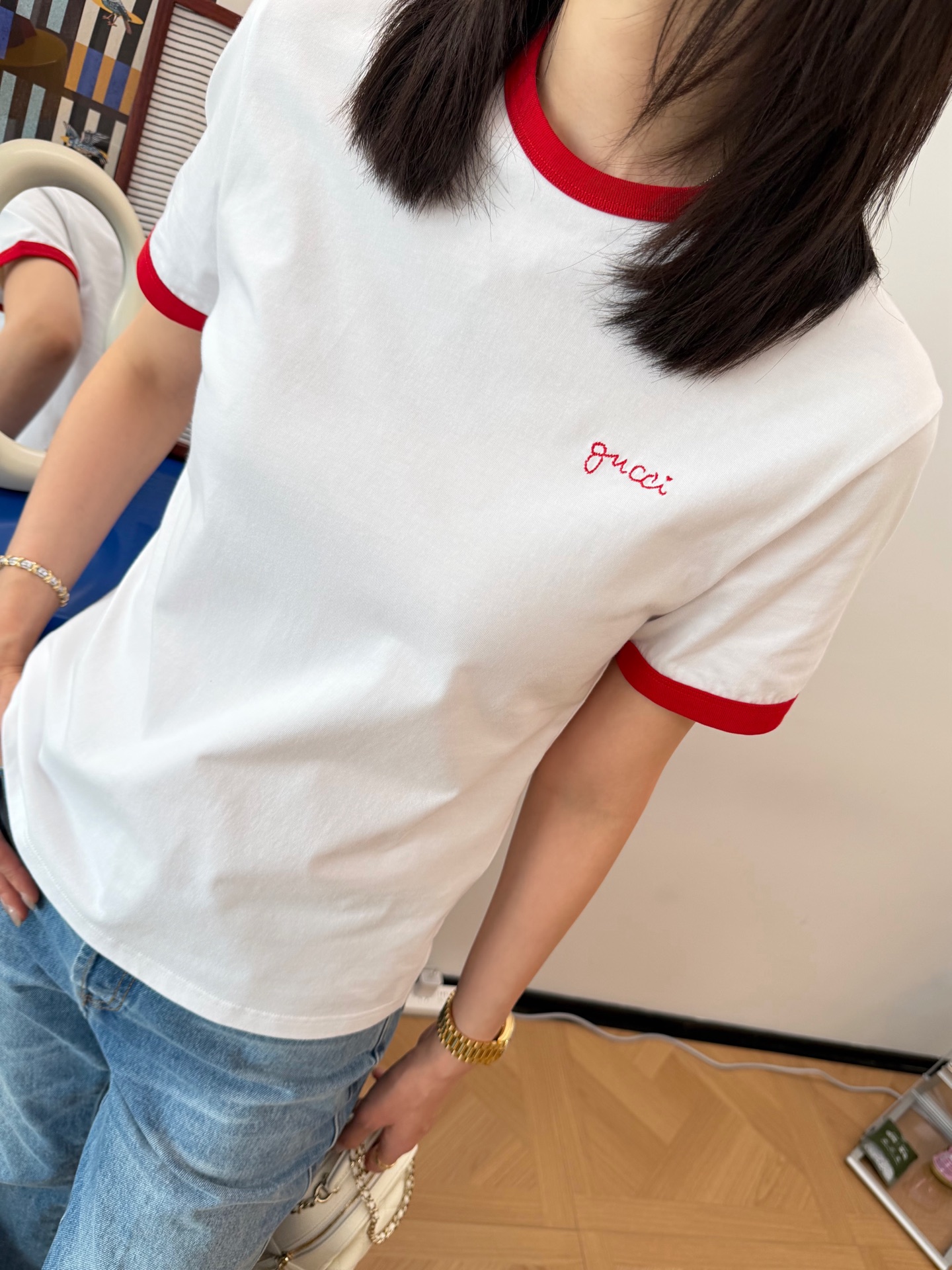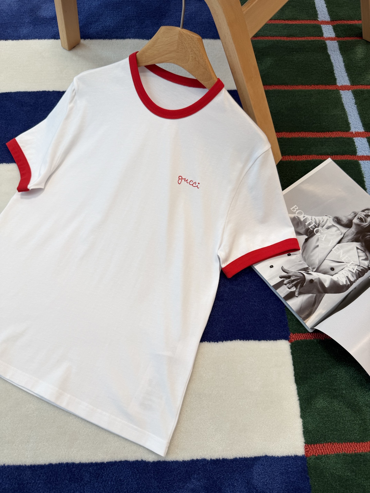 衣柜里永远缺一件白T📸直到遇见它✨经典红白配色❗️利落又明媚😘像把夏日骄阳穿在了身上💯胸口的刺绣小字是不动声色的精致❤️看似随意🍓却藏着毫不费力的高级感🎶定织高支纯棉面料'手感细腻 上身亲肤透气😘不必用力凹造型📷一件就足够干净利落⚠️自带松弛贵气😎极简主义!