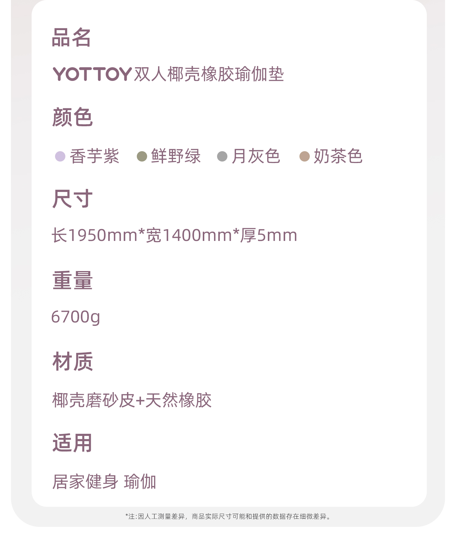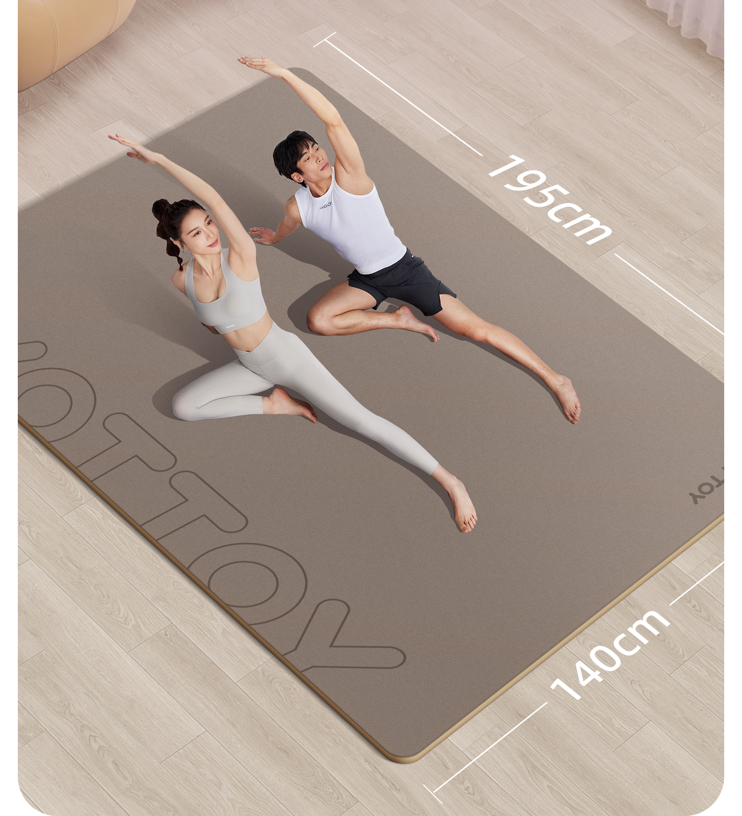 YOTTOYP瑜伽垫加大加宽爬爬垫天然橡胶防滑爬行垫双人磨砂PU橡胶2025新款地垫