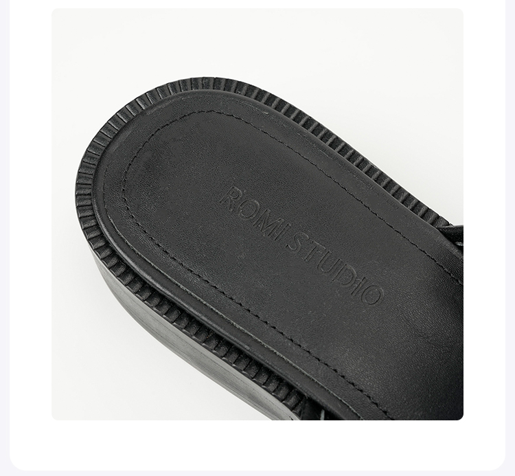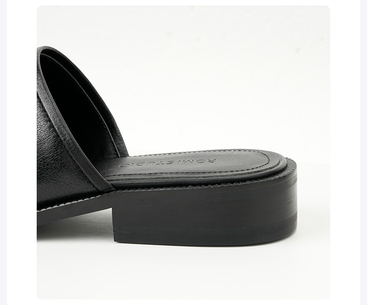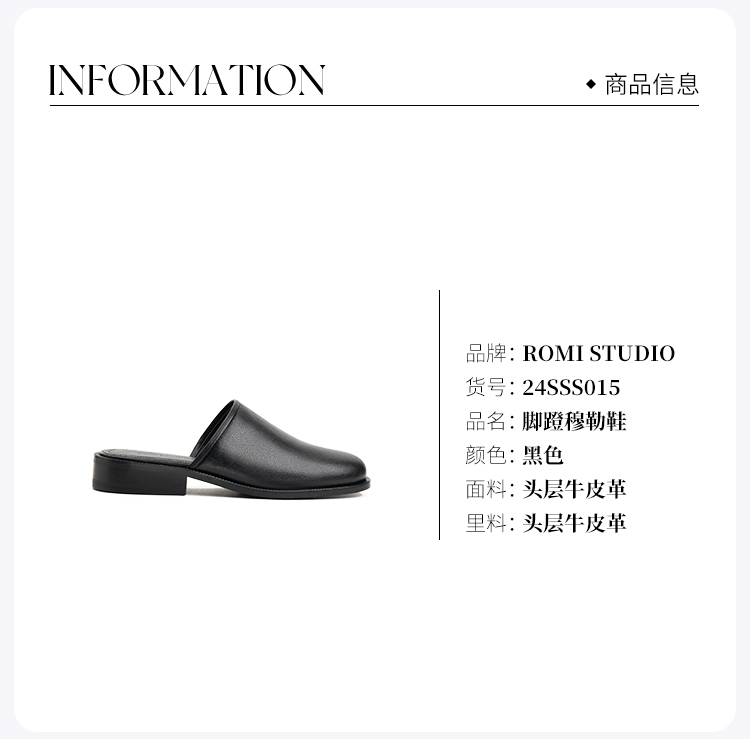 ROMI STUDIO“法式优雅“头层胎小水牛皮圆头一脚蹬穆勒鞋24SSS015