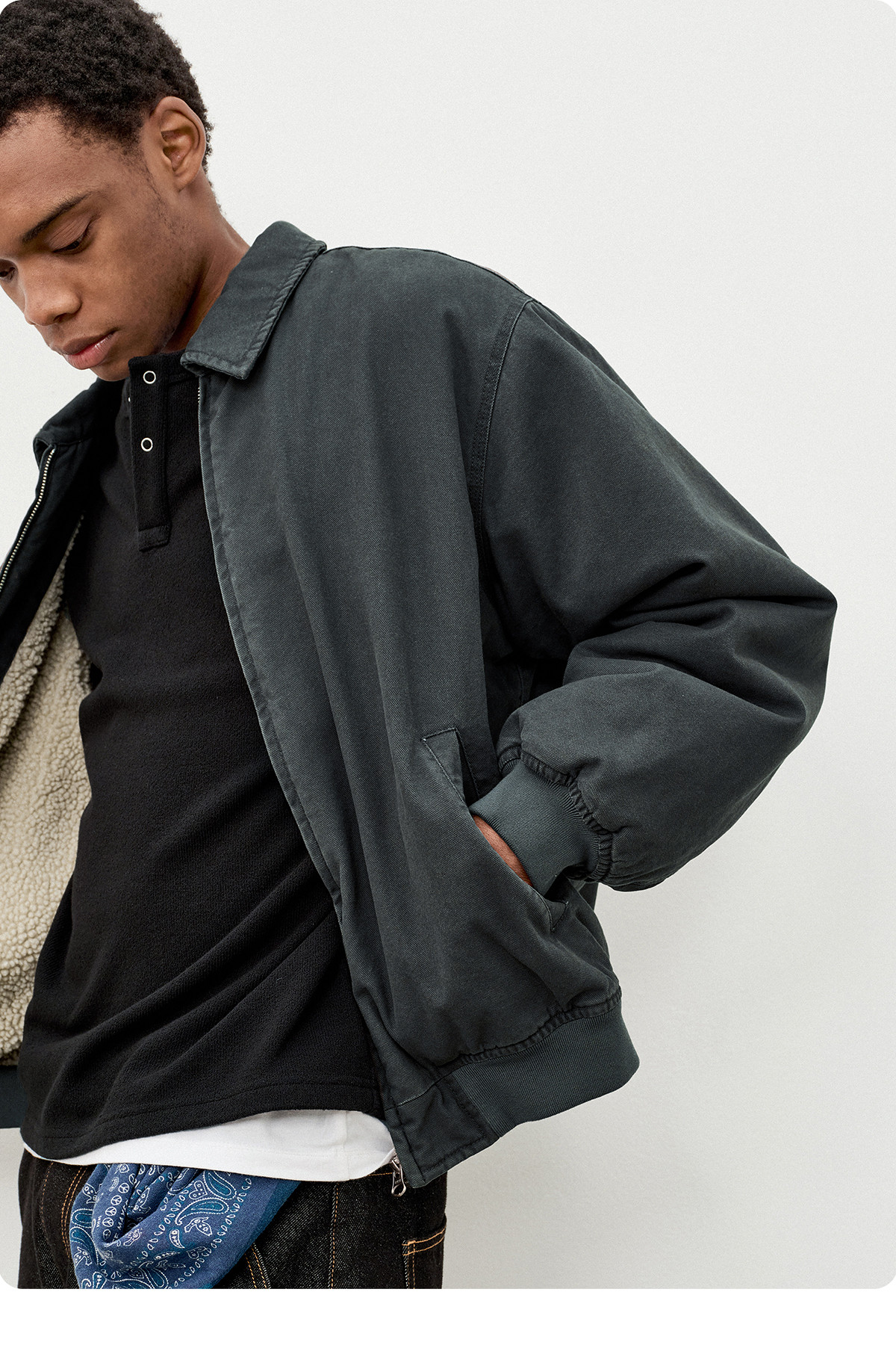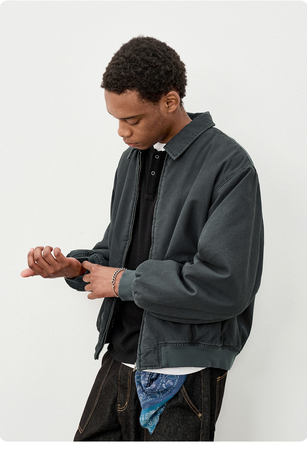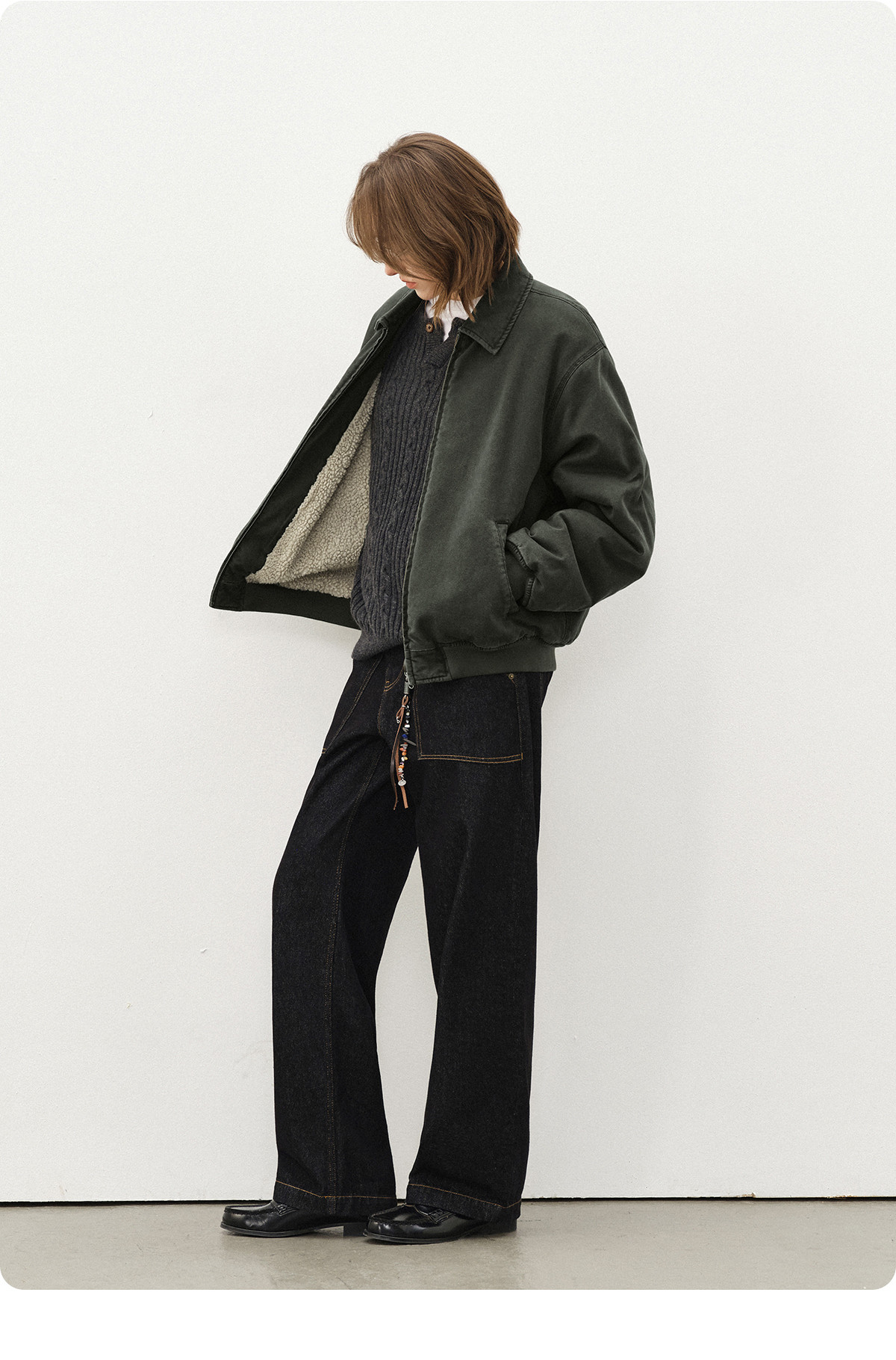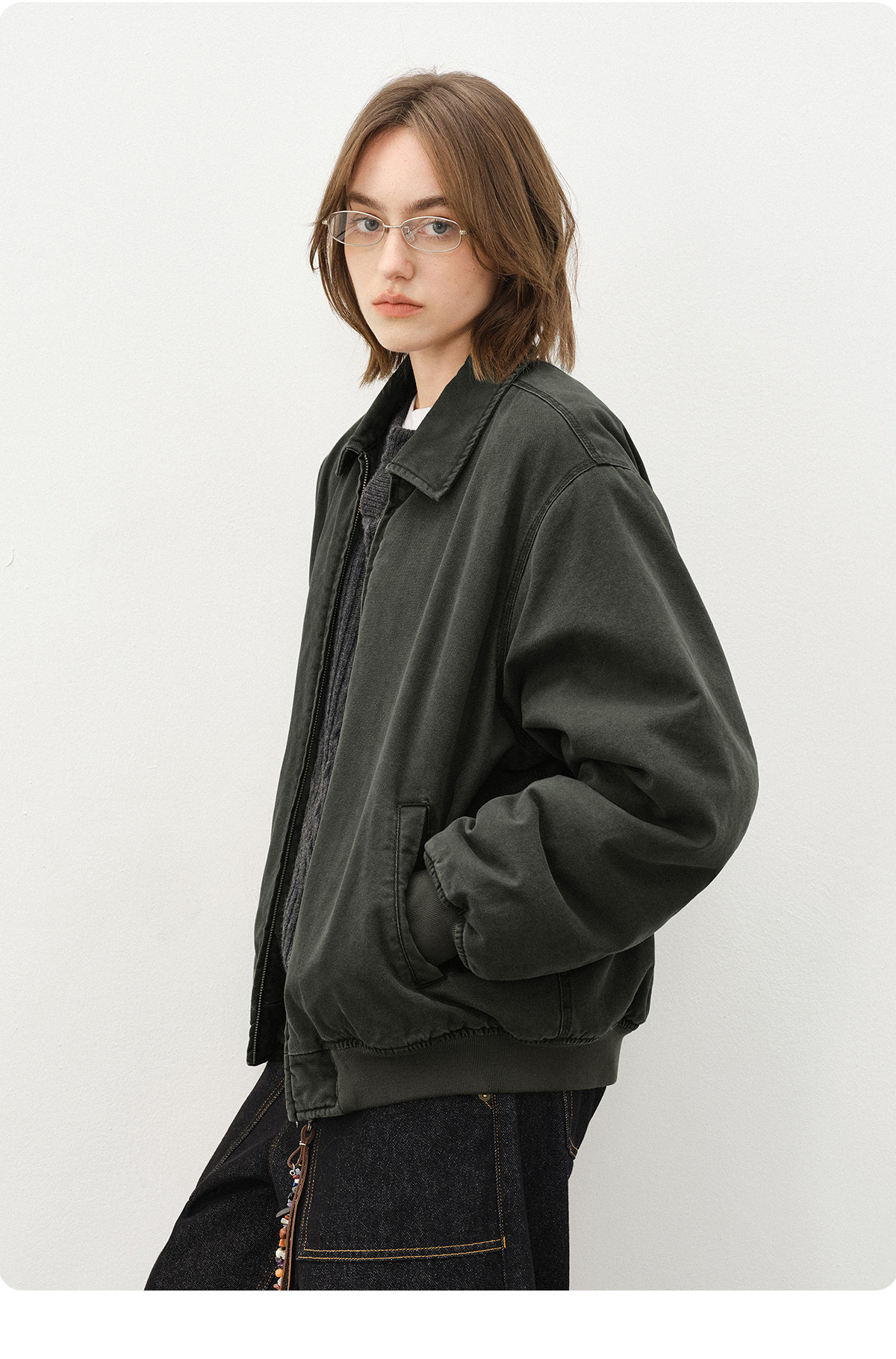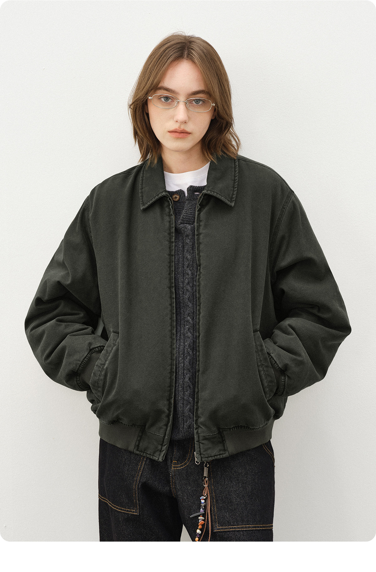 714street水洗做旧纯棉帆布翻领夹克2025秋冬季复古羊羔绒外套男