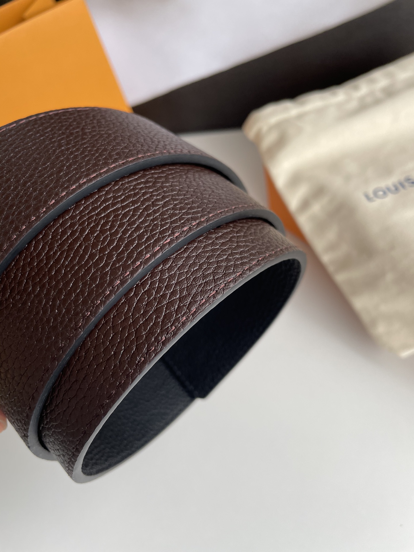Taurillon 腰带男士荔枝纹牛皮双面用,饰以标志性LV亮面金属条纹内侧工艺,高人气热门品质款式。40mm