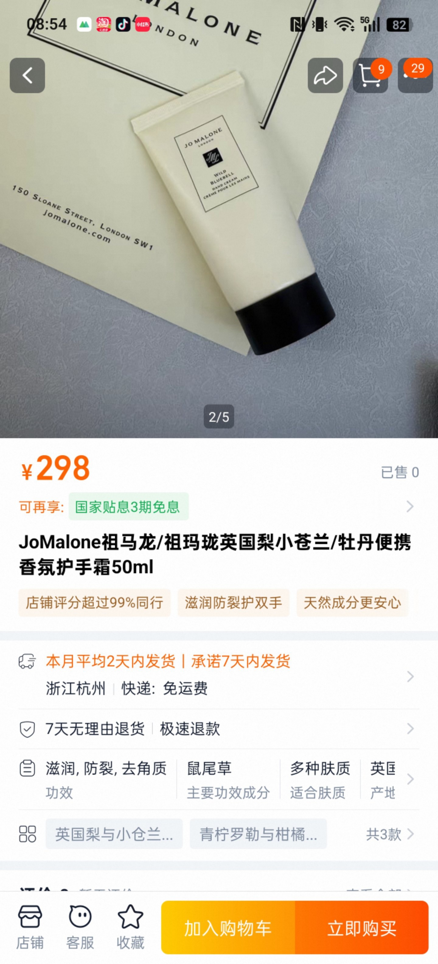 25年圣诞限量版护手霜 30ml*5 英国梨*2 牡丹 青柠 天竺葵 配礼袋+中文标