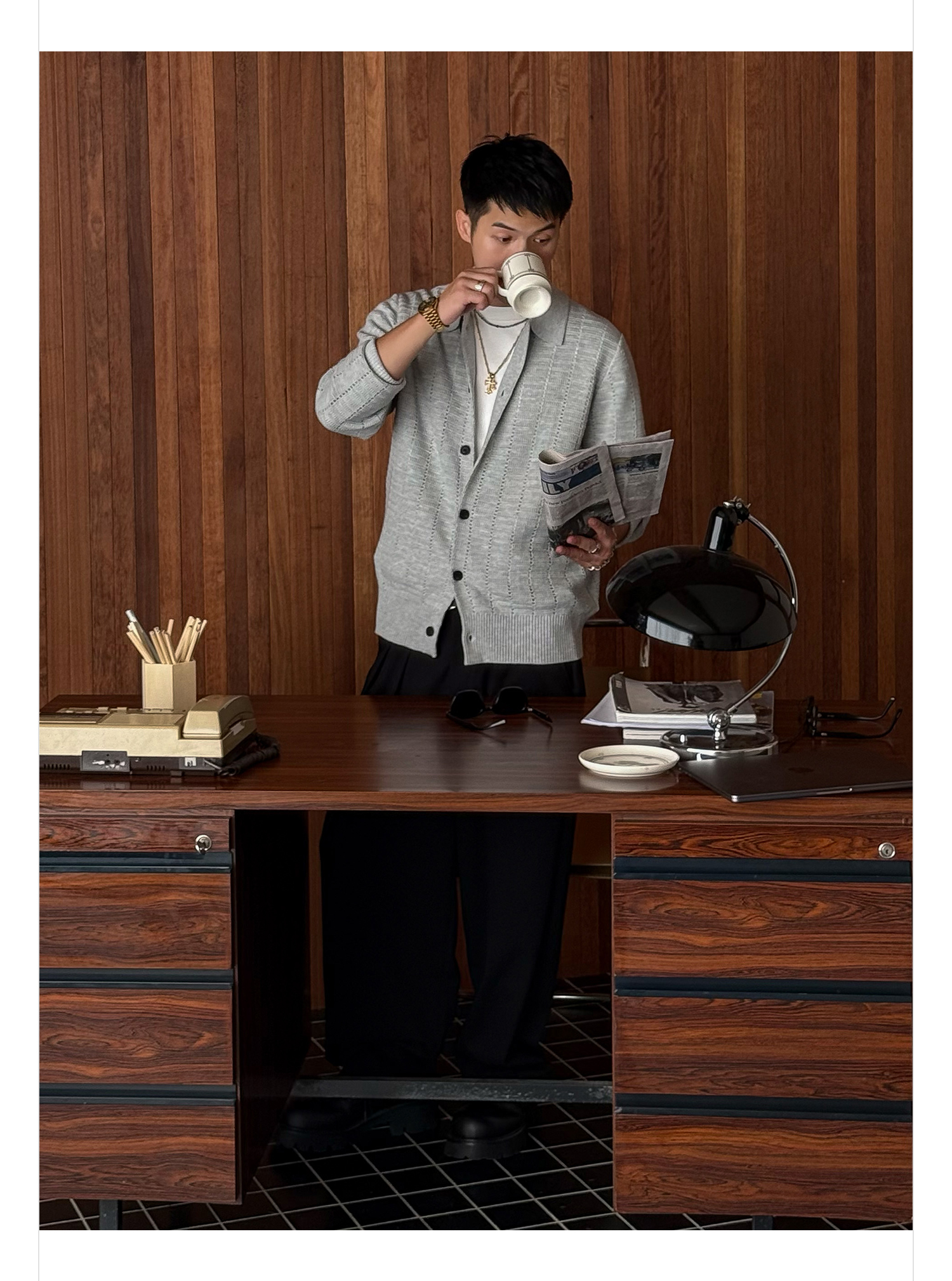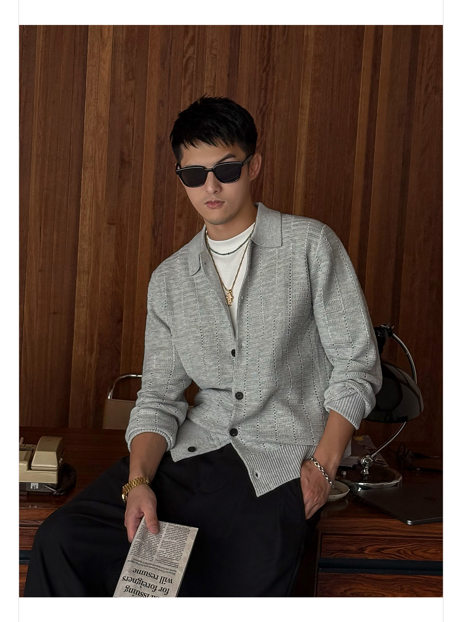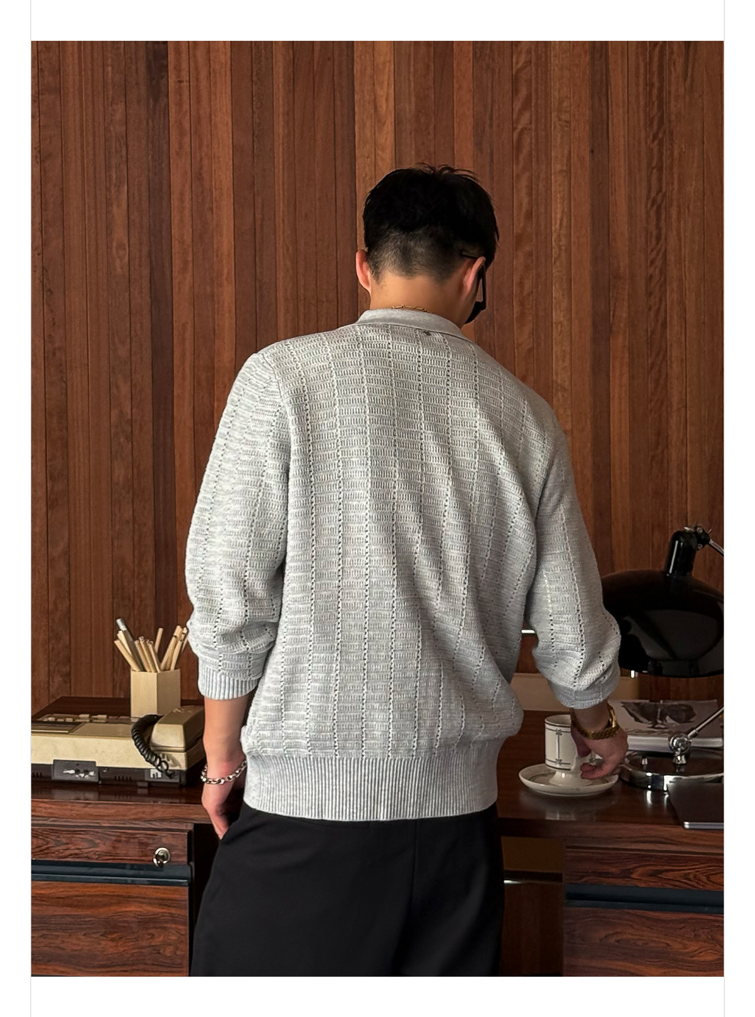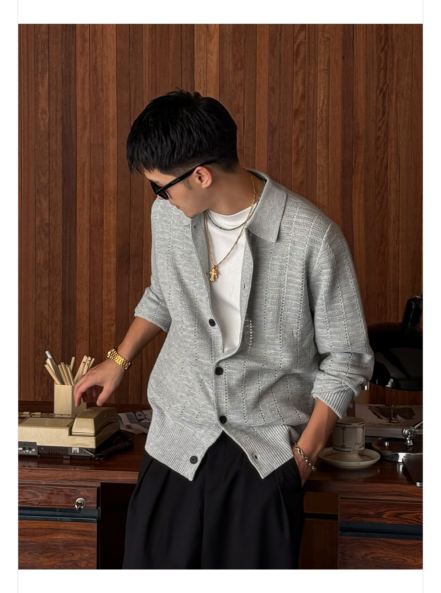 徐太浪508g扭花透气针织衫外套男2025新款春秋休闲花灰色开衫毛衣