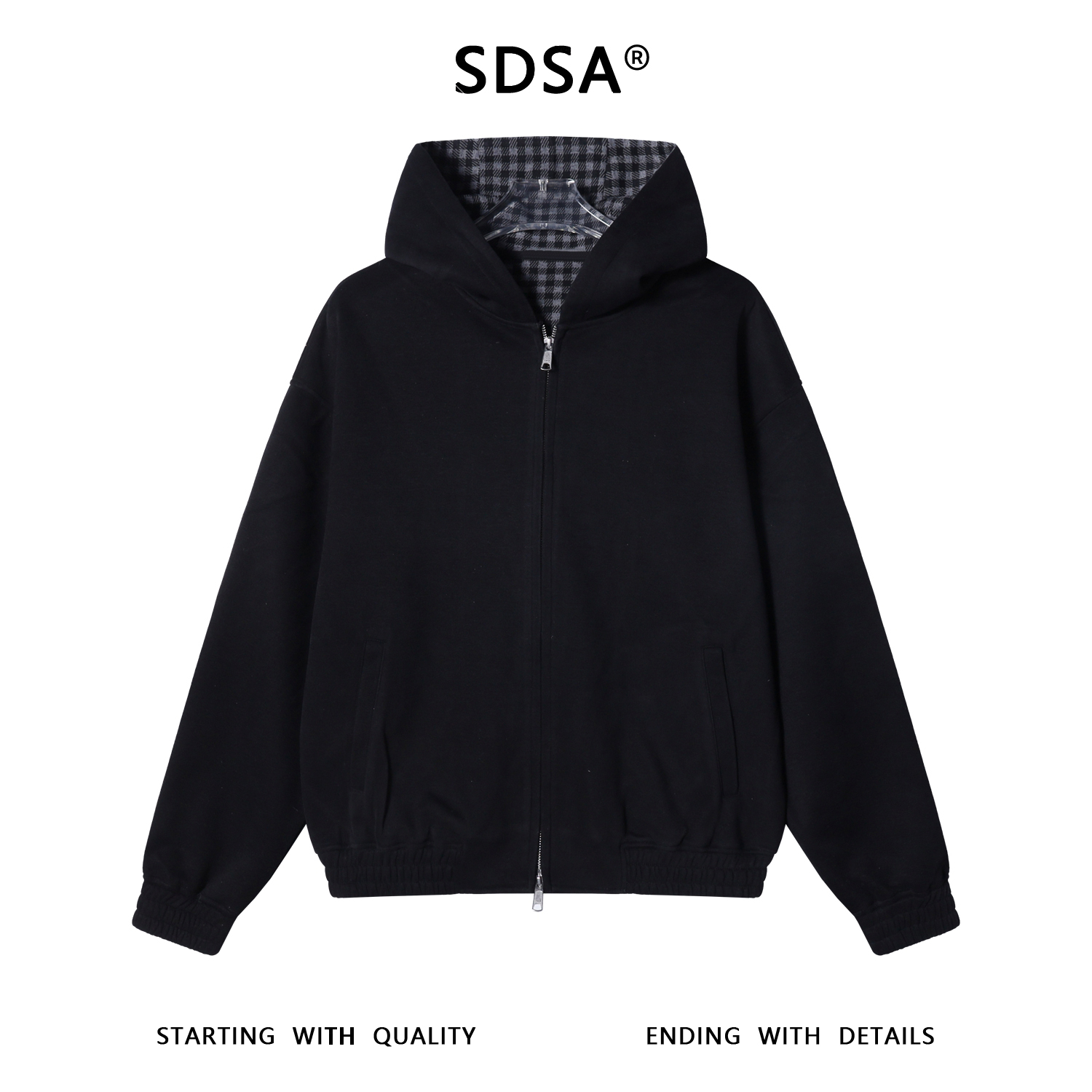 25043SDSA男士秋冬新款痞帅男装潮牌纯色拉链连帽卫衣百搭休闲格子外套
