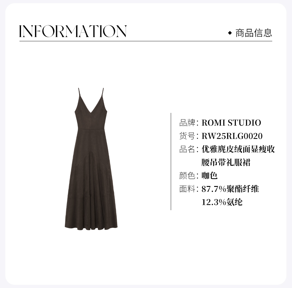 ROMI STUDIO“松弛优雅”麂 皮绒面V领吊带收腰连衣裙 RW25RLG0020