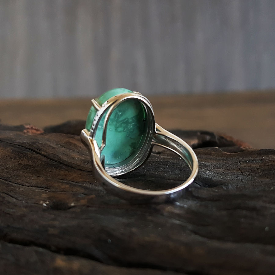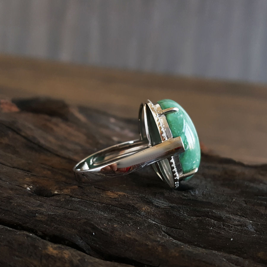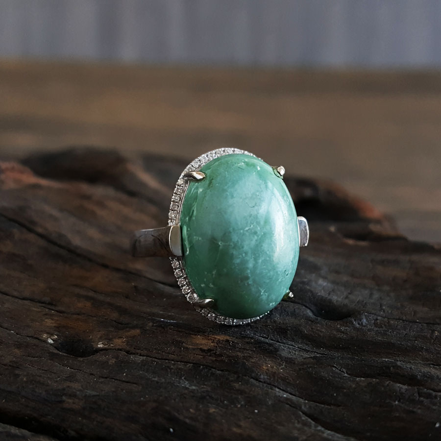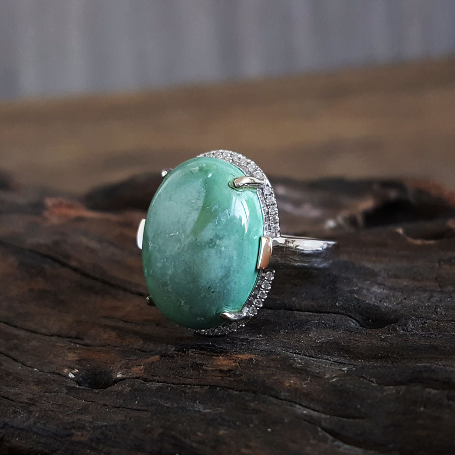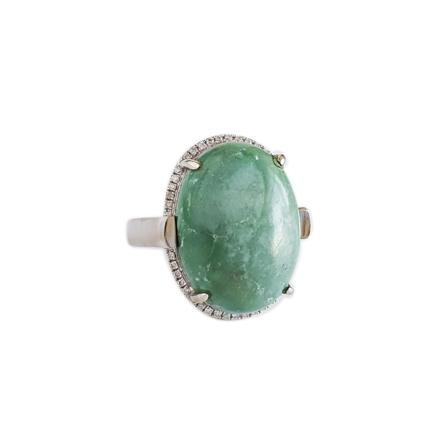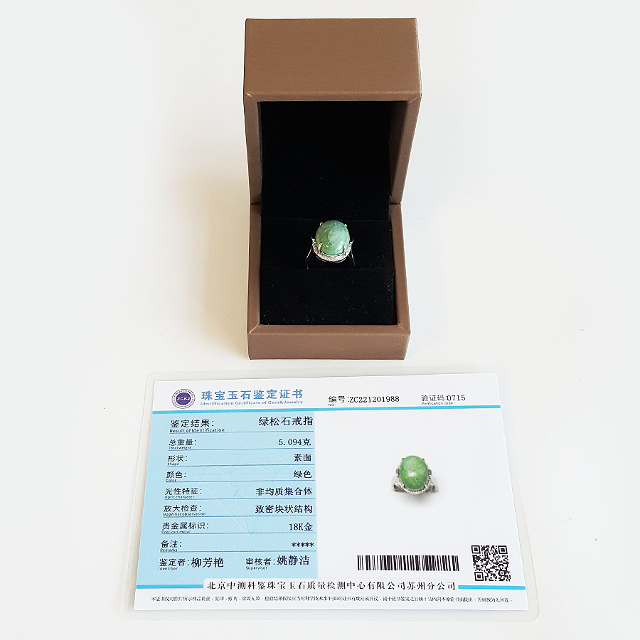 名称 | AU750白金镶钻镶天然原矿蛋面绿松石戒指 |