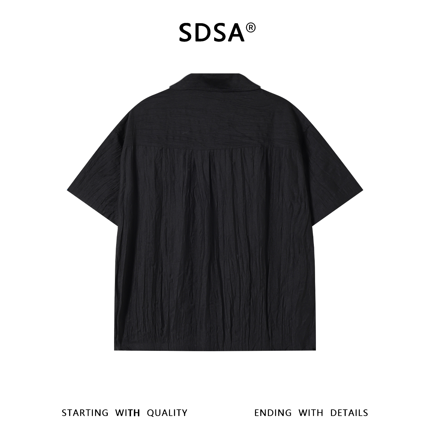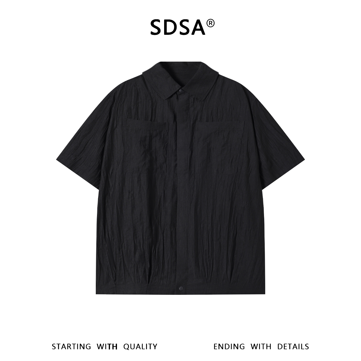 SDSA男装2026新款高贵轻奢日系纯色双口袋褶皱短袖衬衫百搭时尚