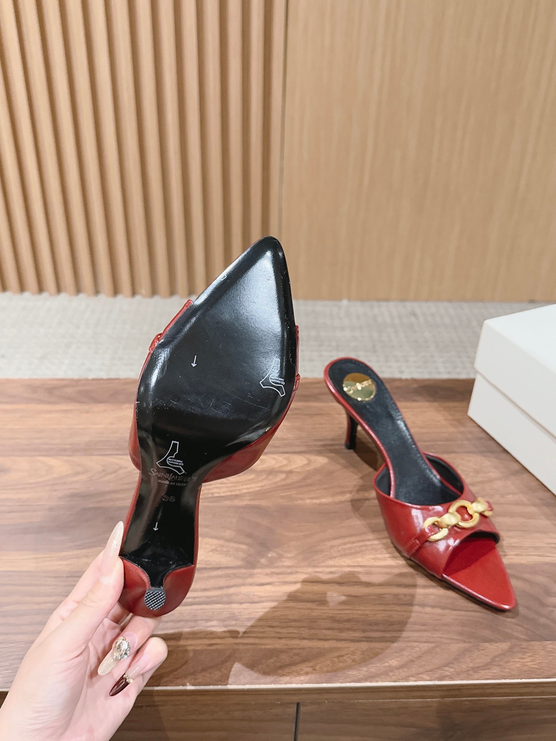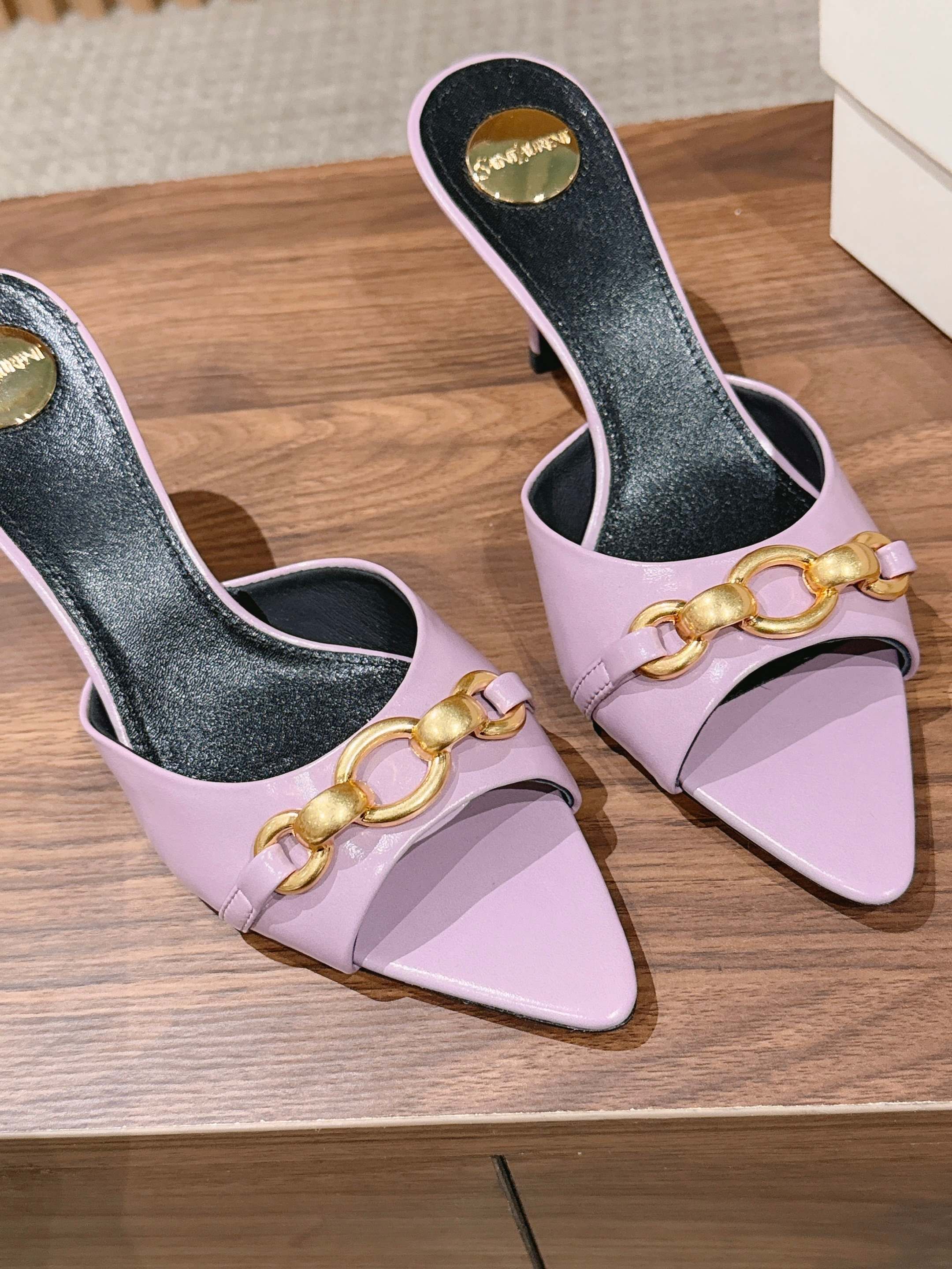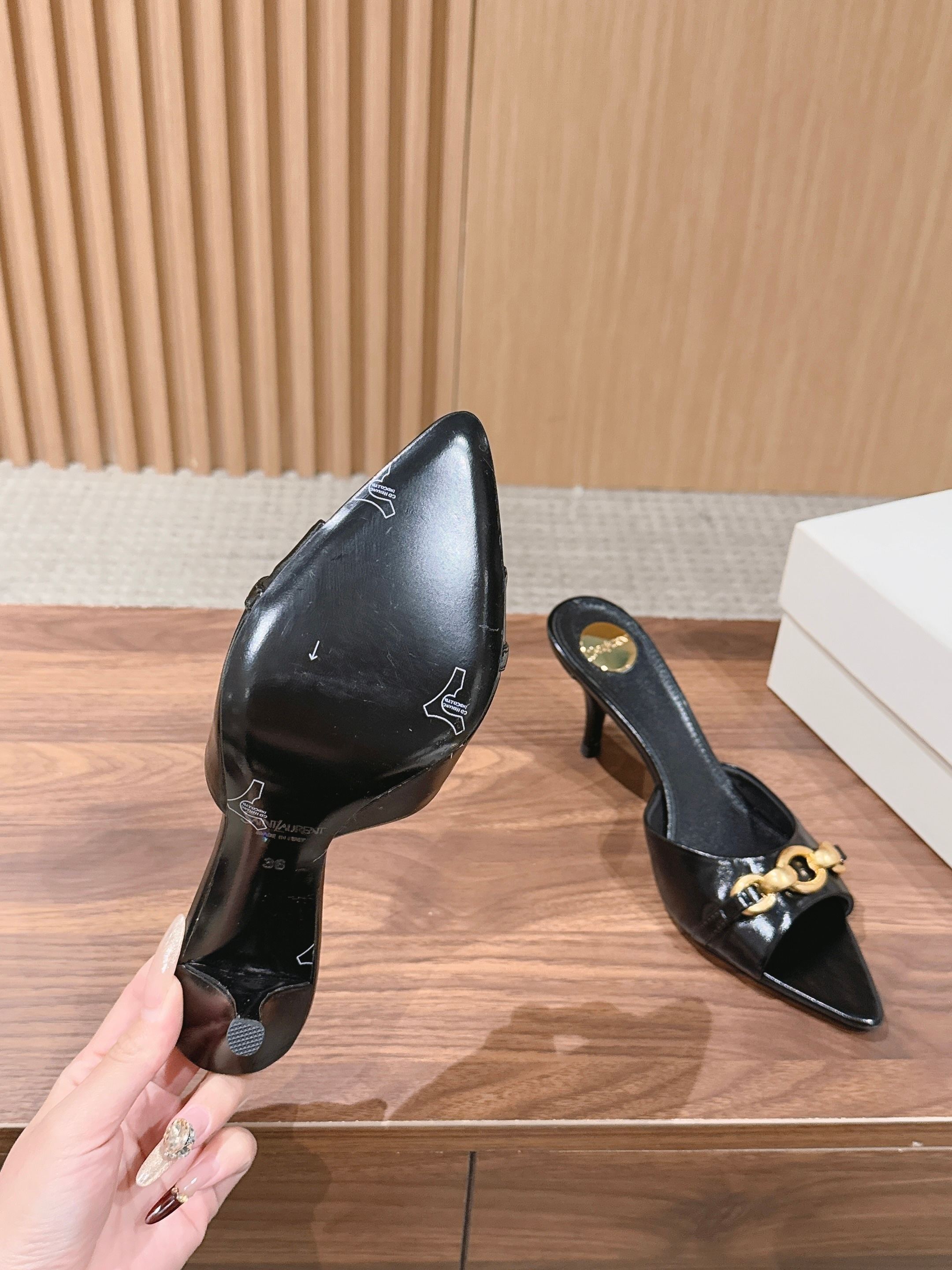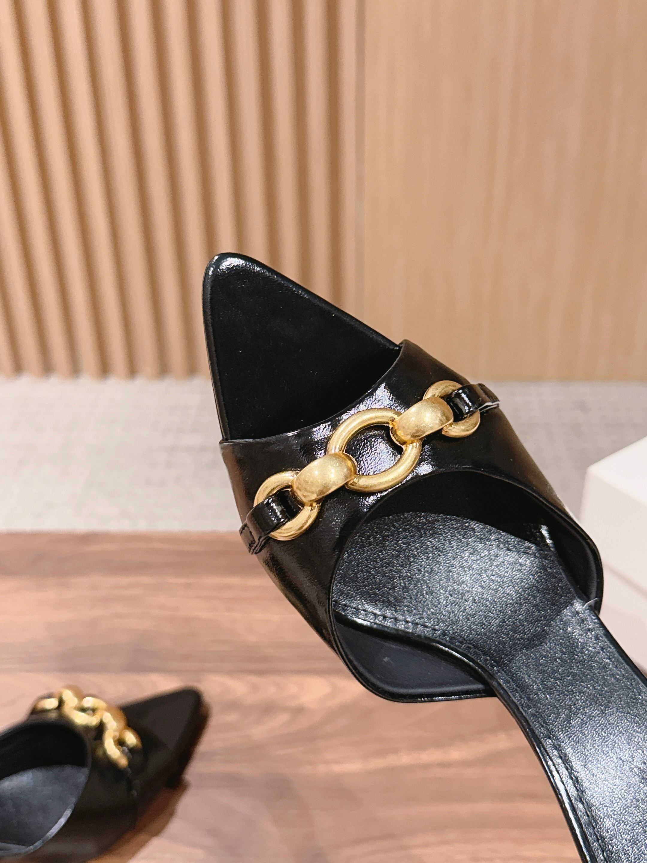 Ysl 尖头细高跟,是刻在DNA里的优雅。金色链条在鞋面流转,像把复古画报里的精致,在了脚上。每一步,都是不费力的贵气与风情。谁能拒绝一双自带气场的链条穆勒鞋?尖头拉长腿线,金属链点亮全身,从通勤西装到约会小裙,都能一键切换成“女主角”模式。 褪去繁杂,只留利落线条与金属光泽。尖头勾勒锋芒,链条点缀态度,这双鞋,是你无需多言的风格宣言。漆皮亮面+金色链条,复古又性感,上脚直接变身“人间富贵花”,走路都带风! 鞋面:牛皮 内里:羊皮 鞋底:意大利真皮大底 跟高:7.5cm 码数:35-41 (40.41定制不退换)
