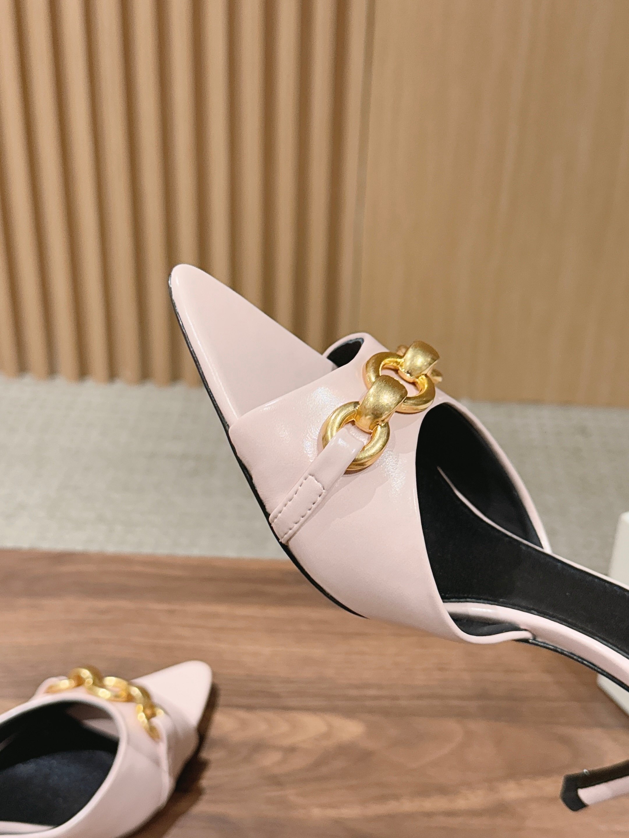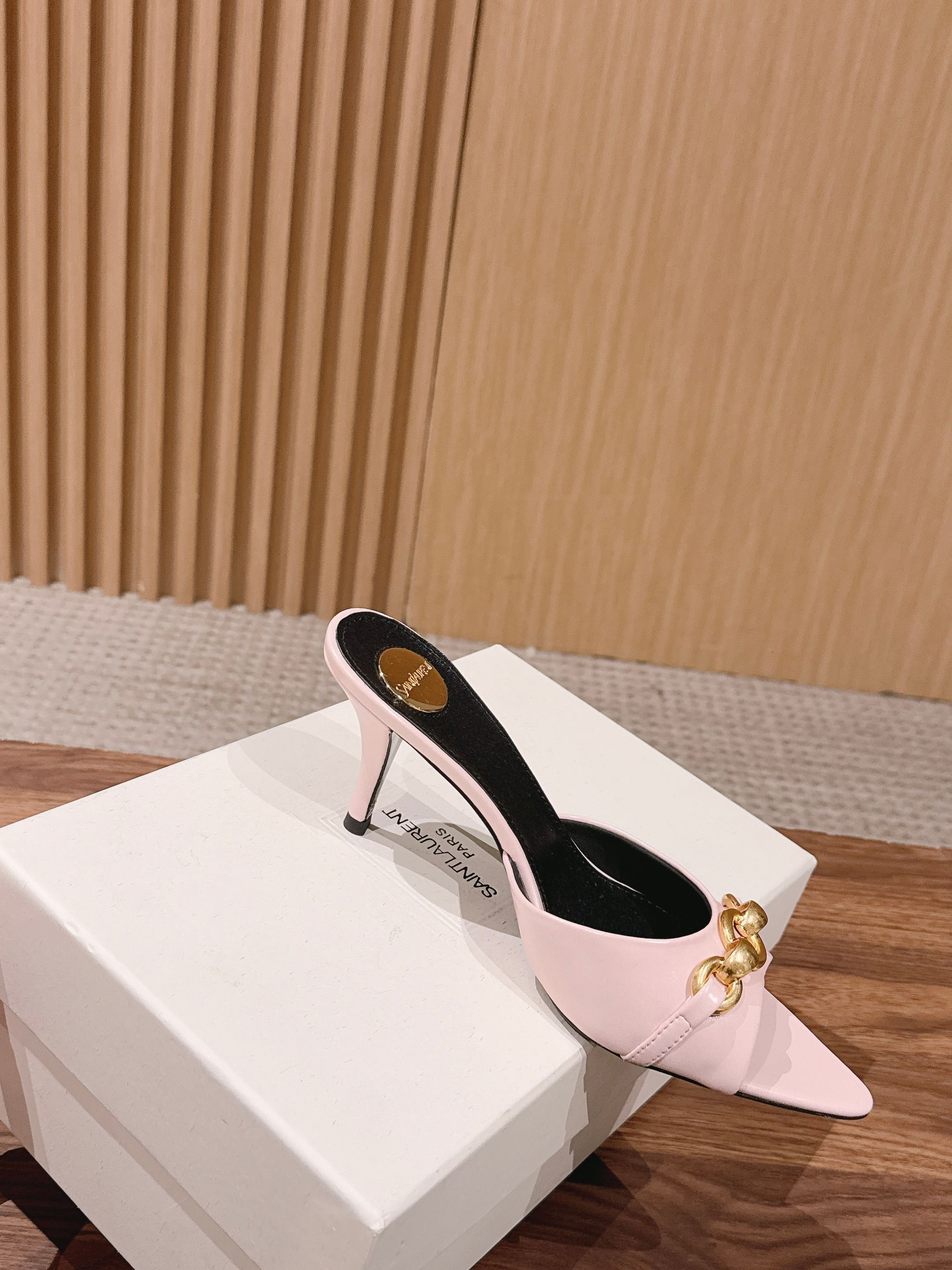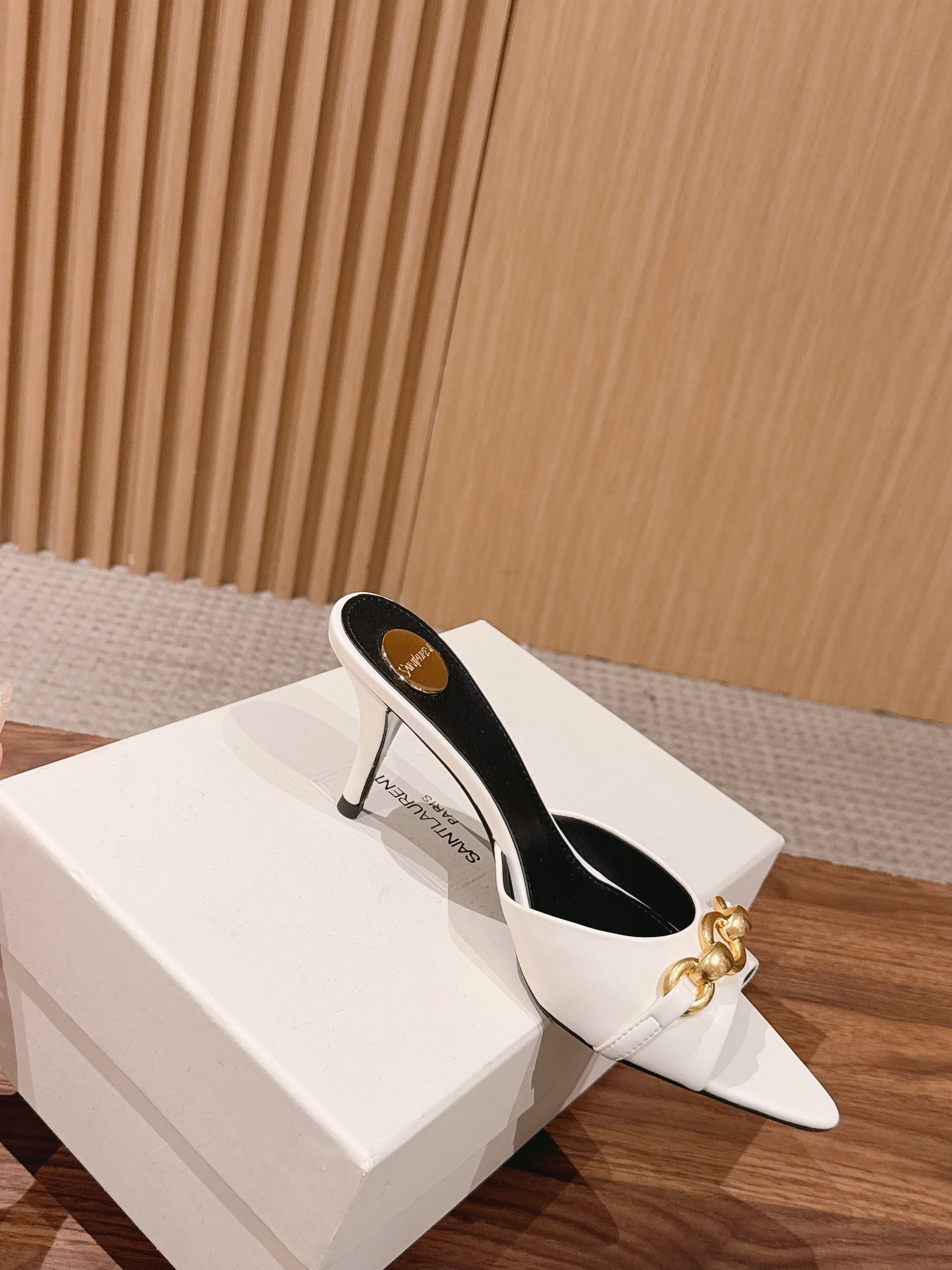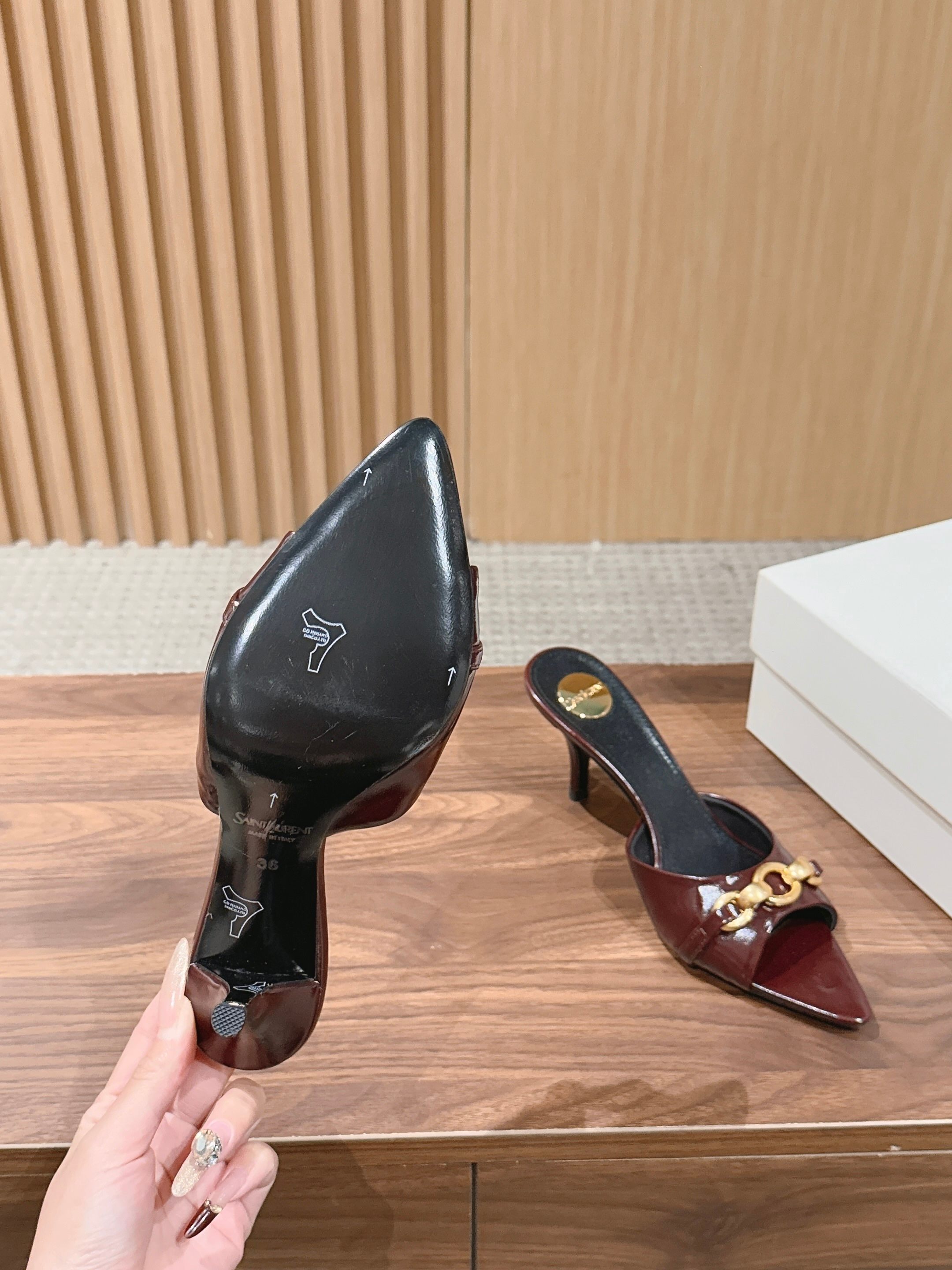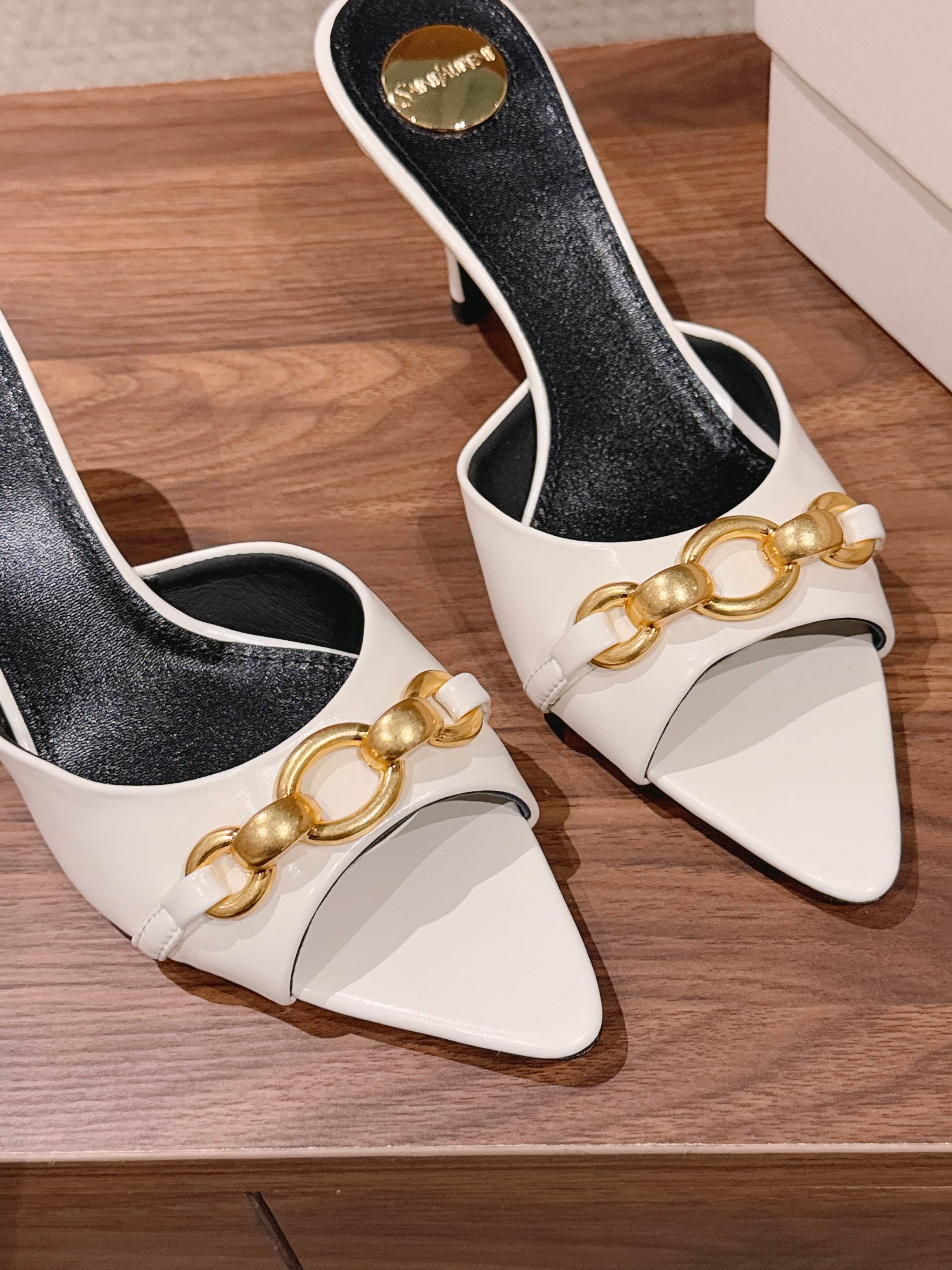 Ysl 尖头细高跟,是刻在DNA里的优雅。金色链条在鞋面流转,像把复古画报里的精致,在了脚上。每一步,都是不费力的贵气与风情。谁能拒绝一双自带气场的链条穆勒鞋?尖头拉长腿线,金属链点亮全身,从通勤西装到约会小裙,都能一键切换成“女主角”模式。 褪去繁杂,只留利落线条与金属光泽。尖头勾勒锋芒,链条点缀态度,这双鞋,是你无需多言的风格宣言。漆皮亮面+金色链条,复古又性感,上脚直接变身“人间富贵花”,走路都带风! 鞋面:牛皮 内里:羊皮 鞋底:意大利真皮大底 跟高:7.5cm 码数:35-41 (40.41定制不退换)