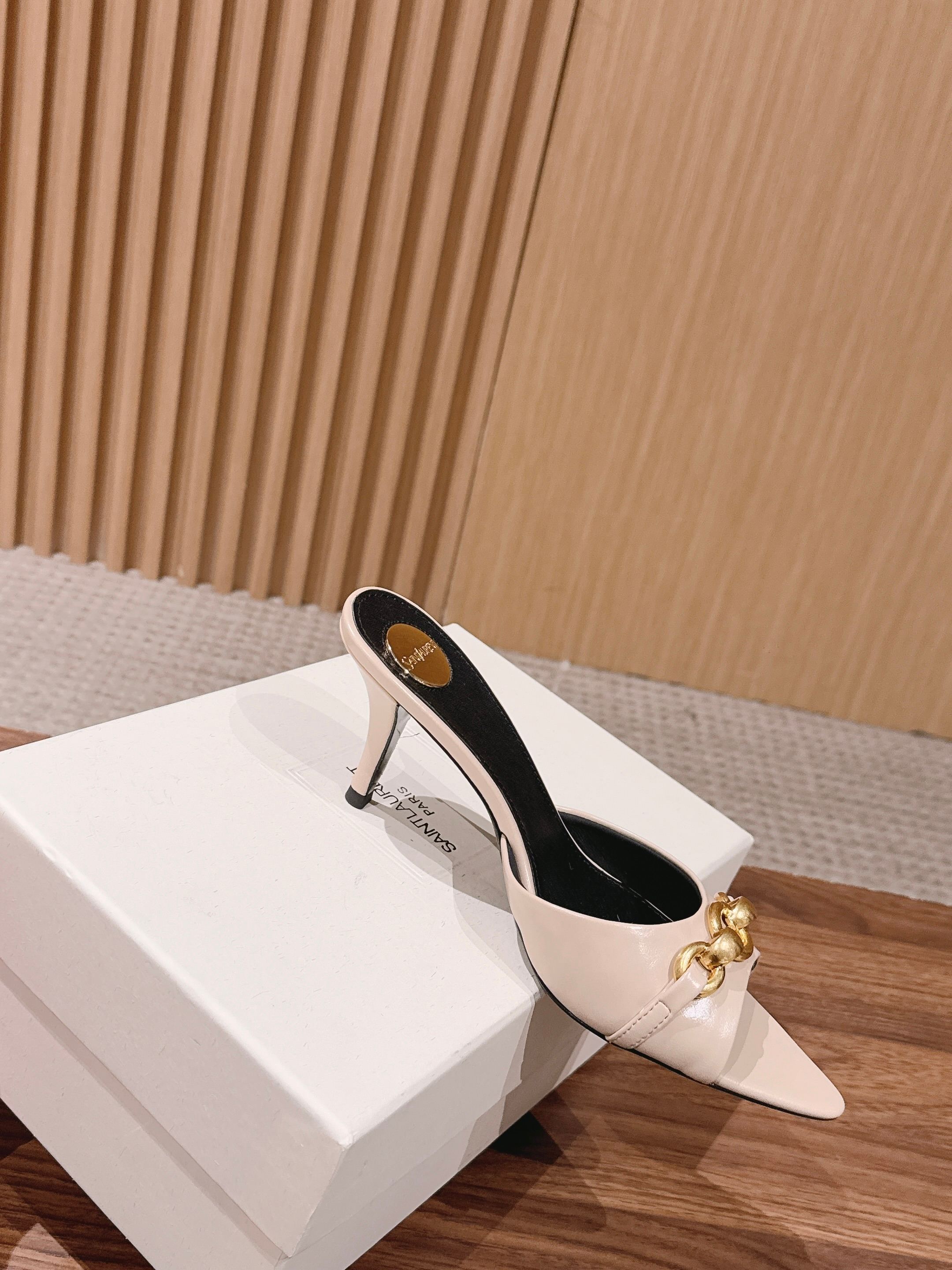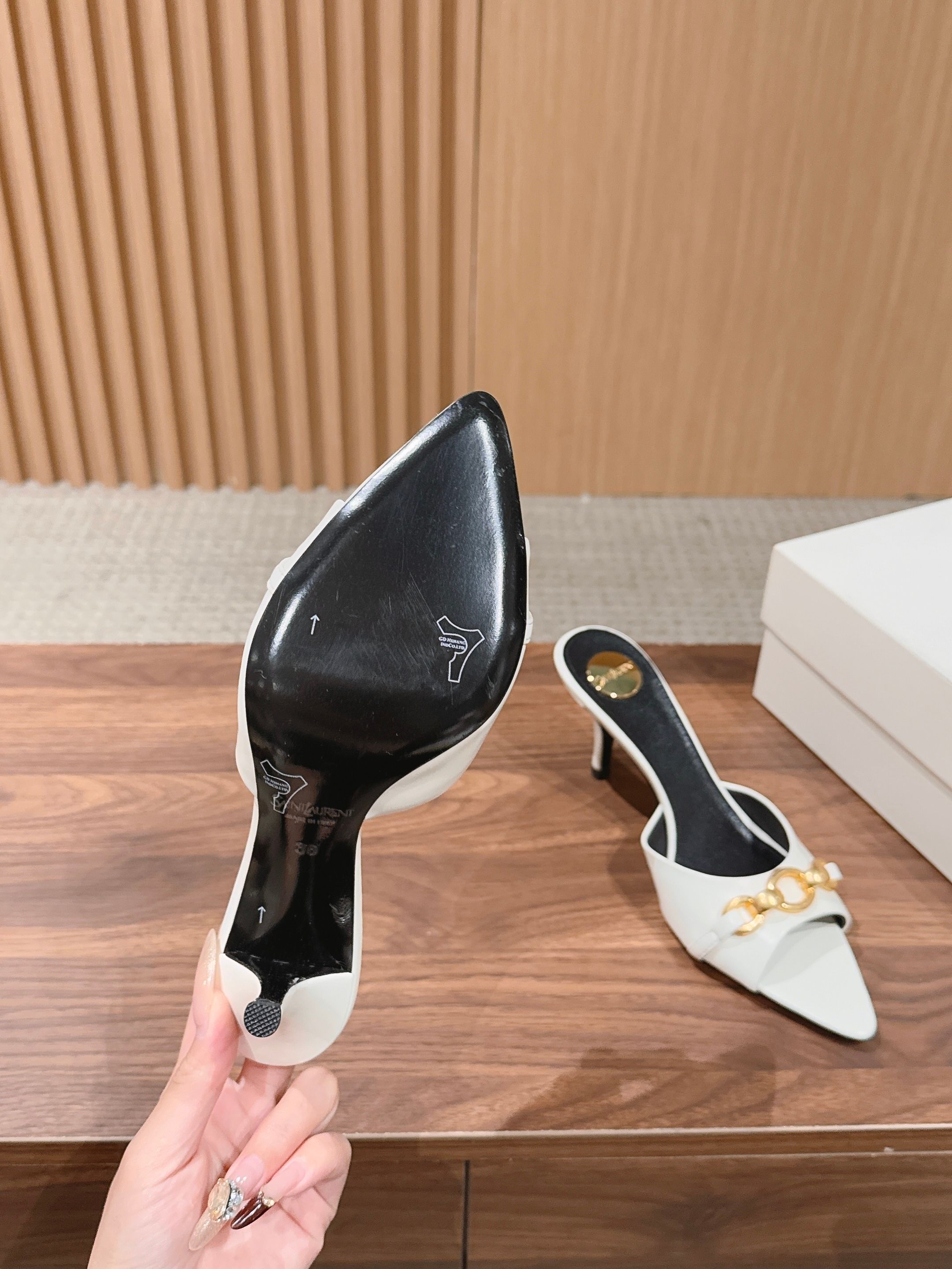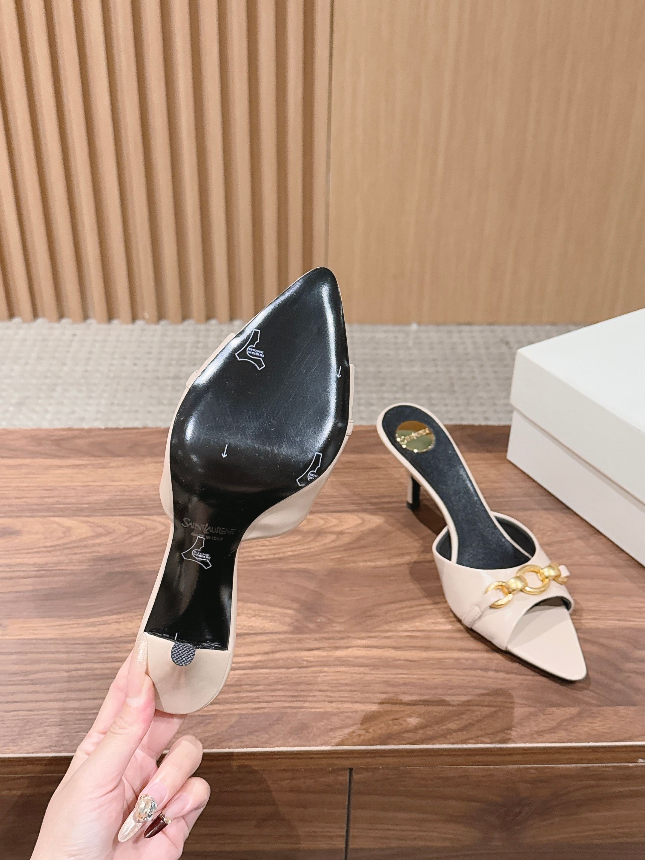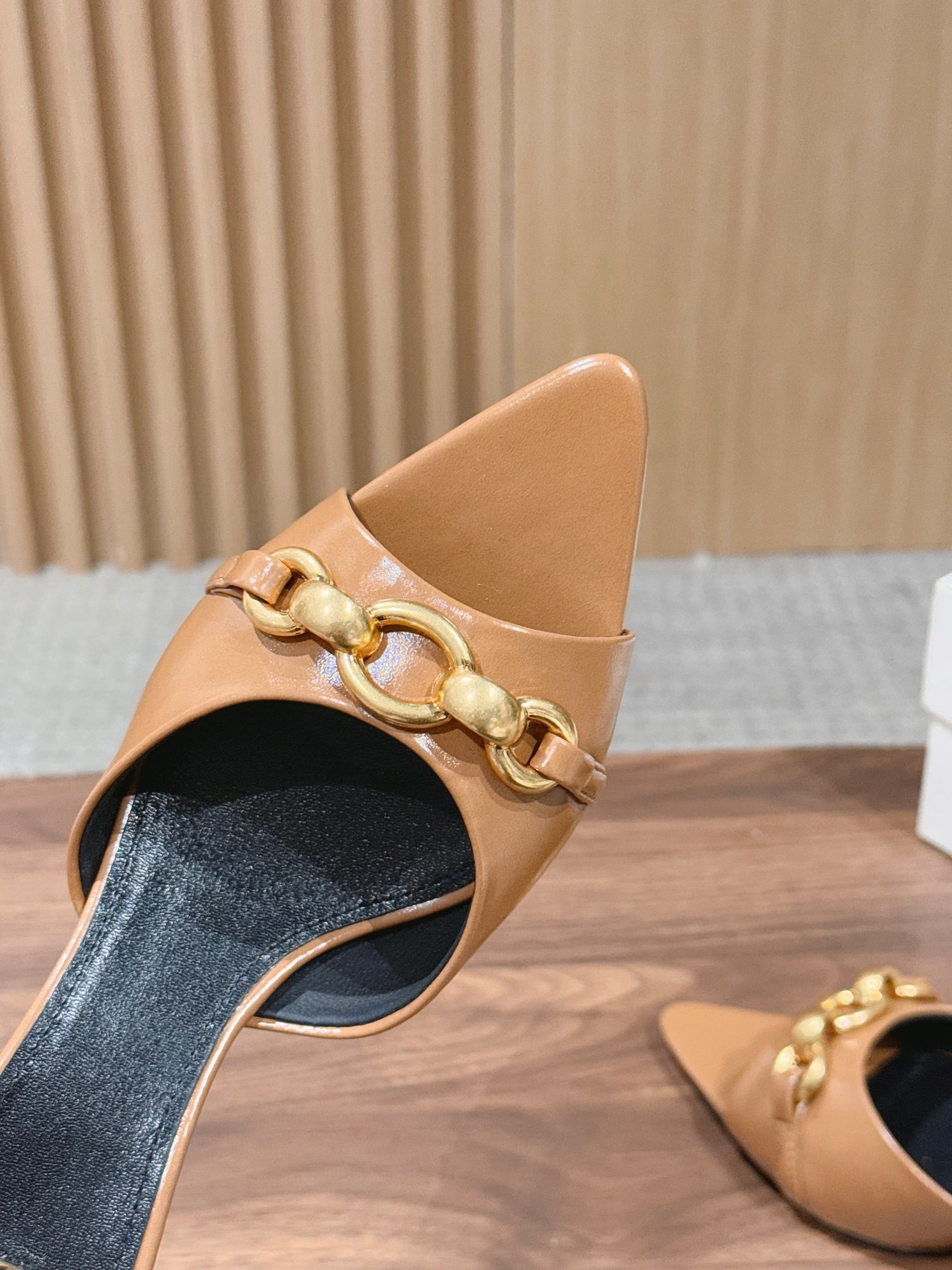 Ysl 尖头细高跟,是刻在DNA里的优雅。金色链条在鞋面流转,像把复古画报里的精致,在了脚上。每一步,都是不费力的贵气与风情。谁能拒绝一双自带气场的链条穆勒鞋?尖头拉长腿线,金属链点亮全身,从通勤西装到约会小裙,都能一键切换成“女主角”模式。 褪去繁杂,只留利落线条与金属光泽。尖头勾勒锋芒,链条点缀态度,这双鞋,是你无需多言的风格宣言。漆皮亮面+金色链条,复古又性感,上脚直接变身“人间富贵花”,走路都带风! 鞋面:牛皮 内里:羊皮 鞋底:意大利真皮大底 跟高:7.5cm 码数:35-41 (40.41定制不退换)
