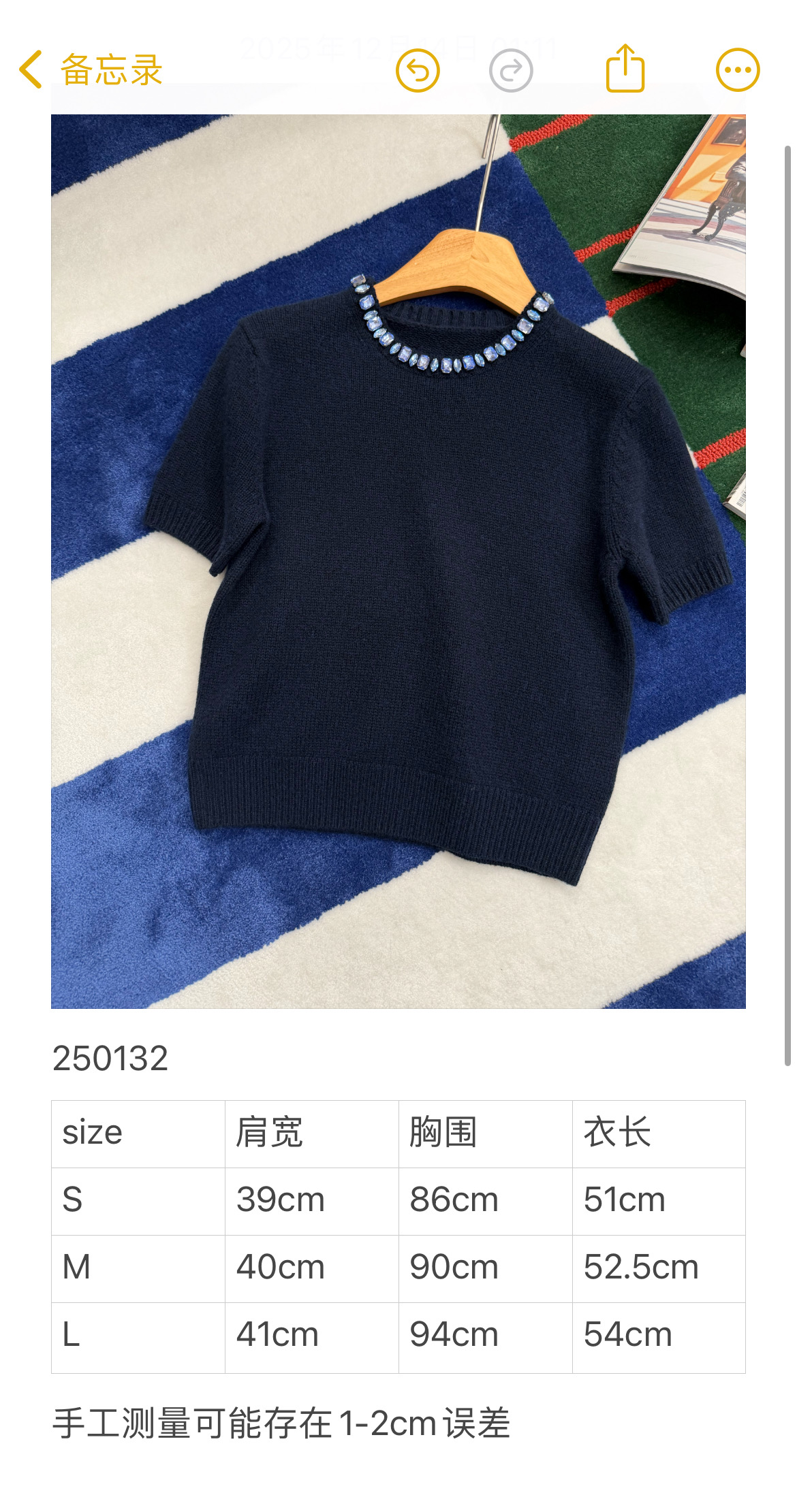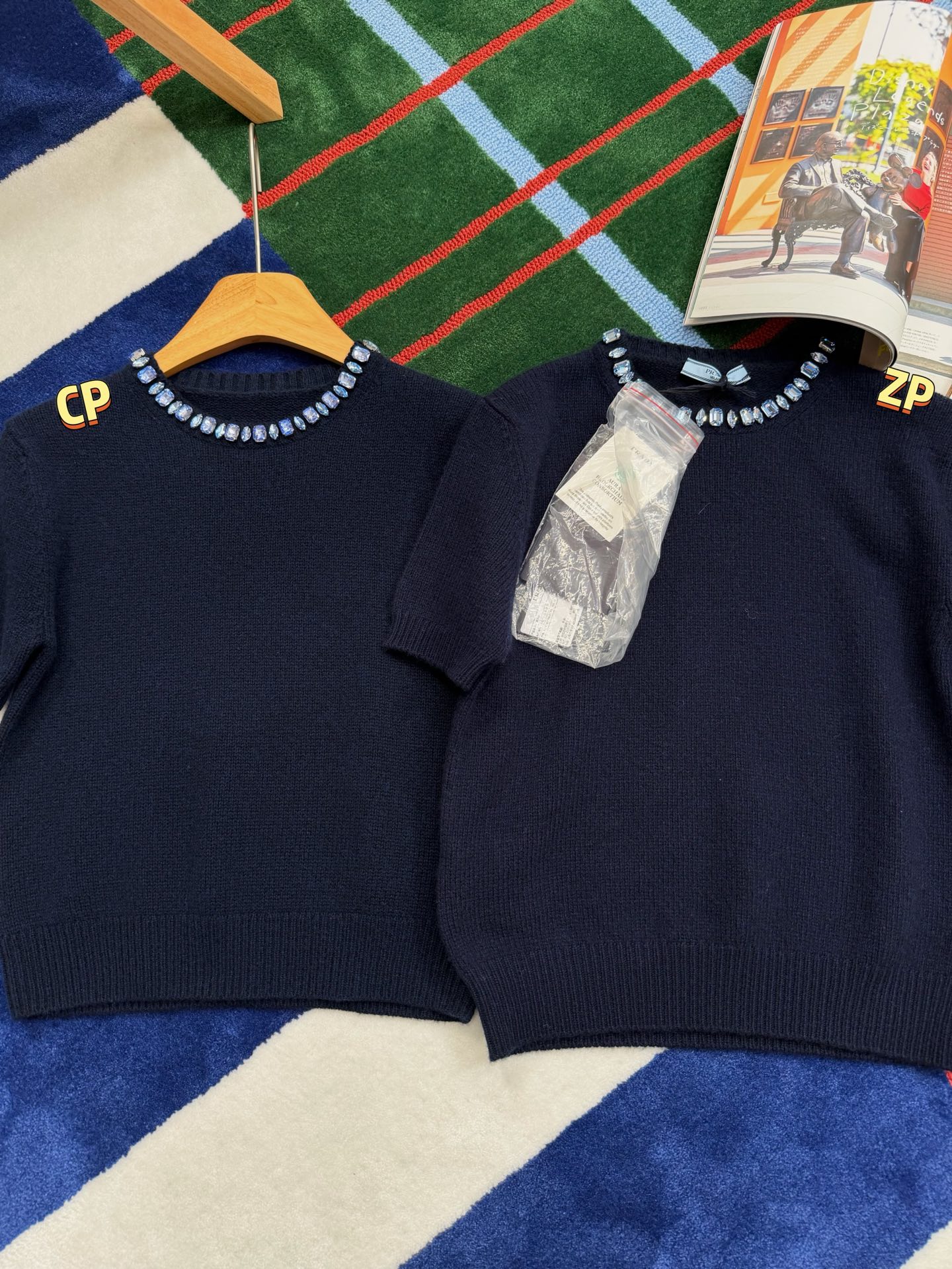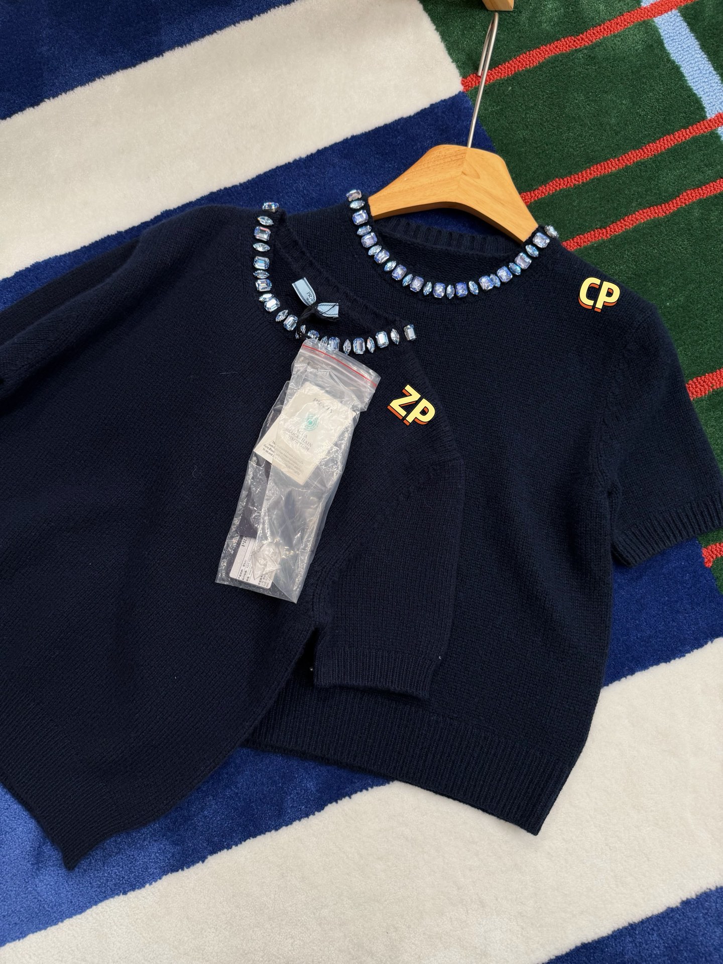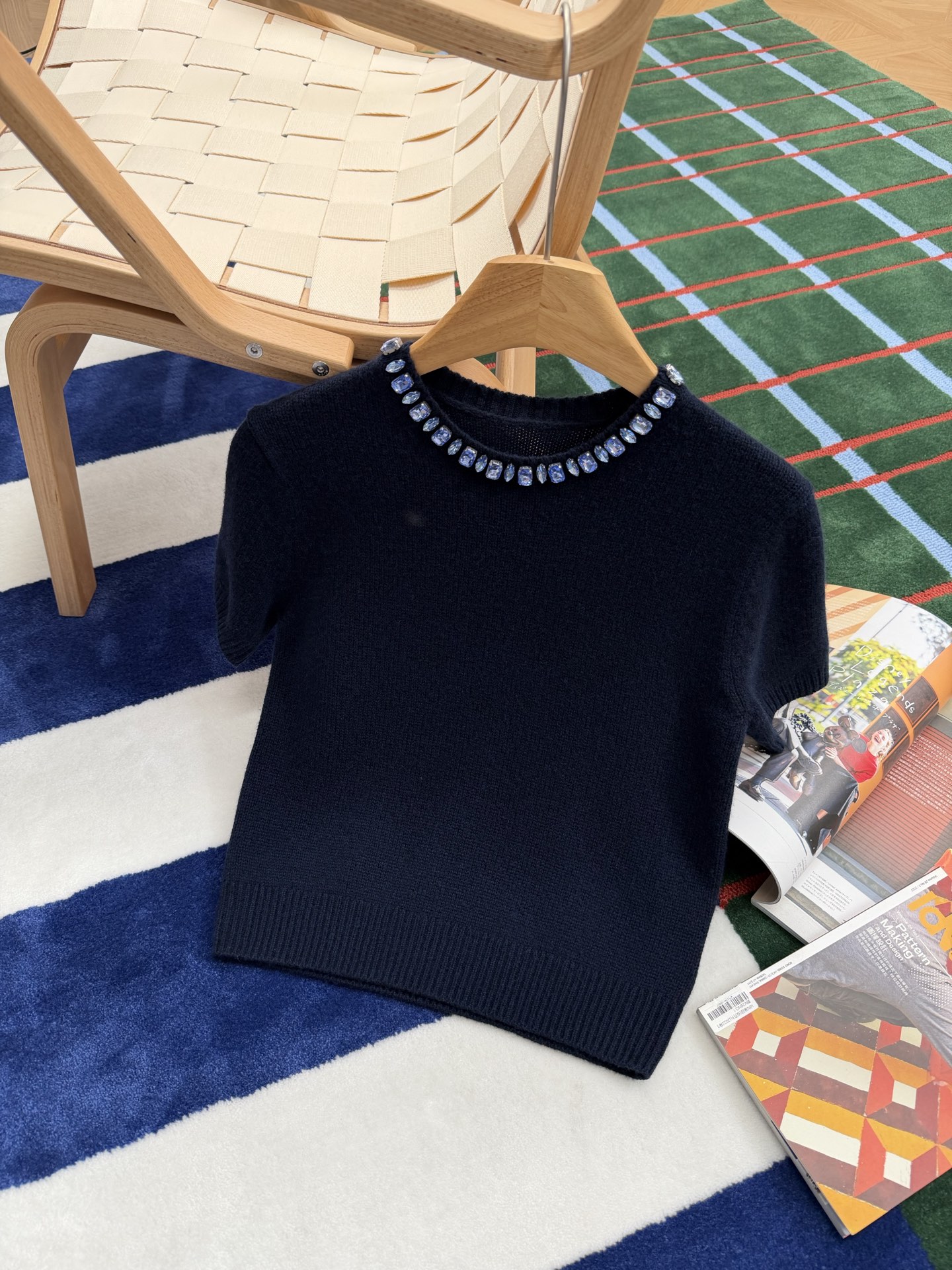 最新款 水晶领短袖针织衫💫超时髦,特殊定制定染羊毛➕羊绒混纺纱线,最新的湛蓝色上身真的超级显白‼️搭配扭扭小白T,层次感拉满,妥妥的时髦精✨简约的基调,利落版型剪裁,单穿显瘦叠穿松弛,颈部的蓝色装饰钻简直就是点睛之笔➕既有亮点,又不浮夸,可以说是日常和正式都适配 ✨买到赚到的一款针织衫,你值得拥有,码数SML