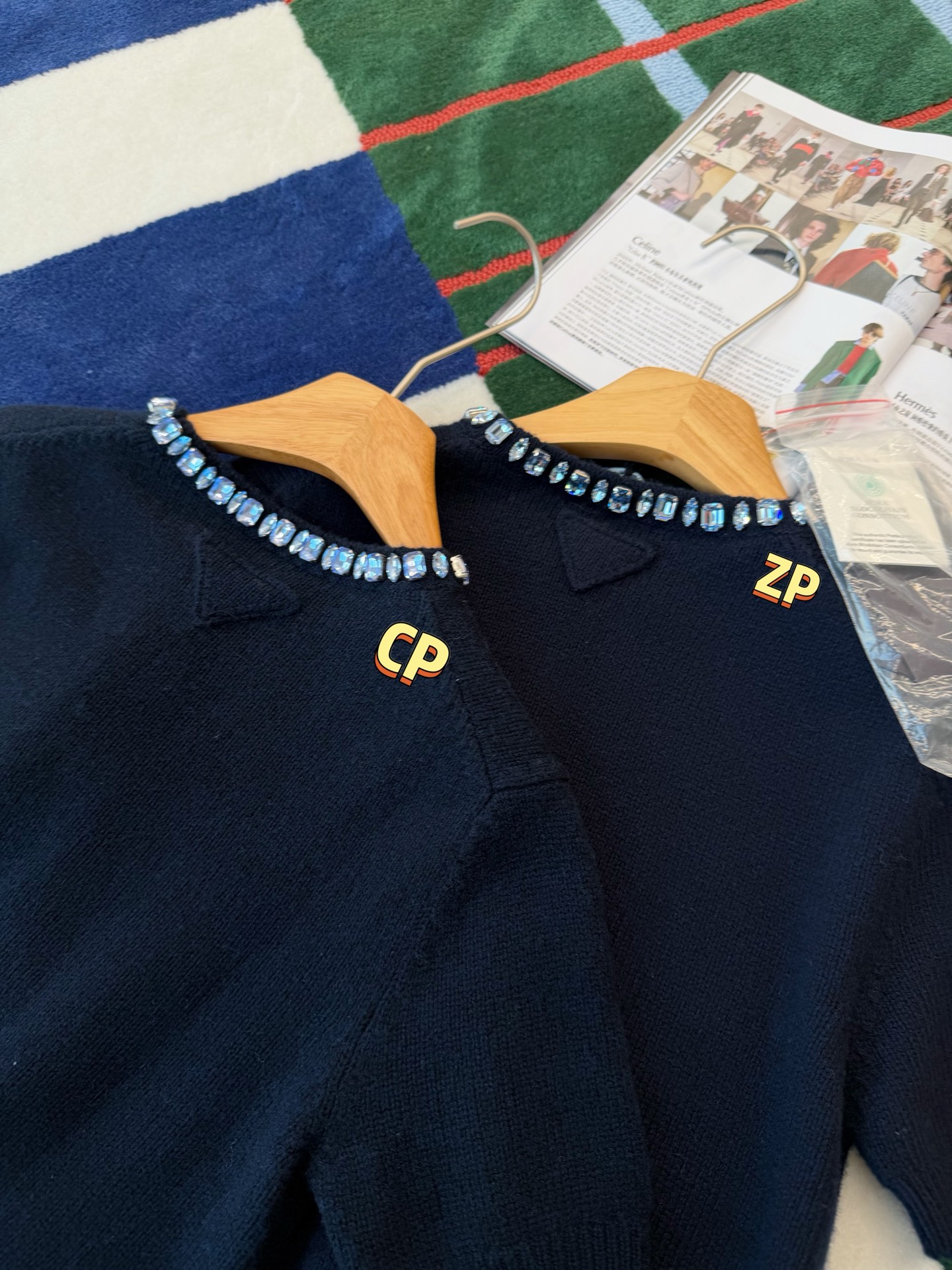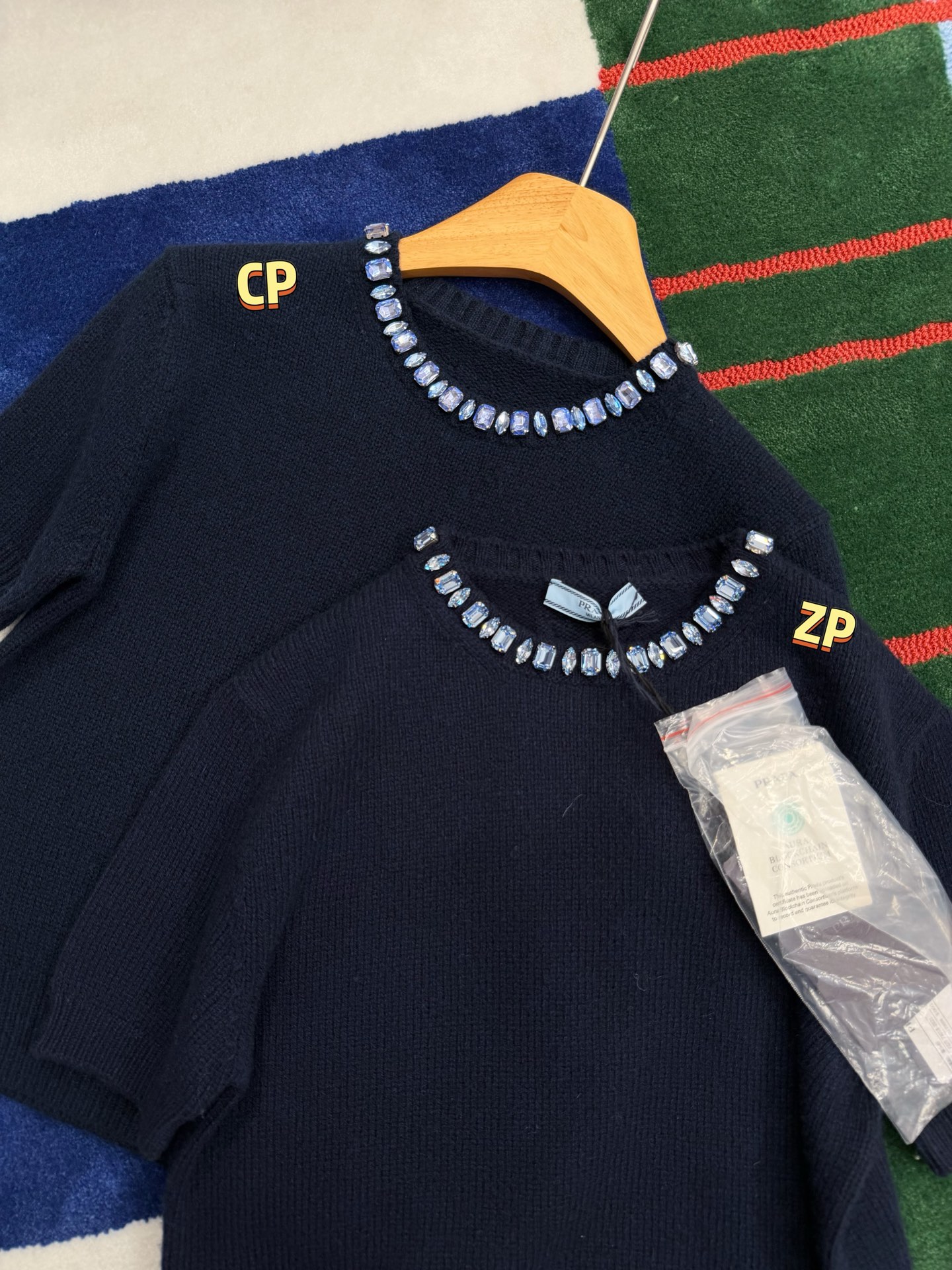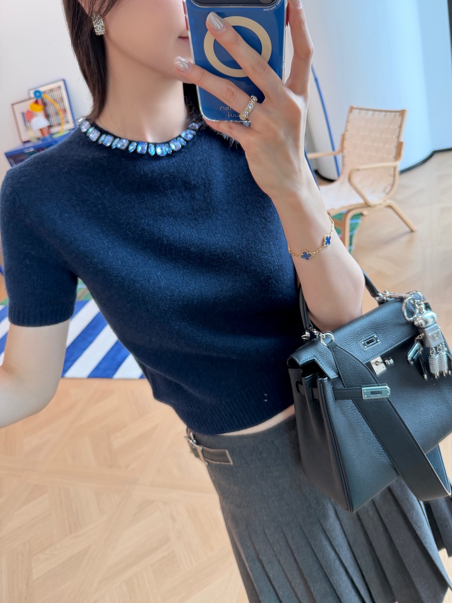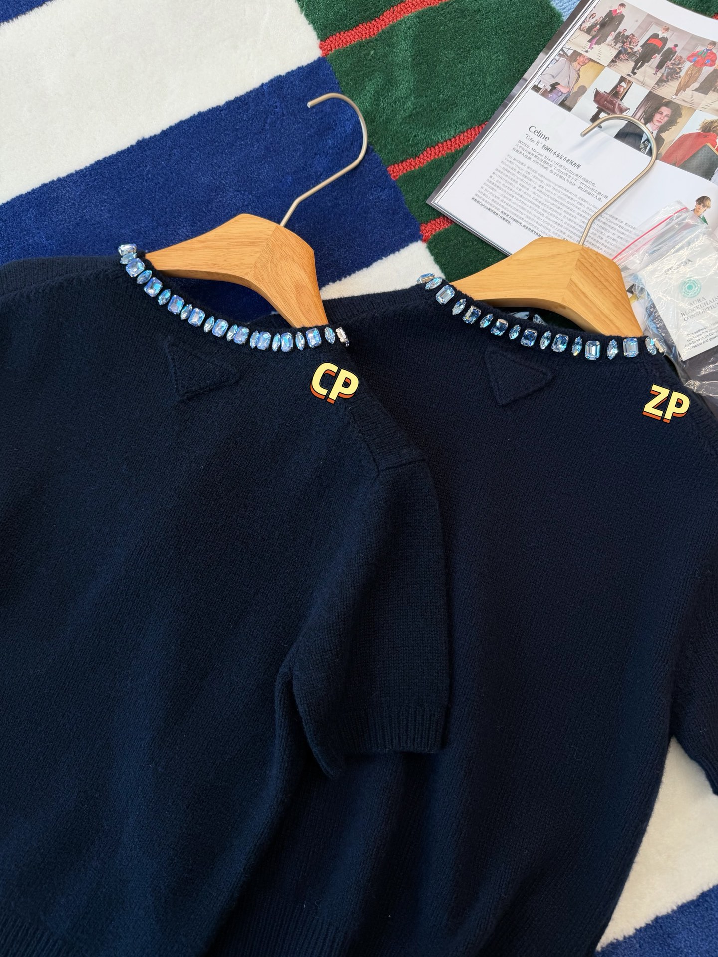 最新款 水晶领短袖针织衫💫超时髦,特殊定制定染羊毛➕羊绒混纺纱线,最新的湛蓝色上身真的超级显白‼️搭配扭扭小白T,层次感拉满,妥妥的时髦精✨简约的基调,利落版型剪裁,单穿显瘦叠穿松弛,颈部的蓝色装饰钻简直就是点睛之笔➕既有亮点,又不浮夸,可以说是日常和正式都适配 ✨买到赚到的一款针织衫,你值得拥有,码数SML