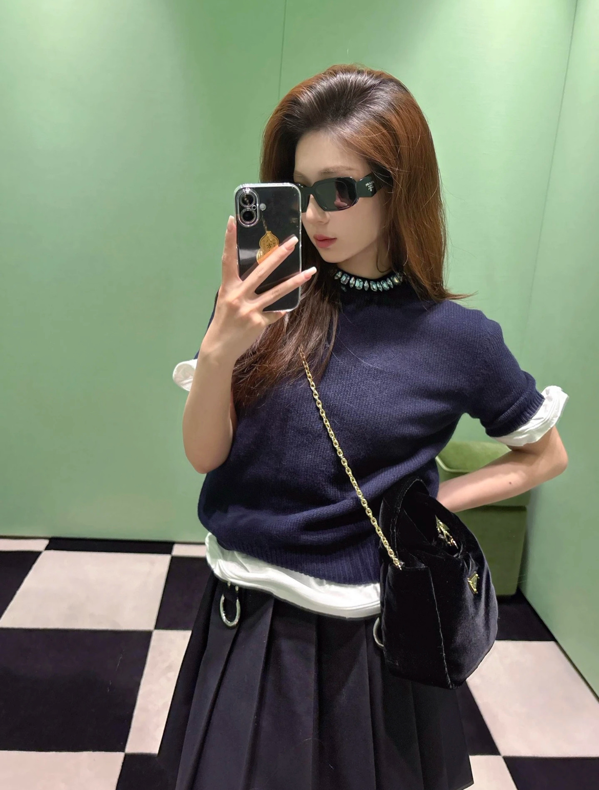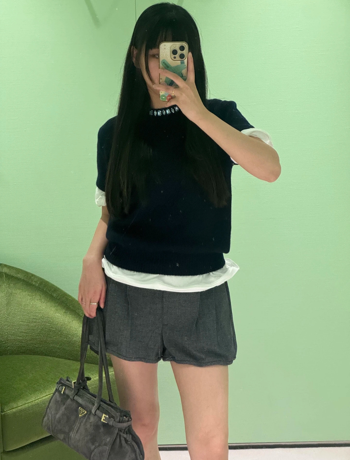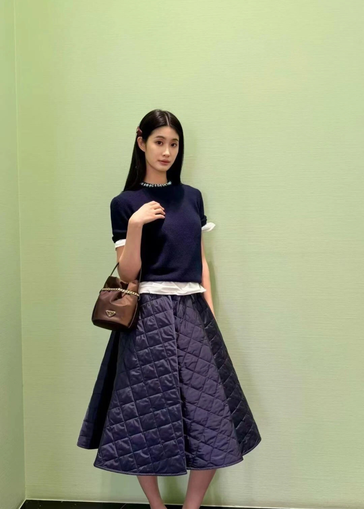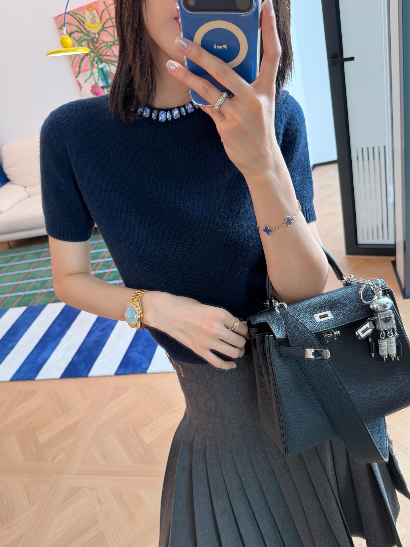 最新款 水晶领短袖针织衫💫超时髦,特殊定制定染羊毛➕羊绒混纺纱线,最新的湛蓝色上身真的超级显白‼️搭配扭扭小白T,层次感拉满,妥妥的时髦精✨简约的基调,利落版型剪裁,单穿显瘦叠穿松弛,颈部的蓝色装饰钻简直就是点睛之笔➕既有亮点,又不浮夸,可以说是日常和正式都适配 ✨买到赚到的一款针织衫,你值得拥有,码数SML