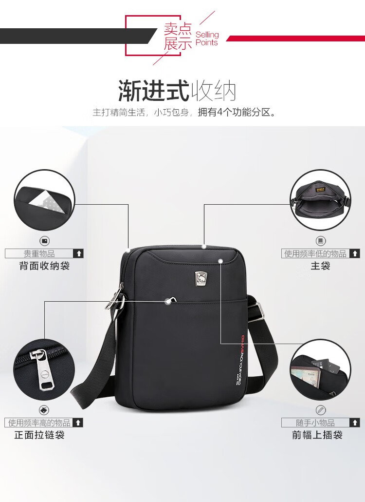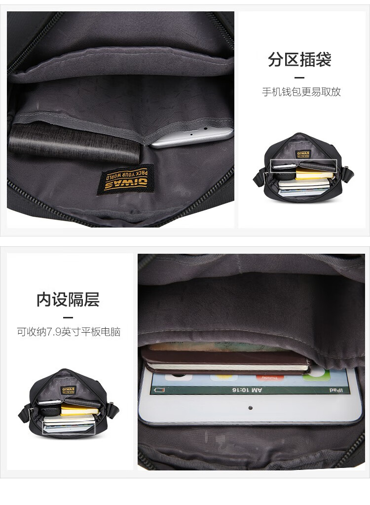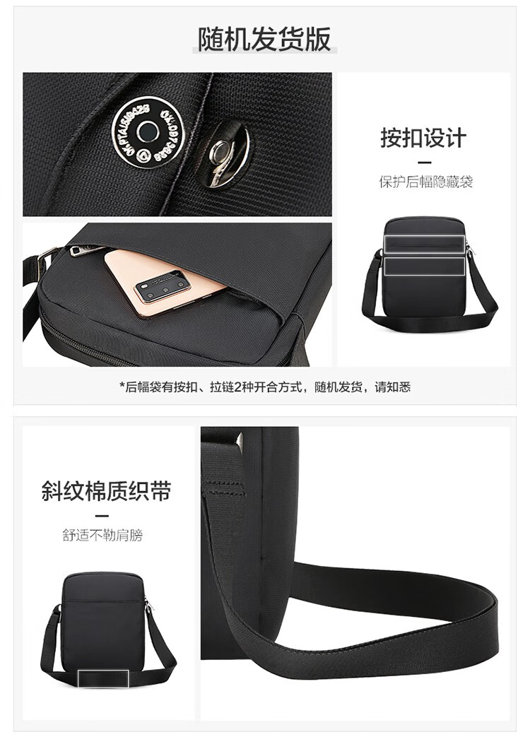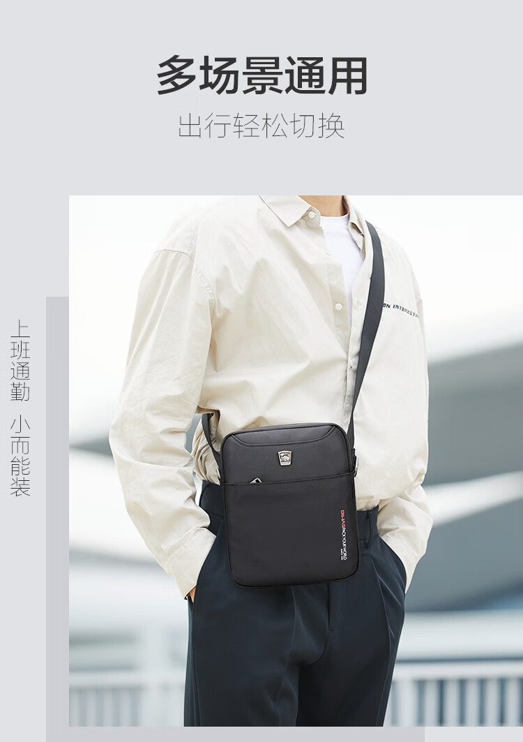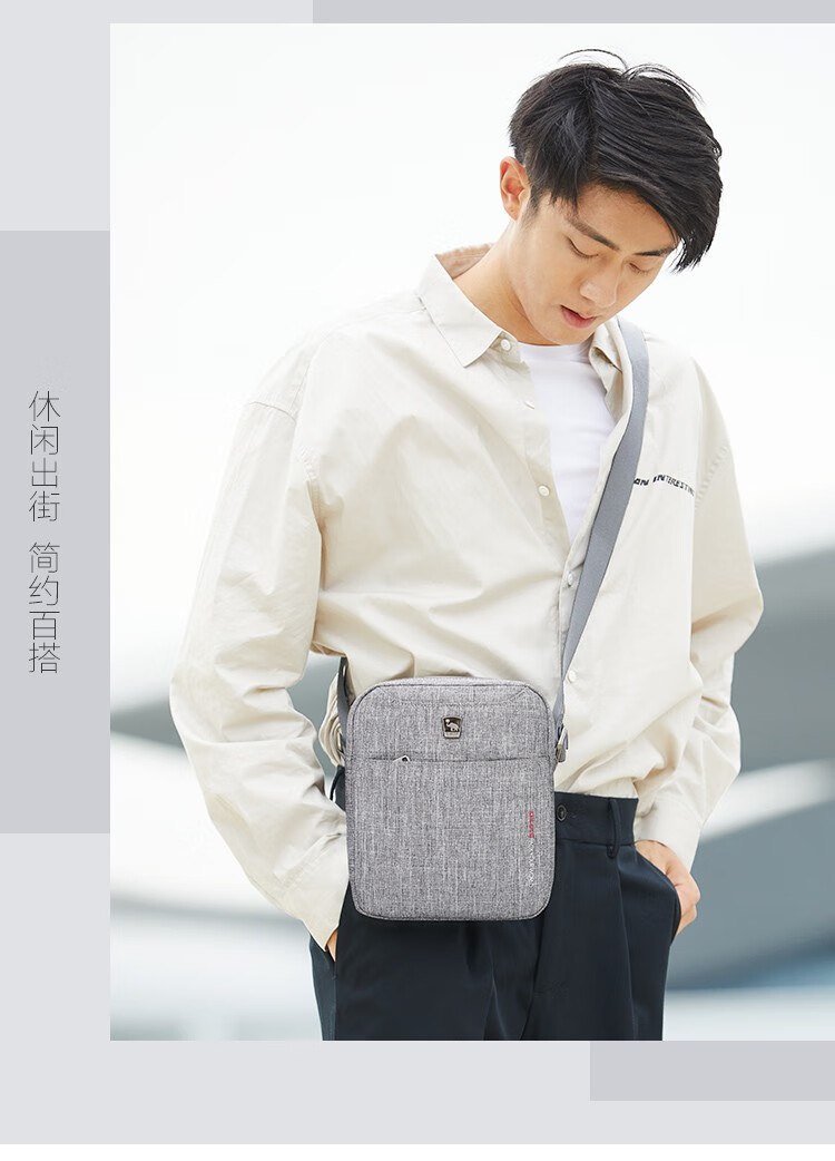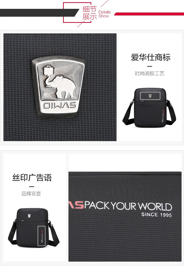 爱华仕单肩包男士商务小包时尚休闲手机包斜挎包男小 5551 黑色