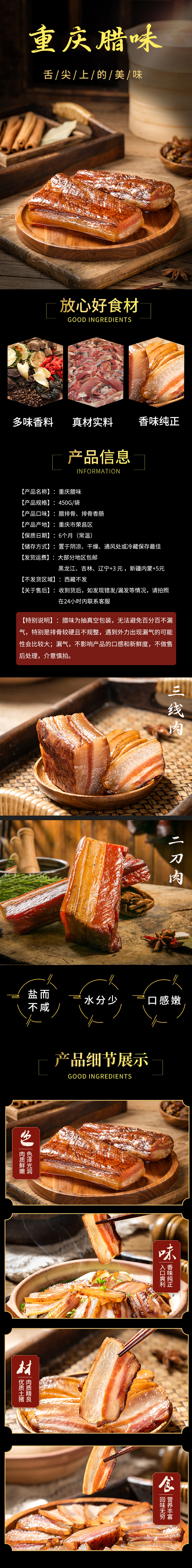 川渝风味腊肉系列 三线肉 二刀肉 450g/袋 重庆特产 非遗老字号 烟熏五花腊肉 年货送礼