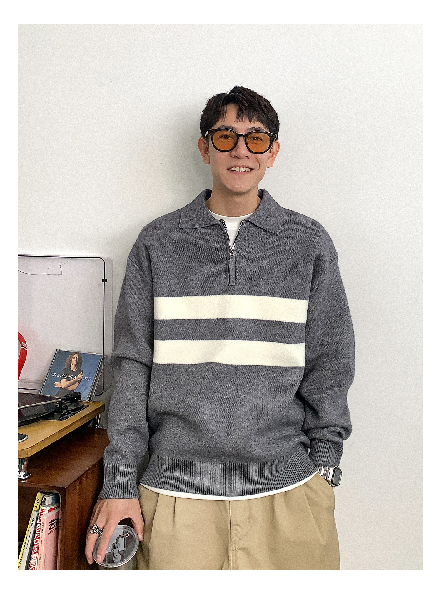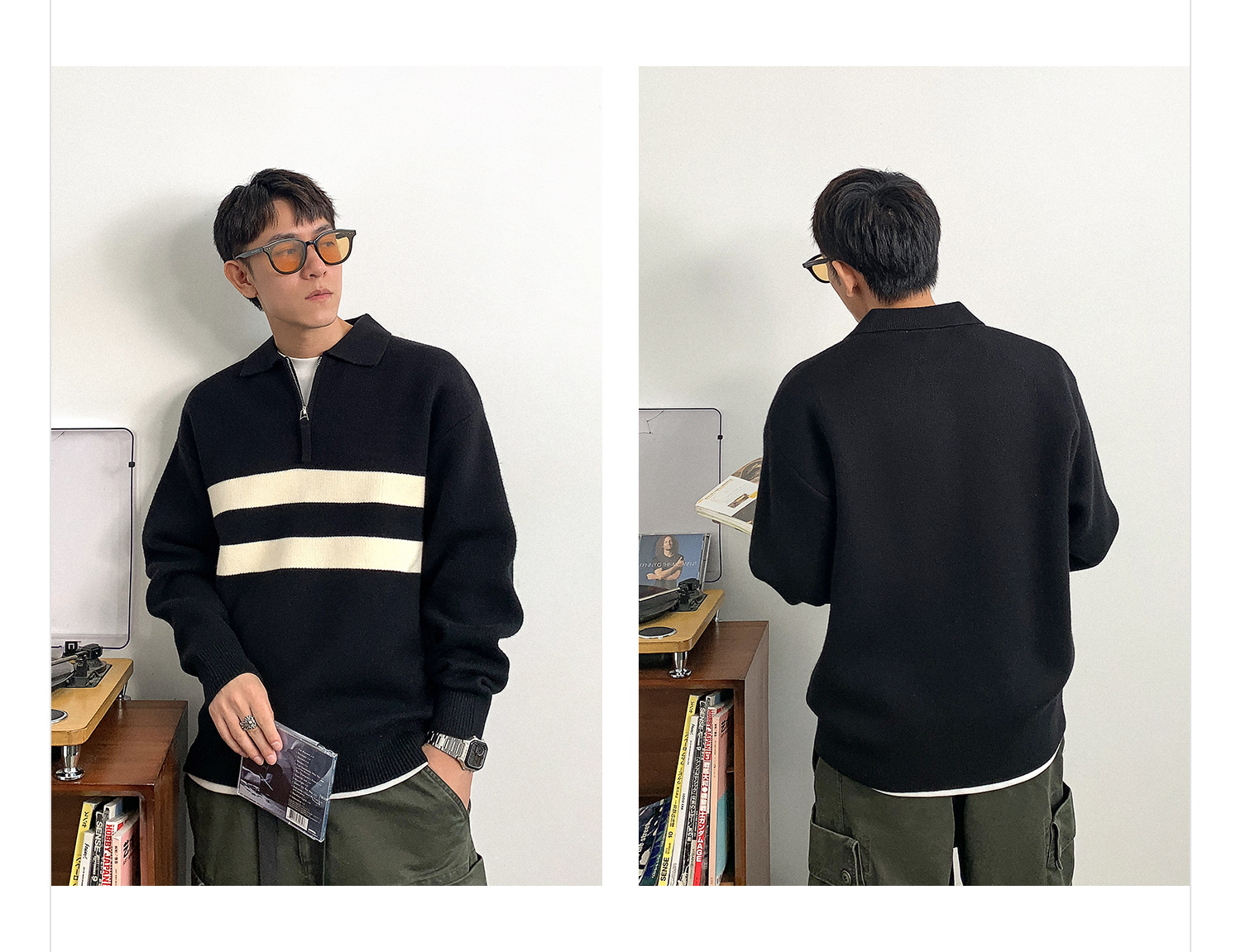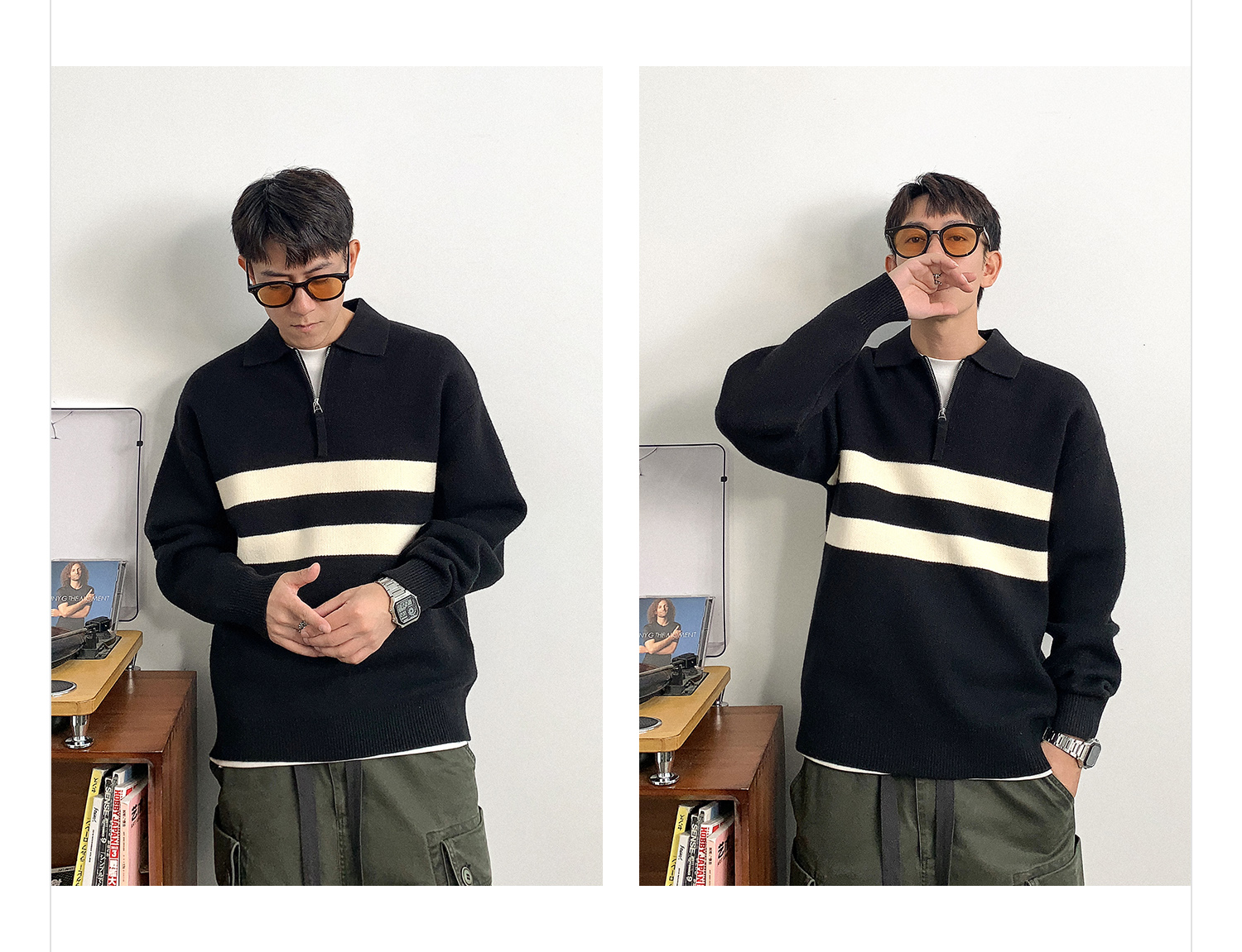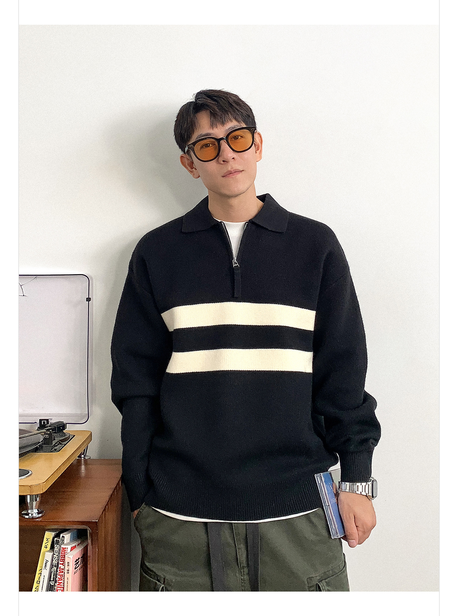 徐太浪美式撞色拉链套头毛衣男秋季潮牌男装大码休闲内搭针织上衣
