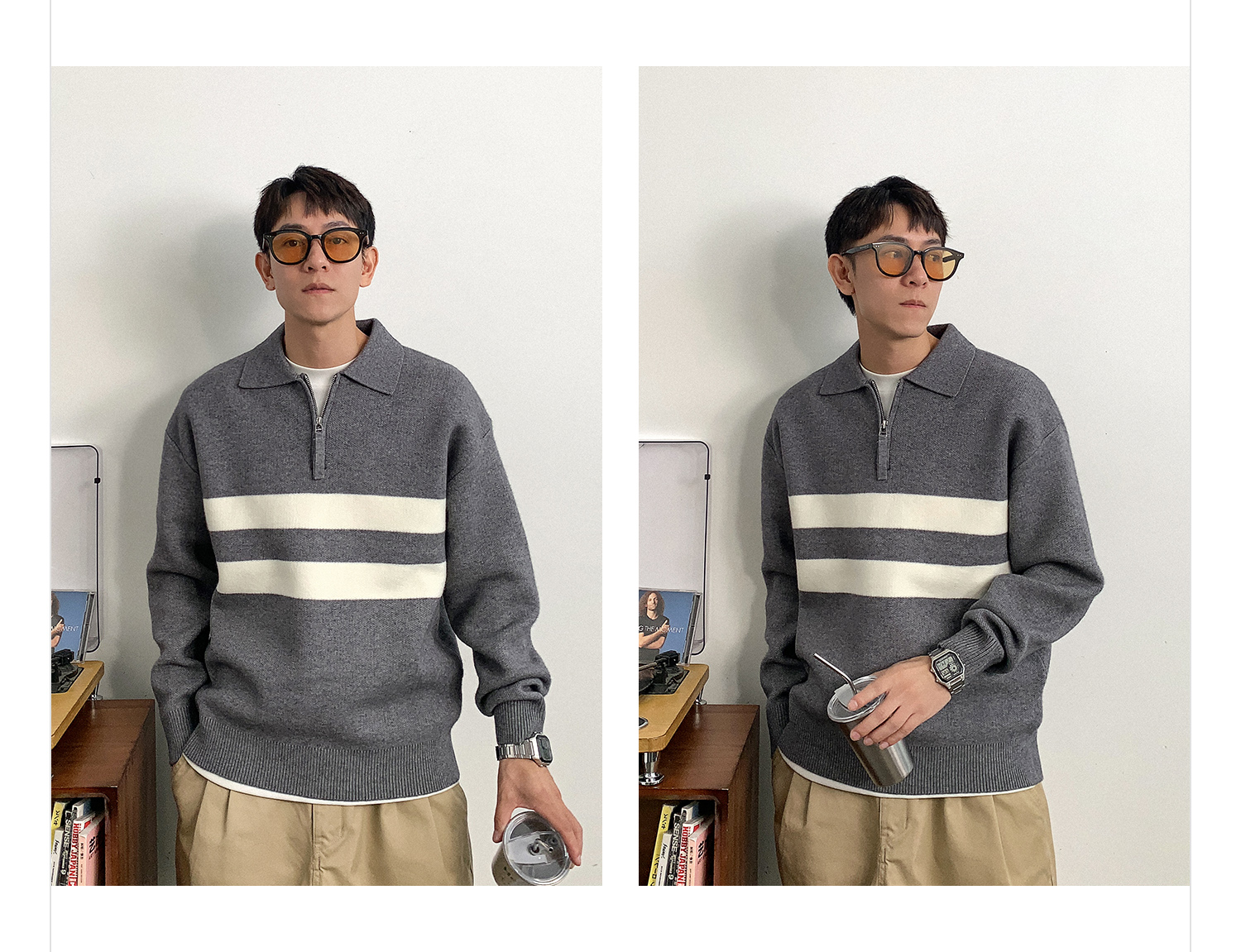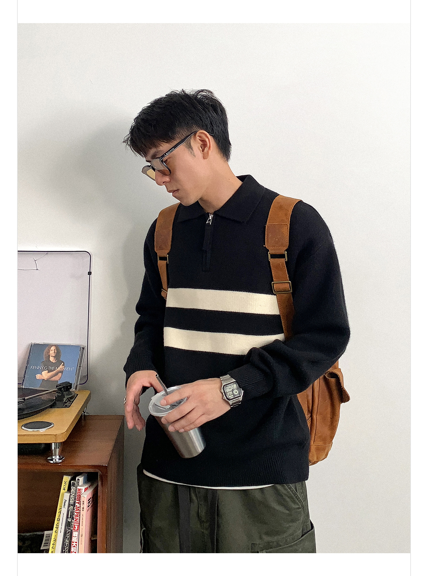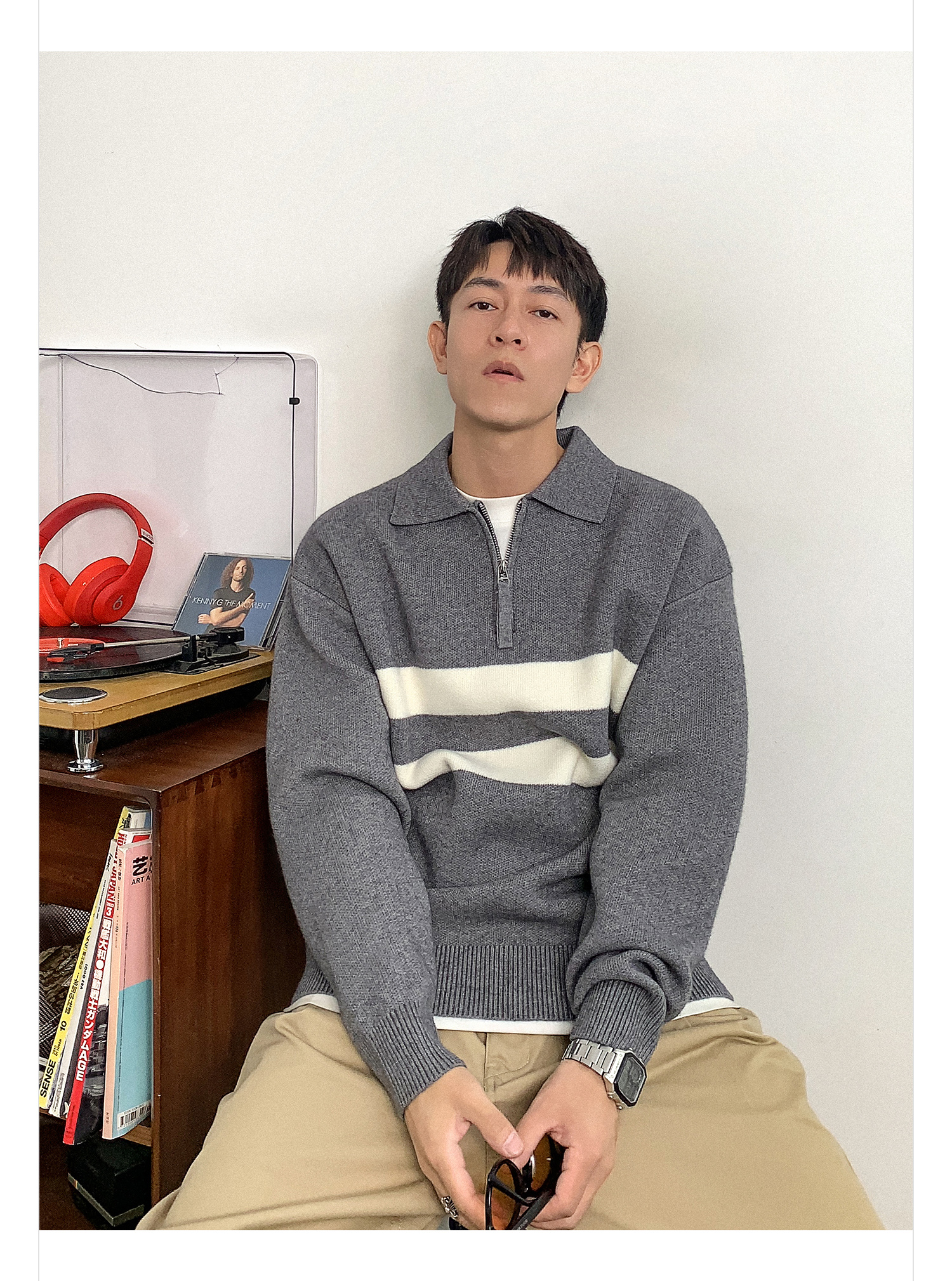 徐太浪美式撞色拉链套头毛衣男秋季潮牌男装大码休闲内搭针织上衣