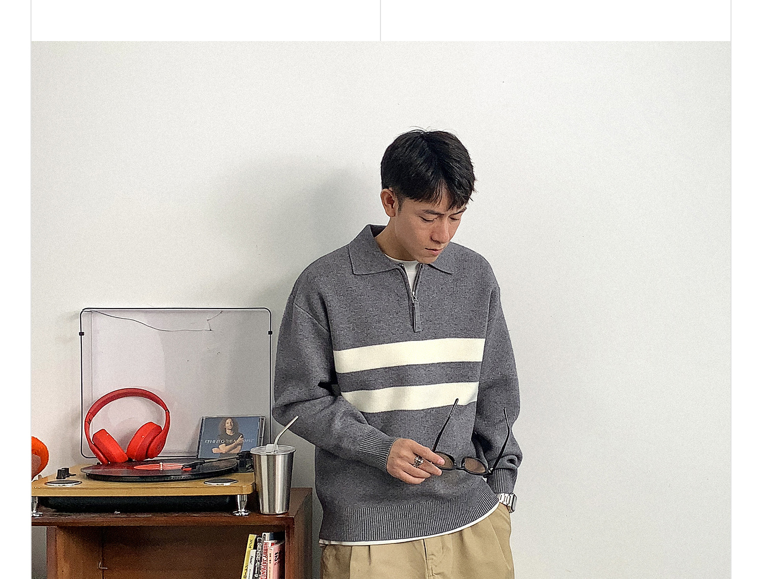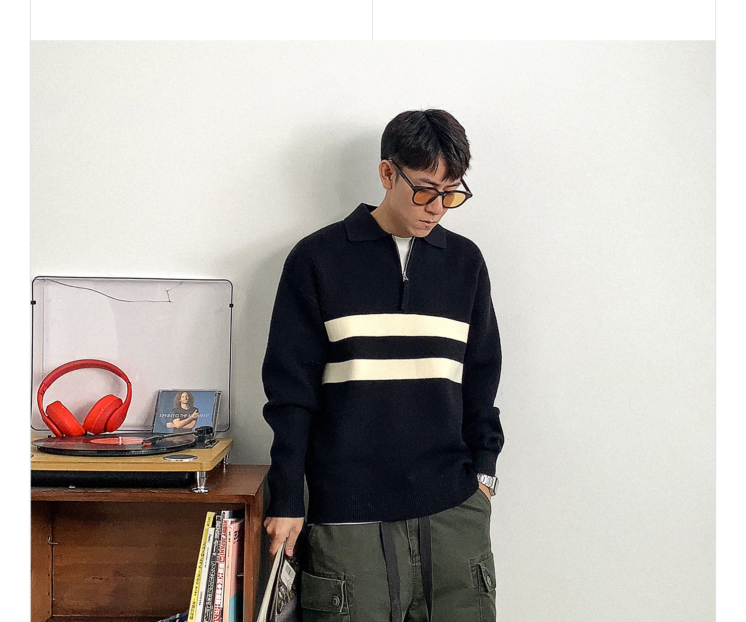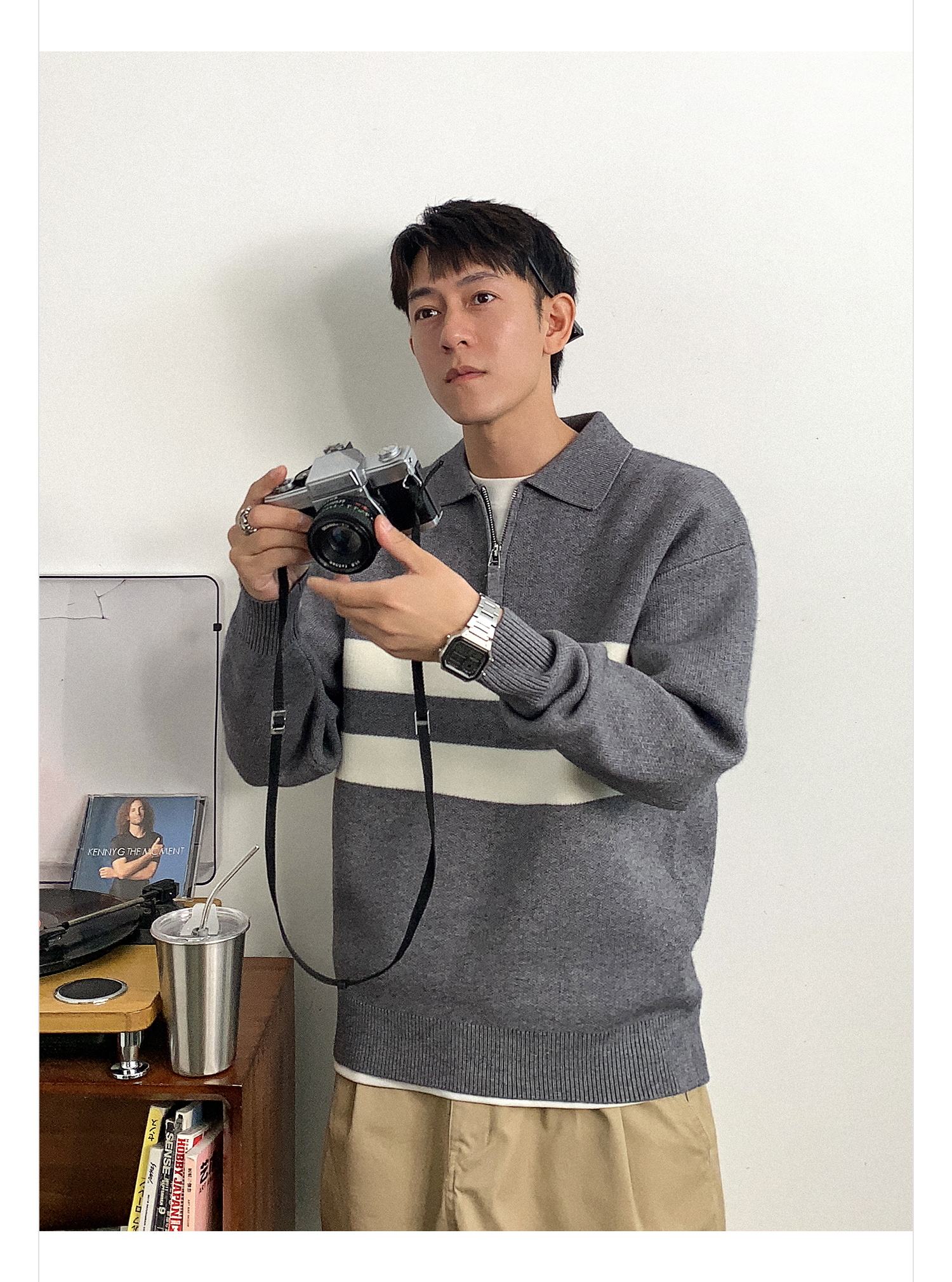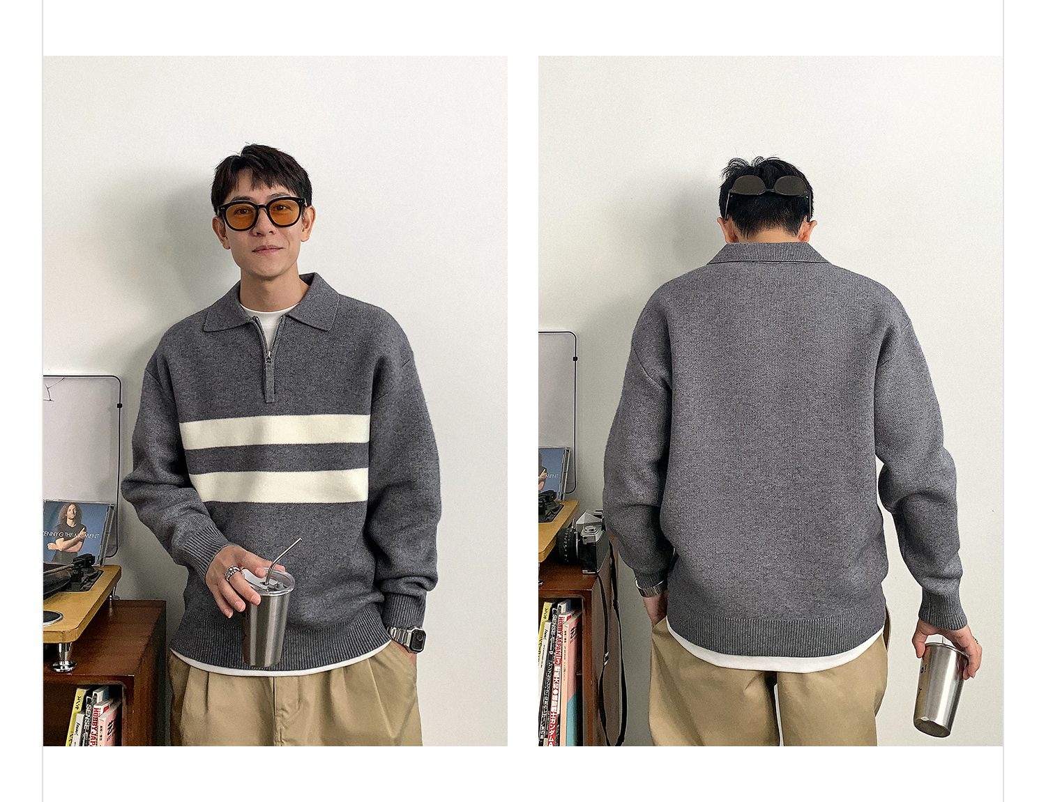 徐太浪美式撞色拉链套头毛衣男秋季潮牌男装大码休闲内搭针织上衣