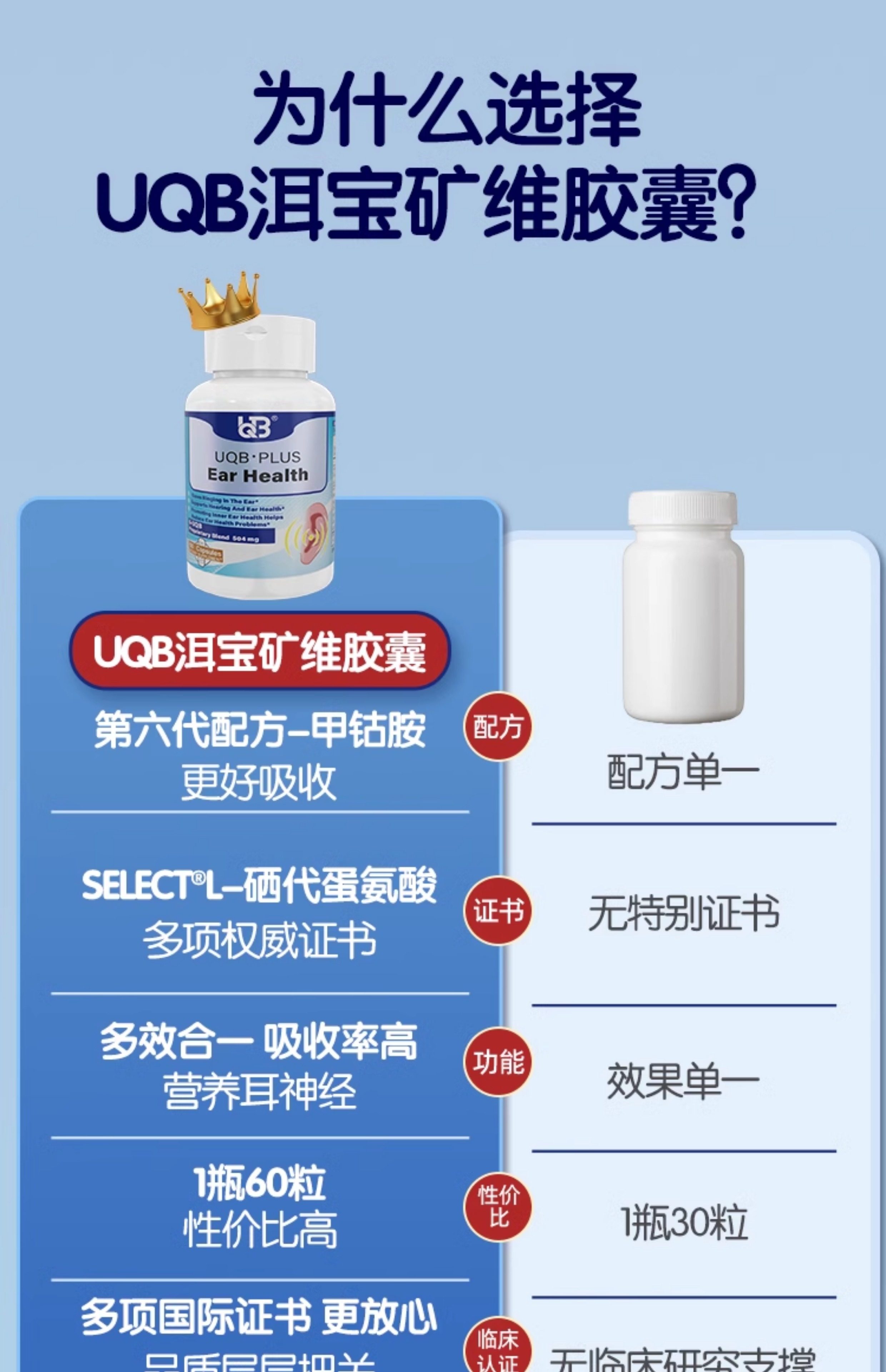 UQB美国原装进口洱宝矿维胶囊神经性耳响嗡嗡响改善耳健康耳背