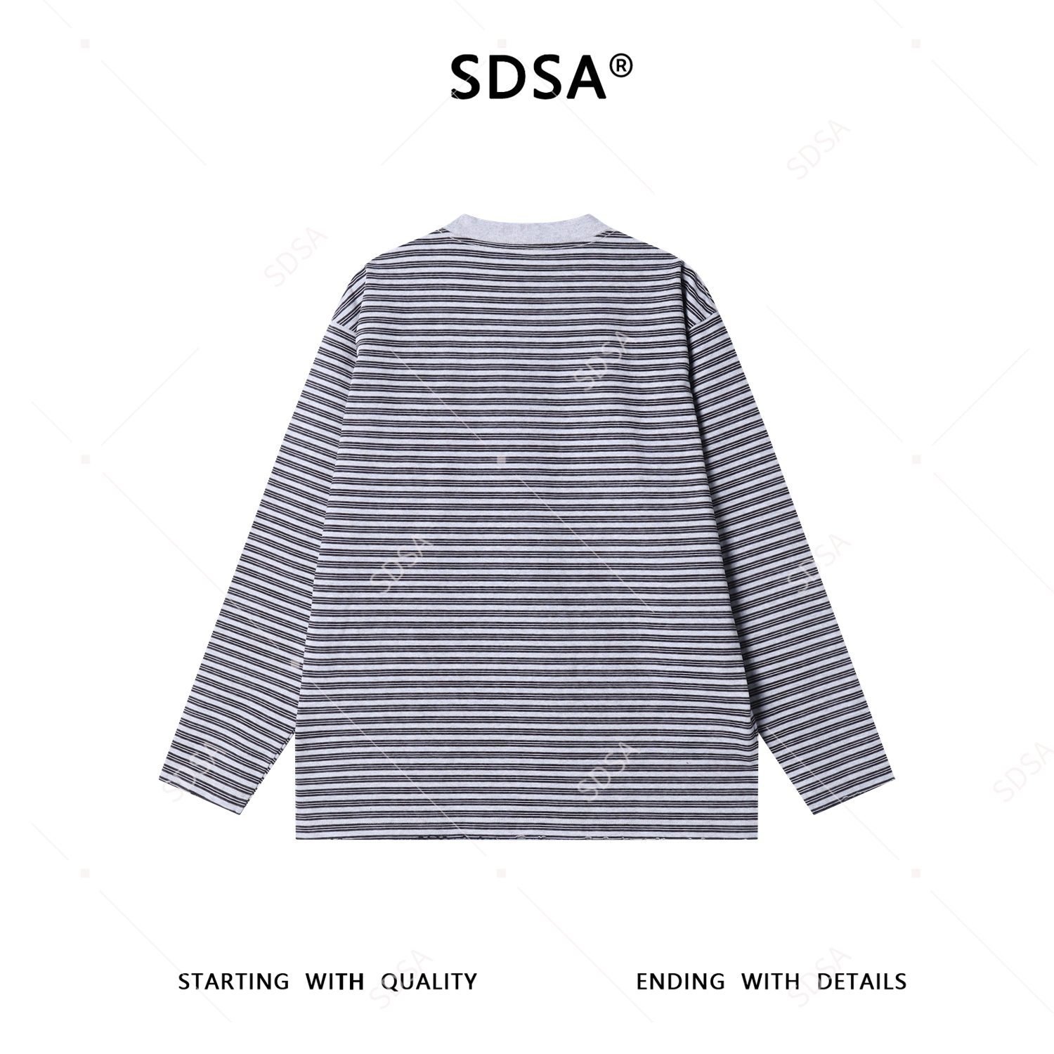SDSA男士秋冬新款痞帅男装好像撞色条纹圆领长袖T恤百搭时尚上衣