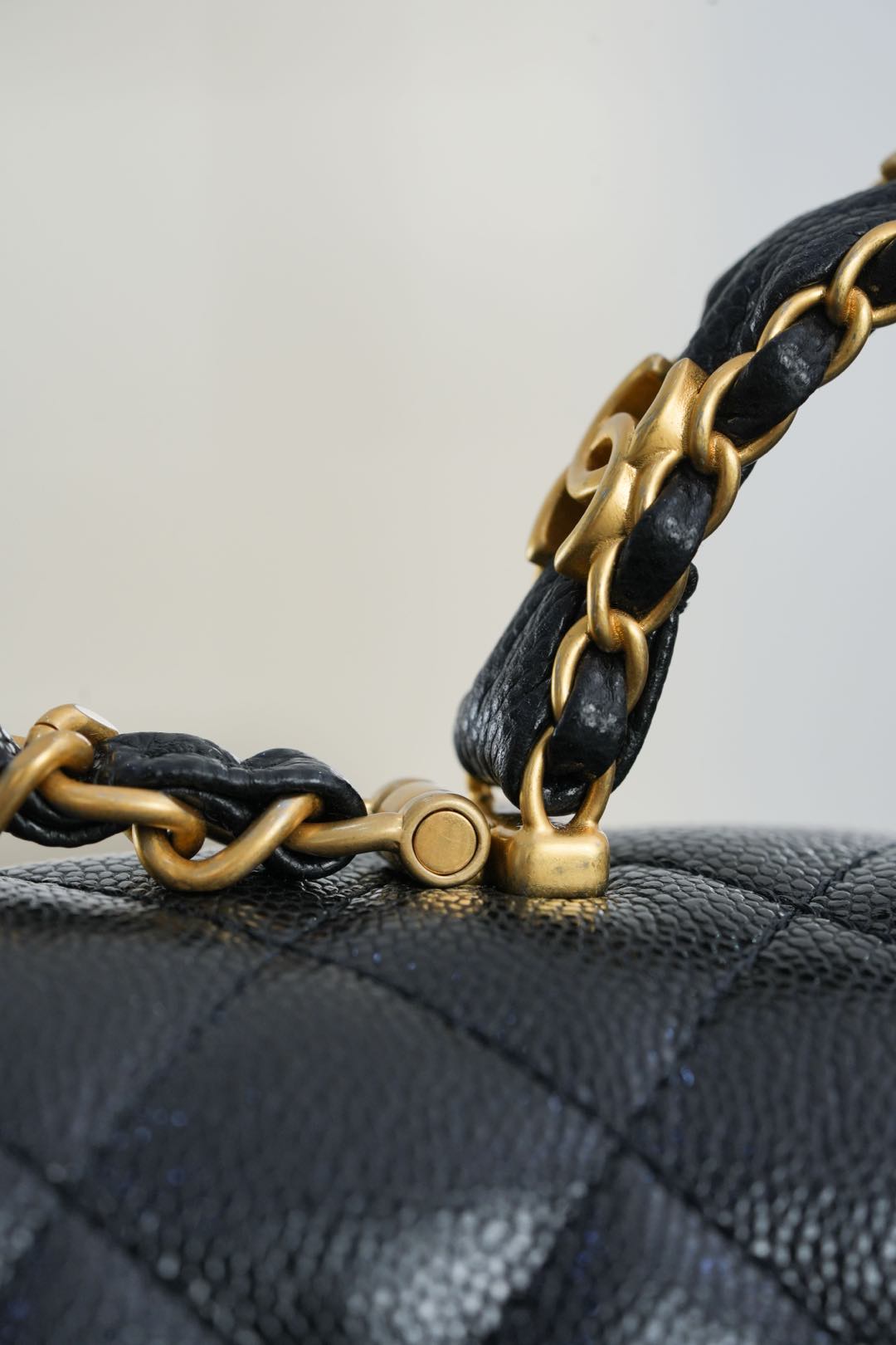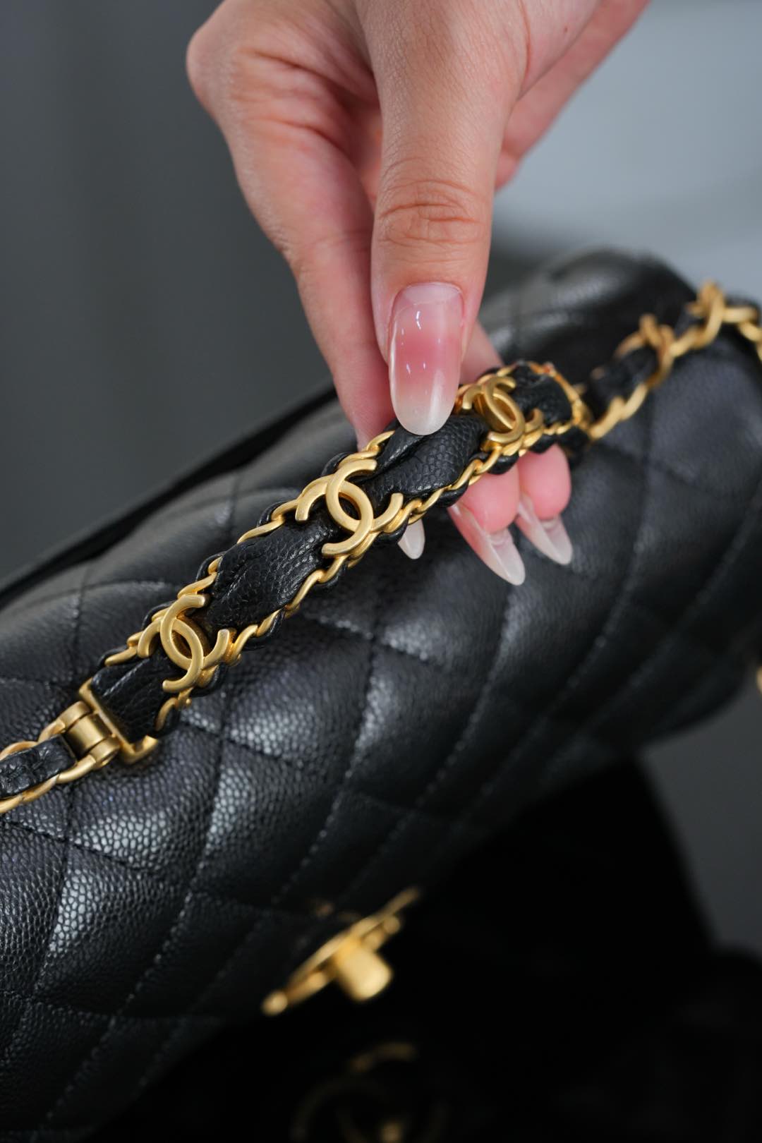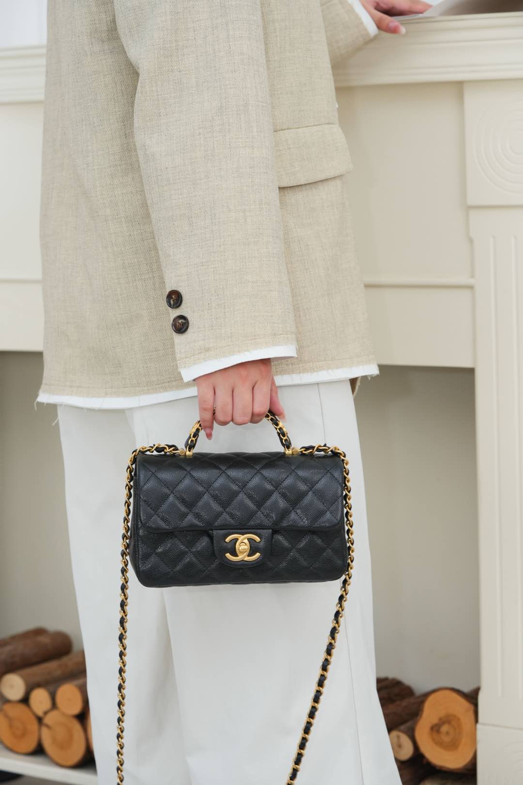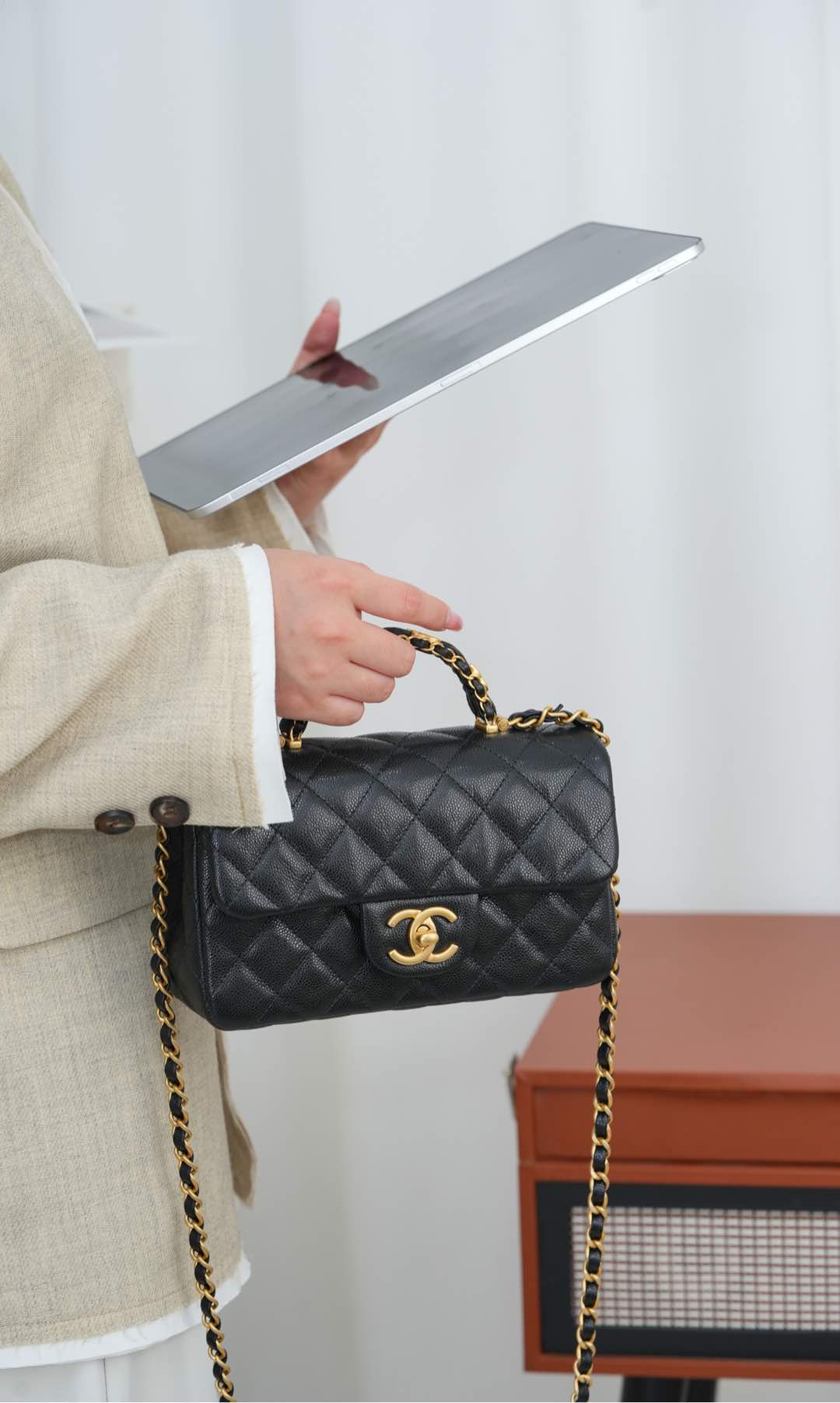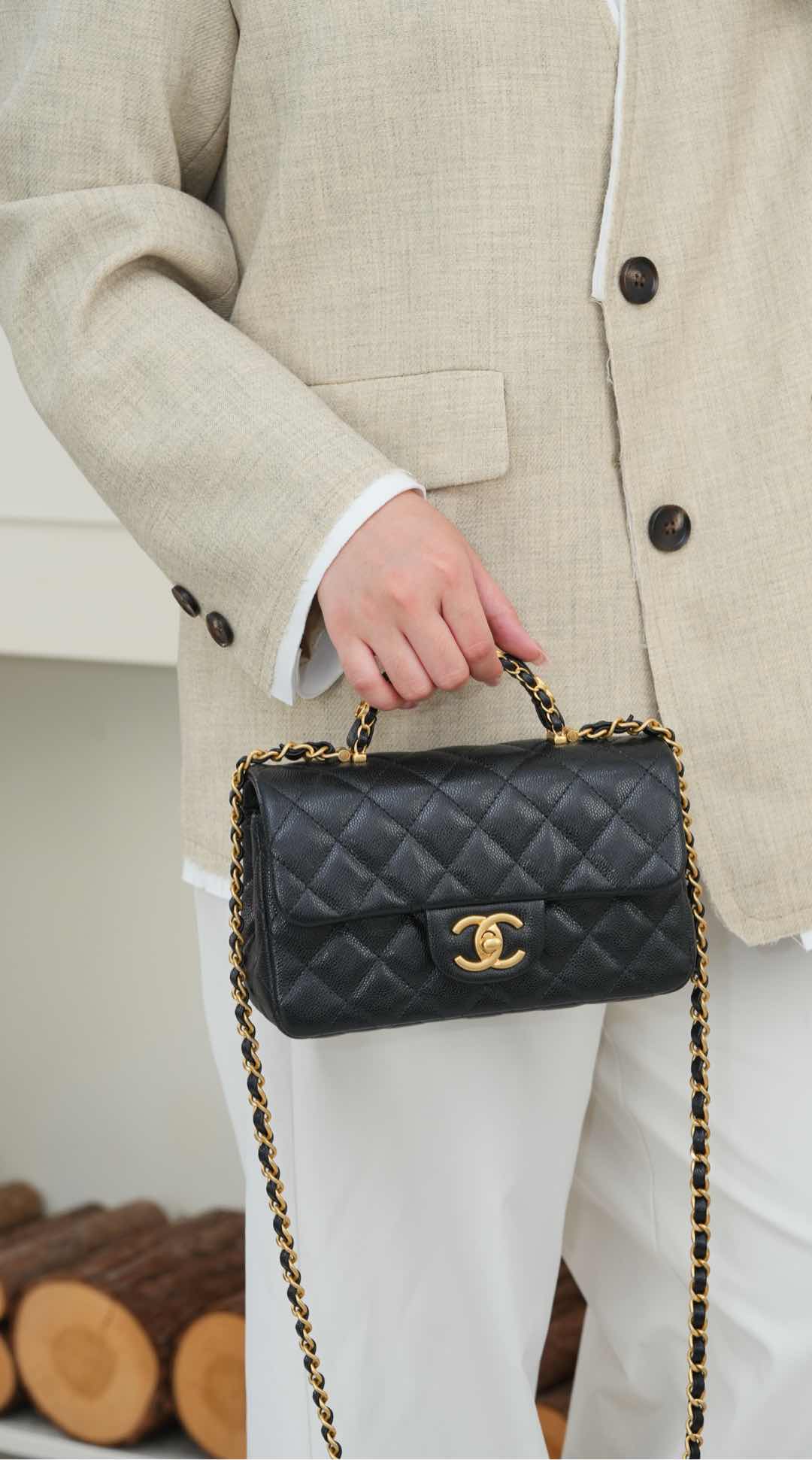 可可爱爱的尺寸 不大不小刚刚好‼️ 手柄上的双𝐂厚金与皮革交织、无论是外观颜值、还是手提时贴合手掌的弧度与质感~都足以感受到品牌匠心精神👏🏻 长链条🉑斜跨单肩、多种背法百搭又经典🧚♀️简直完美无可挑剔!!