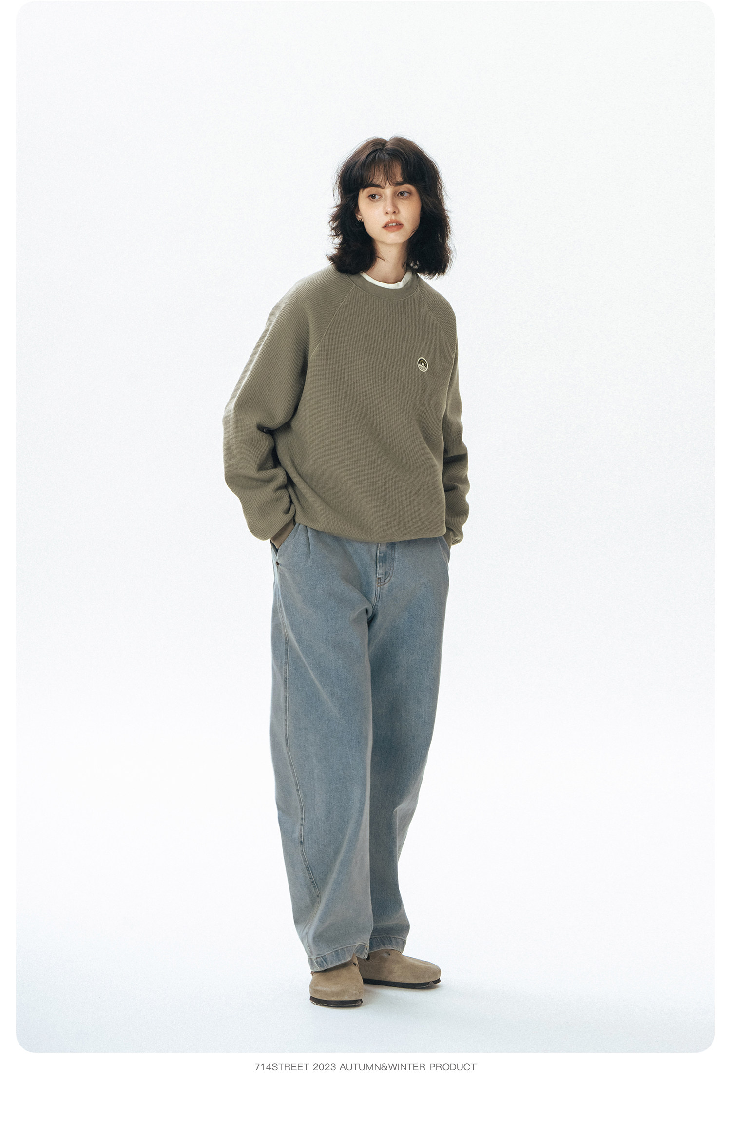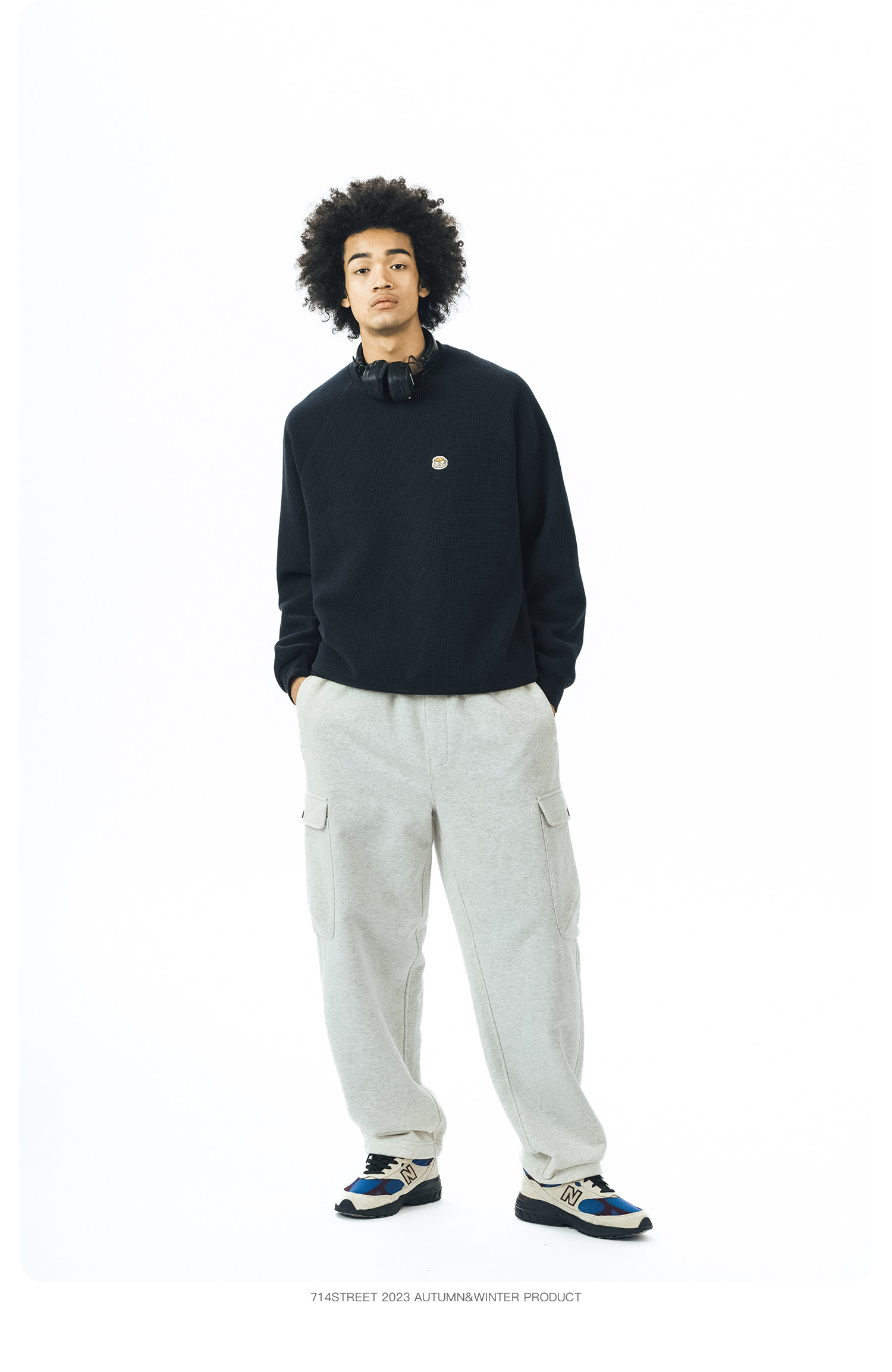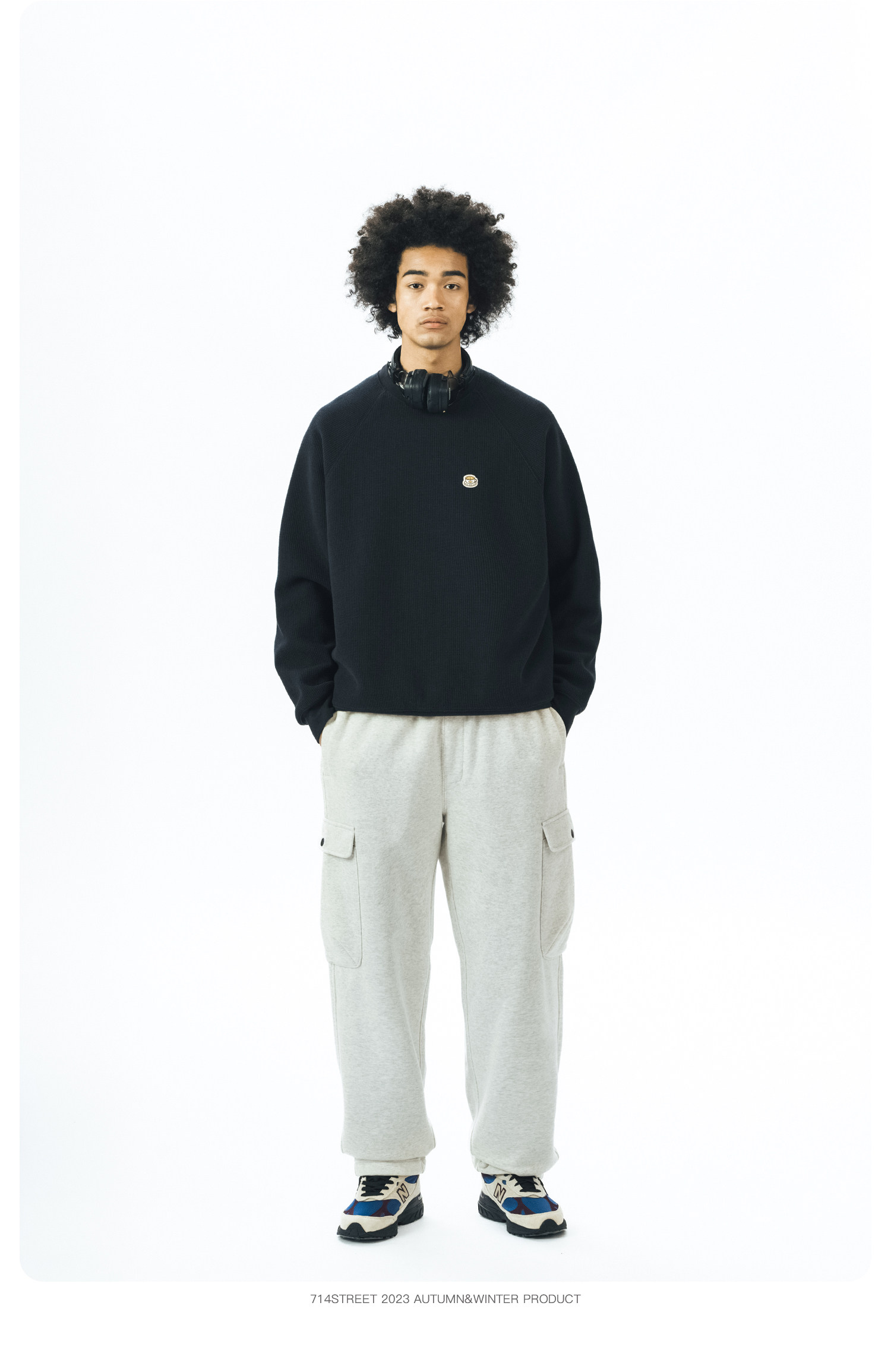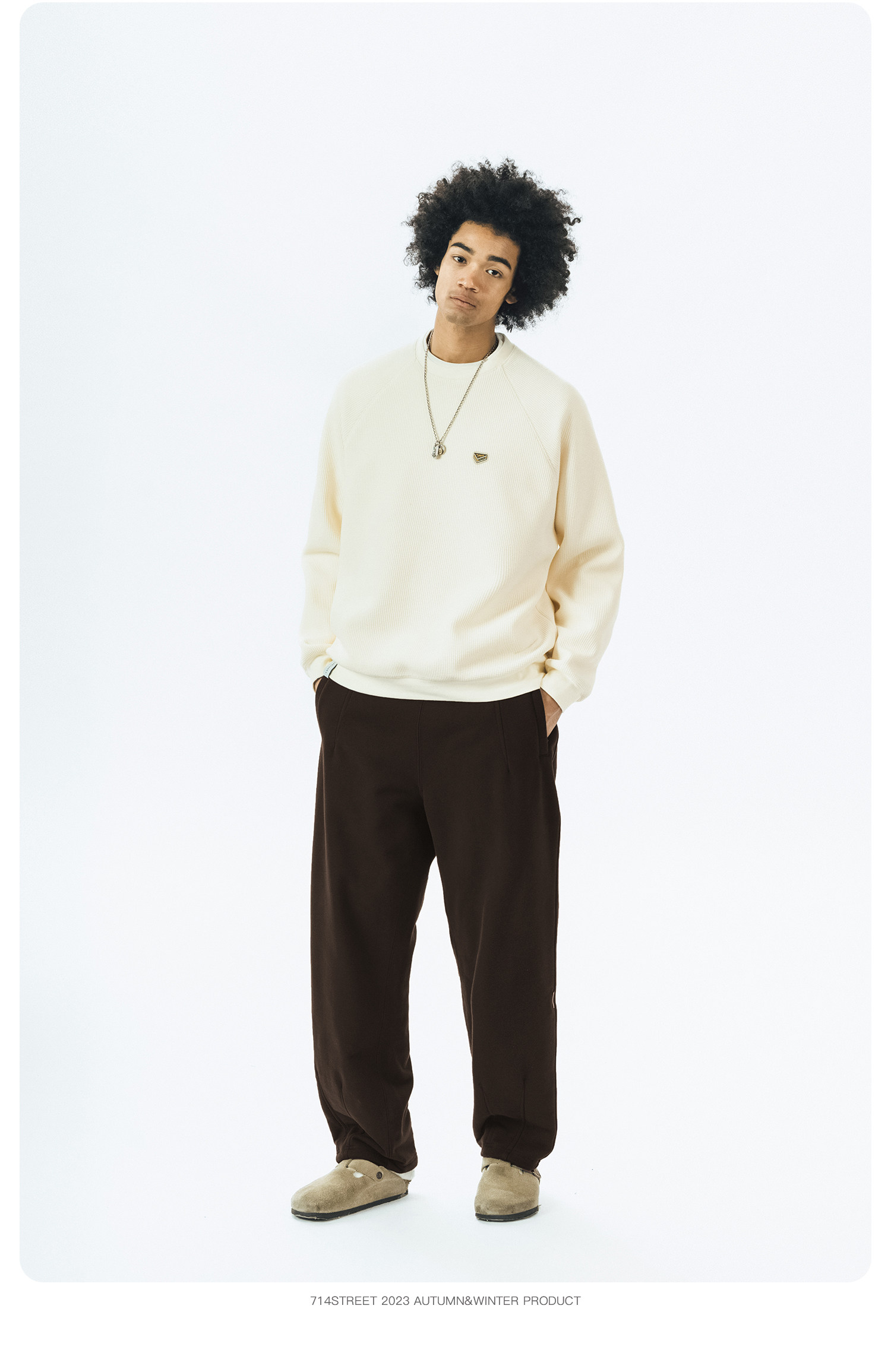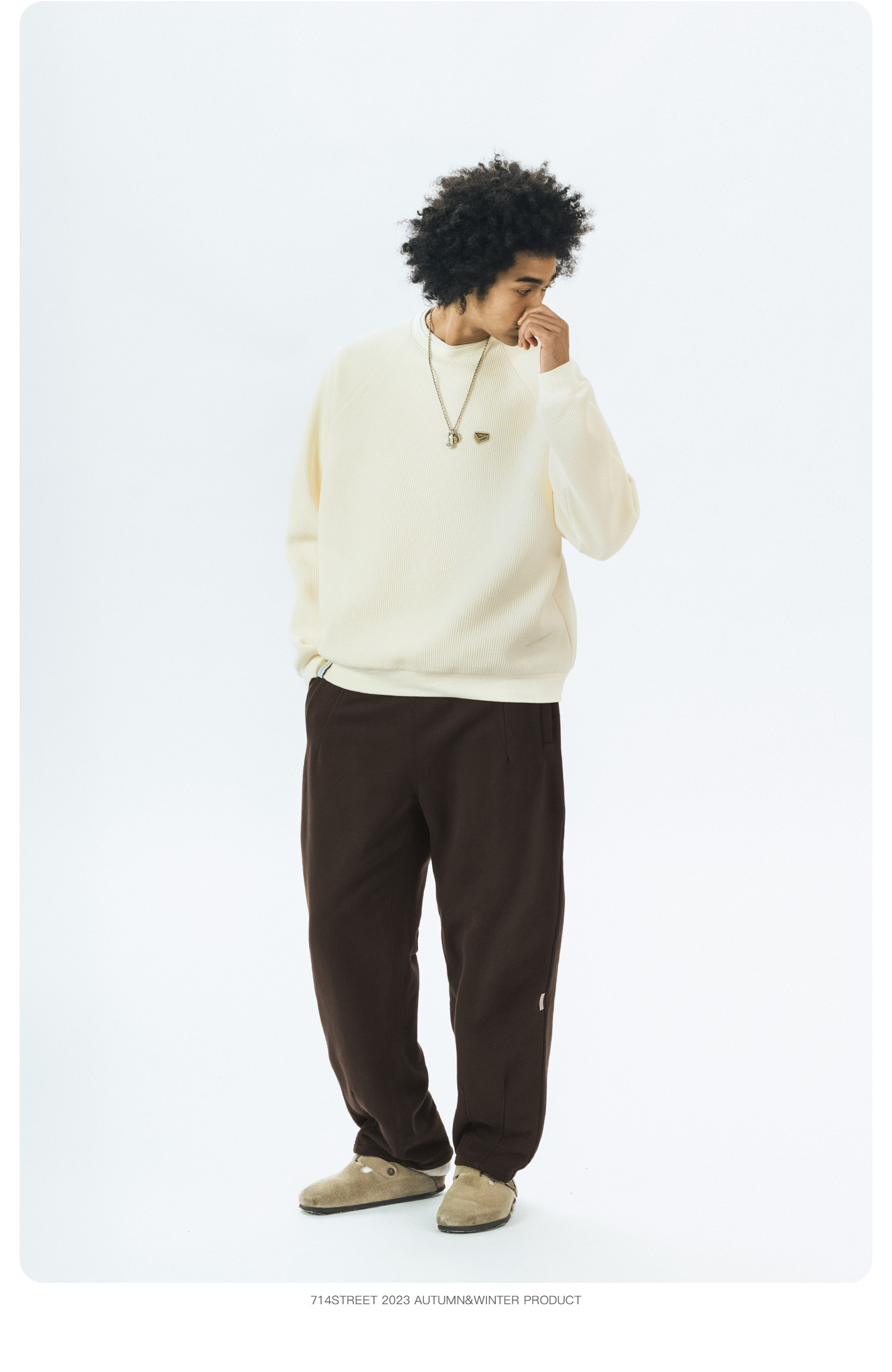 714street华夫格圆领加绒卫衣男女春秋潮牌情侣装日系打底长袖T恤