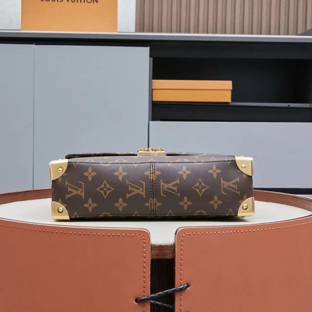 LouIs VUITTON Trunkie 滑动链条铆钉装饰 涂层帆布 单肩包 女款 棕色(CB)