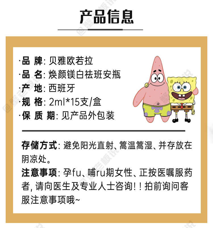 咨询优惠西班牙贝雅欧若拉美白淡斑精华提亮抗氧原液淡痘印安瓶