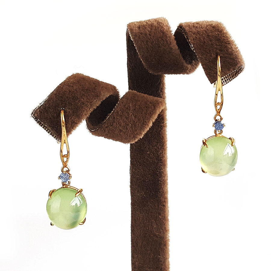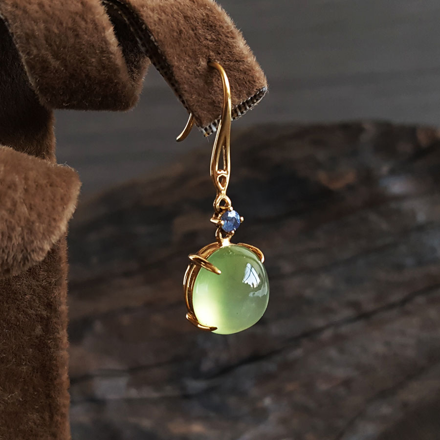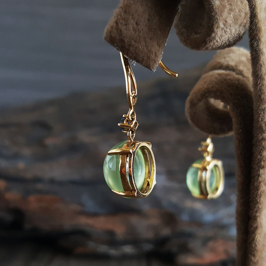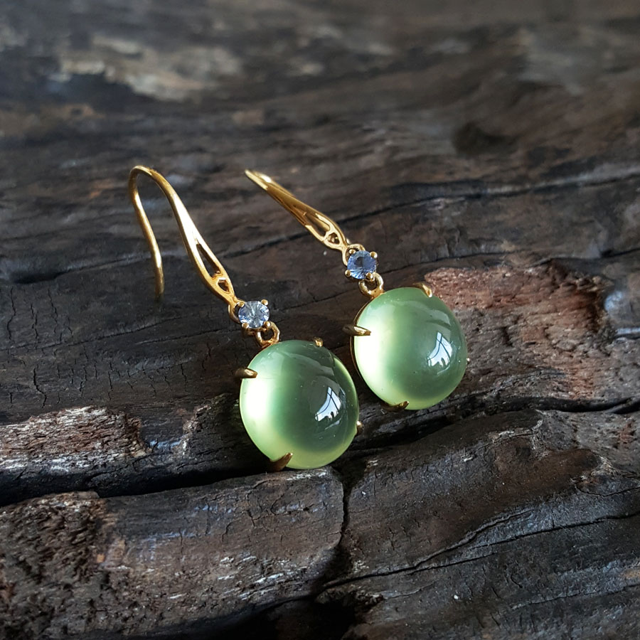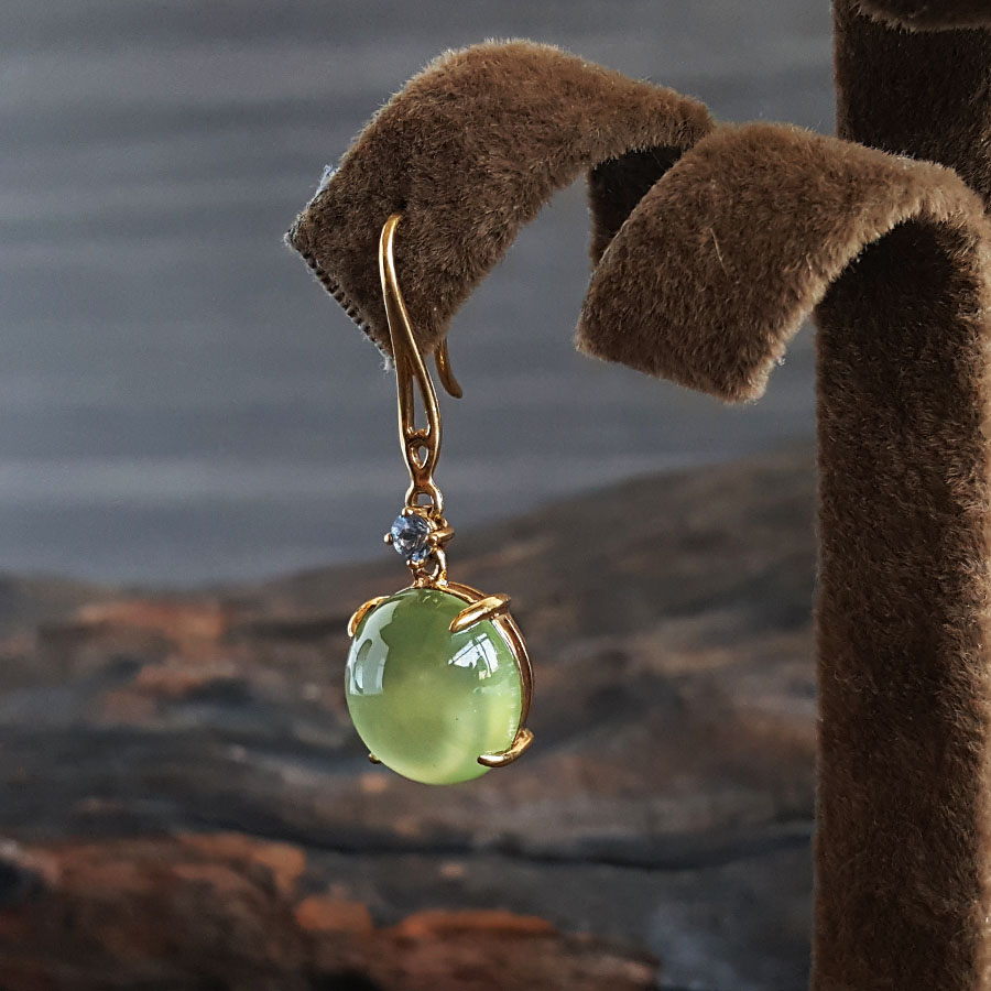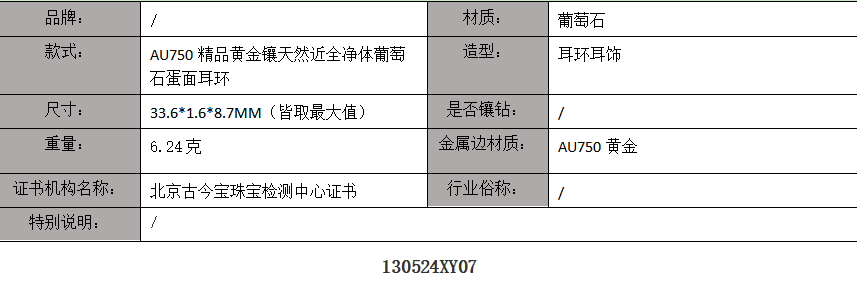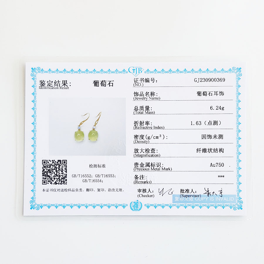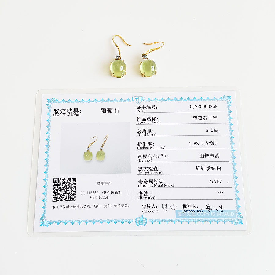 【天然正品】AU750精品黄金镶天然近全净体葡萄石蛋面耳环130524XY07