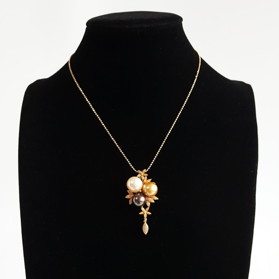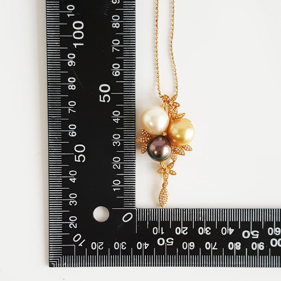 名称 | AU750收藏级黄金豪镶钻镶天然近完美约10-11MM三色海水珍珠吊坠项链 |