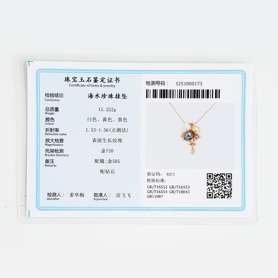 【天然正品】AU750收藏级黄金豪镶钻镶天然近完美约10-11MM三色海水珍珠吊坠项链链长:42CM(长度不可调节)女士091025NJS29