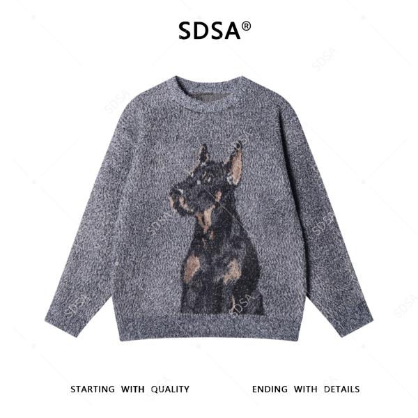 SDSA男士秋冬新款痞帅男装潮牌撞色小狗图案圆领毛衣百搭针织衫