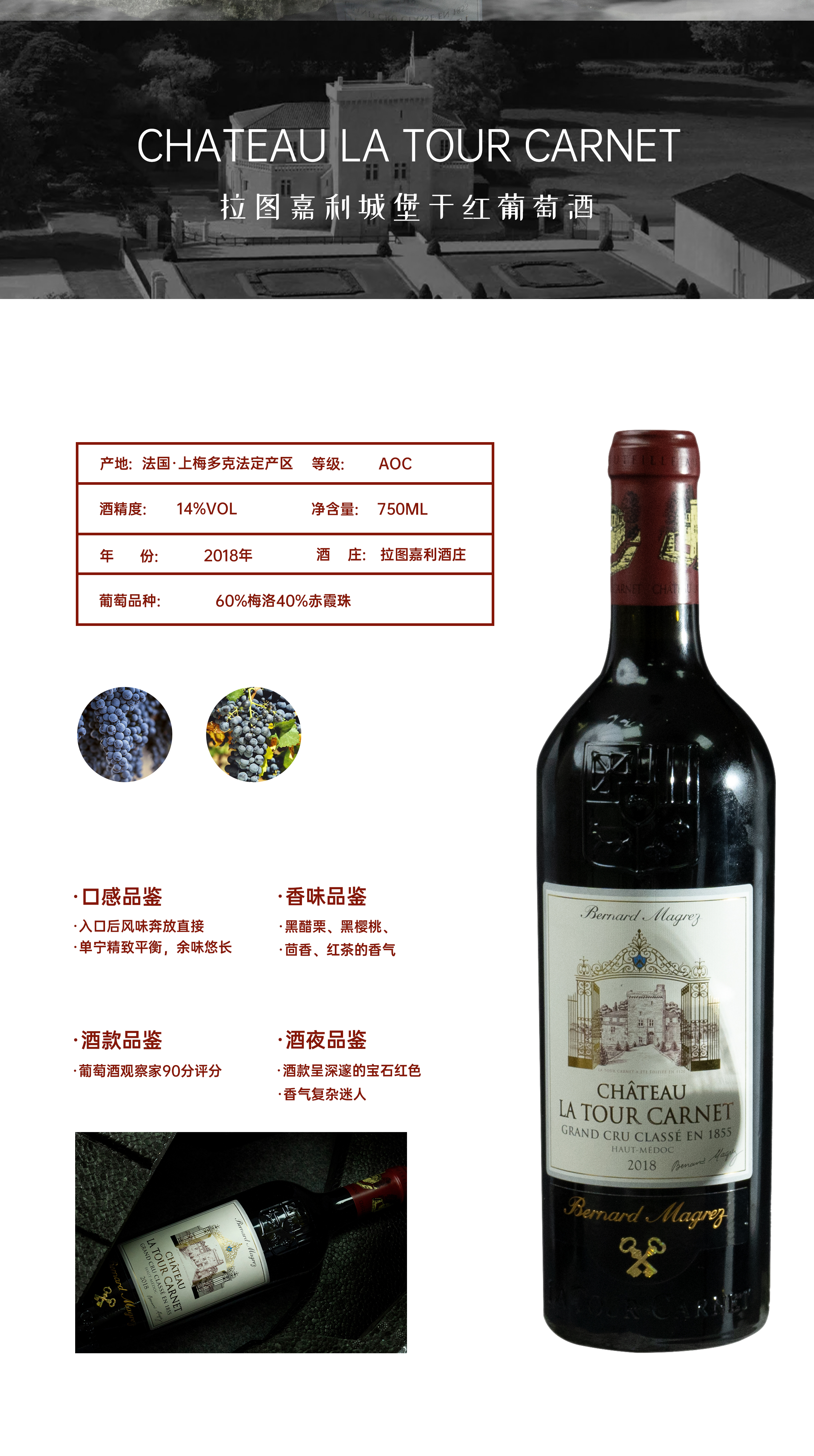 法国进口 拉图嘉利城堡酒庄750ml干红葡萄酒