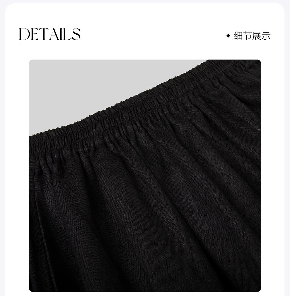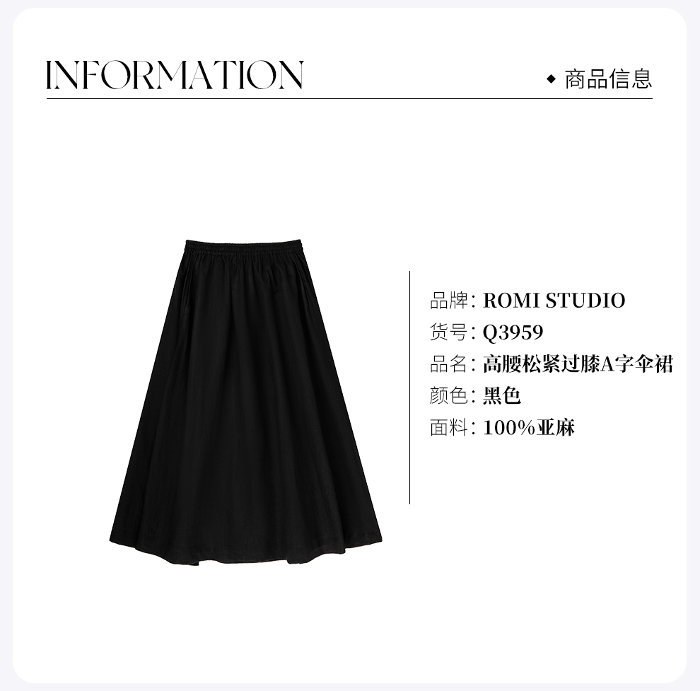 ROMI STUDIO“法式优雅”100%亚麻高腰松紧过膝A字伞裙/半身裙Q3959