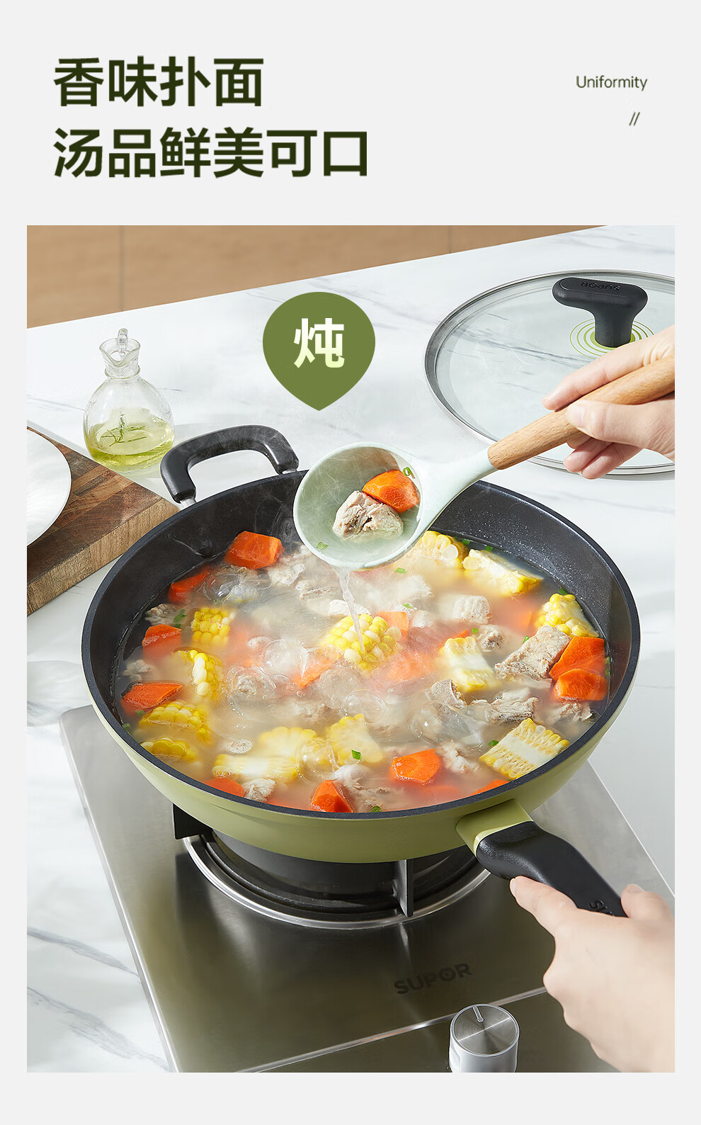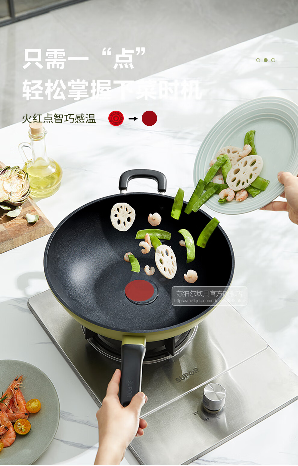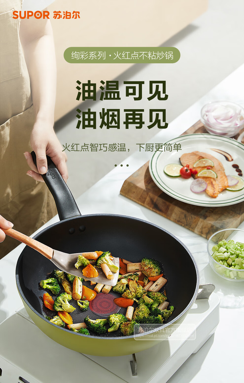 苏泊尔(SUPOR)炒锅不粘锅火红点控温家用炒菜锅少油烟平底煎炒锅电磁炉燃气通用 32cm口径EC32SP08