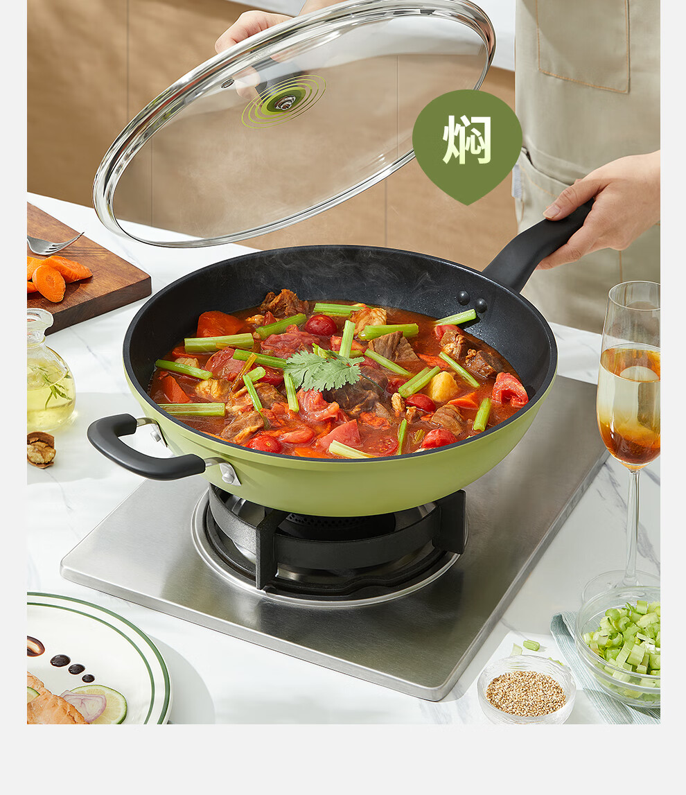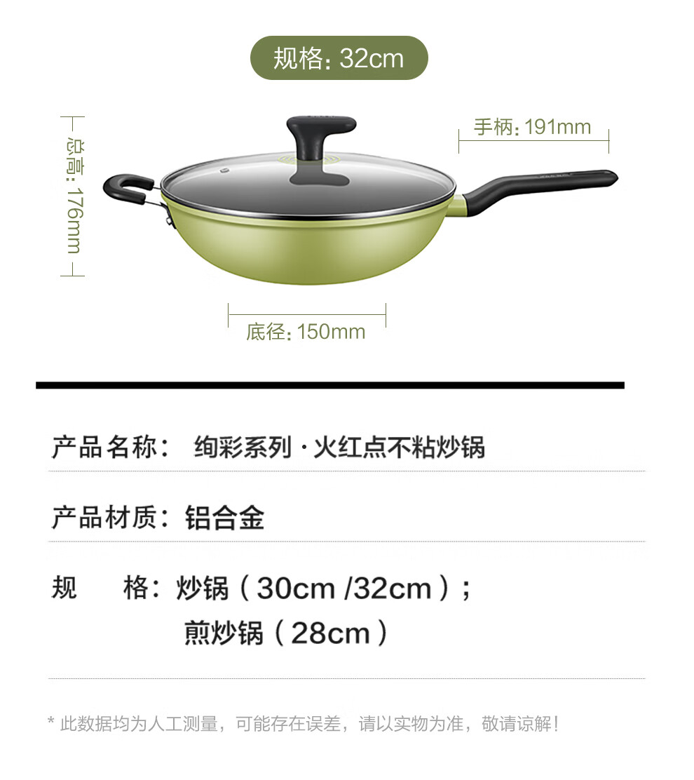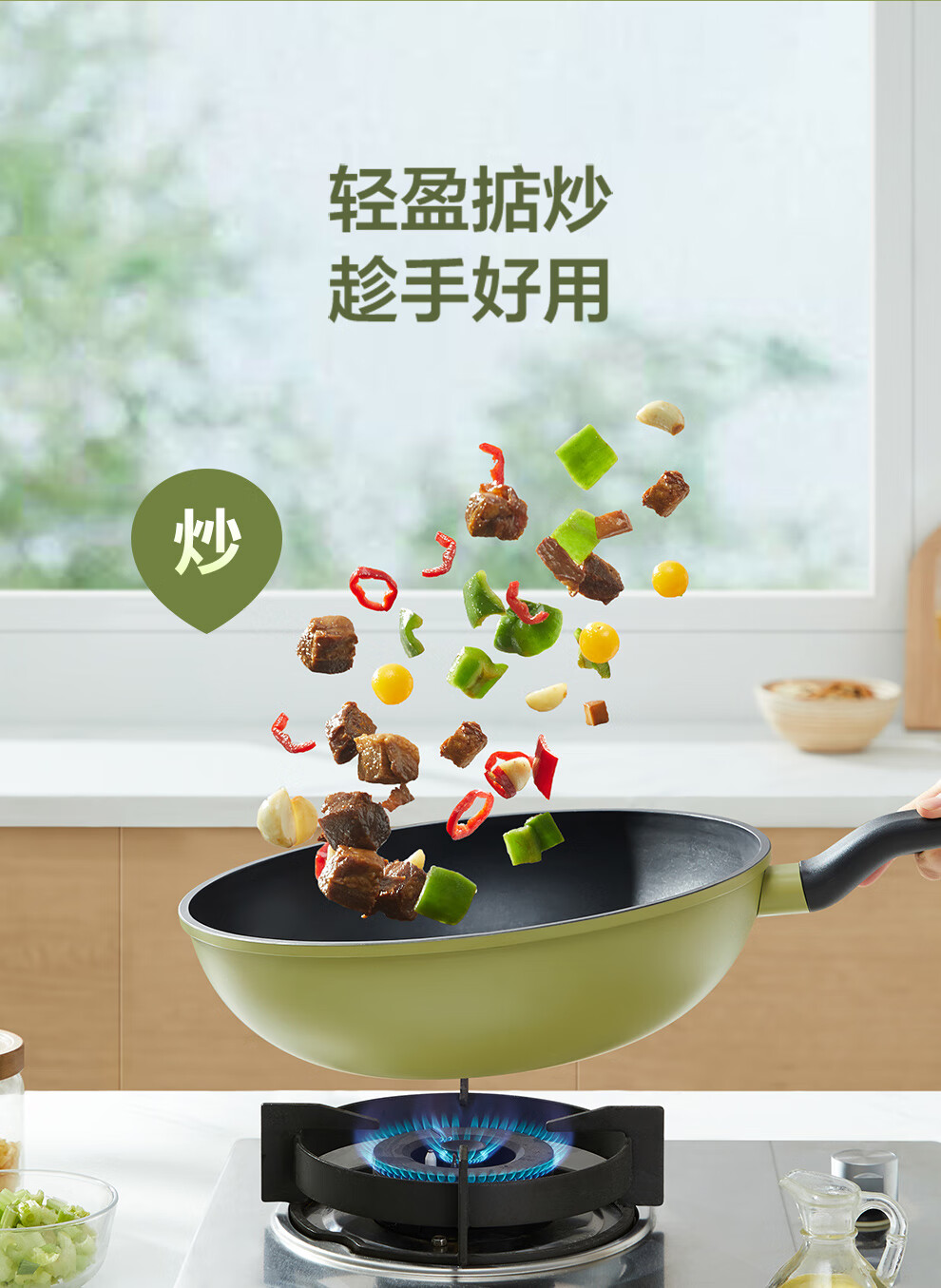 苏泊尔(SUPOR)炒锅不粘锅火红点控温家用炒菜锅少油烟平底煎炒锅电磁炉燃气通用 32cm口径EC32SP08