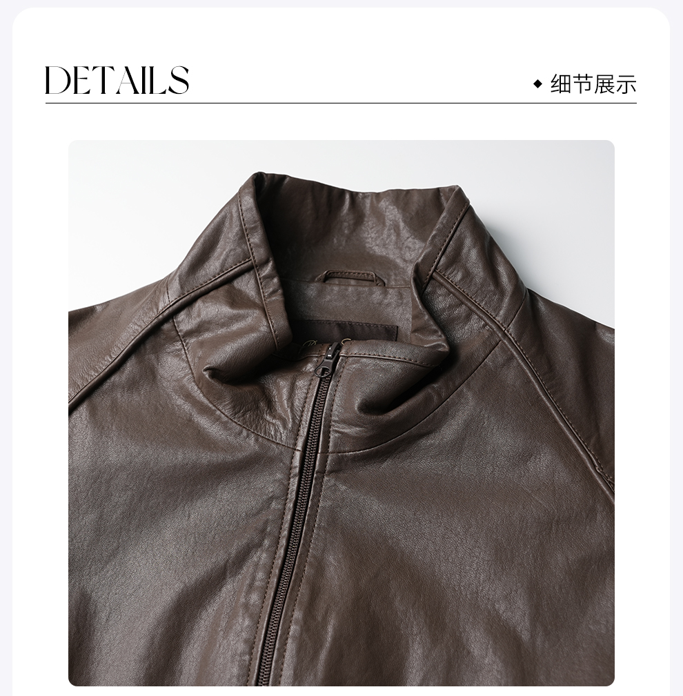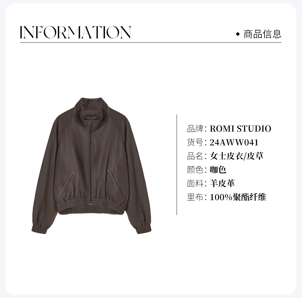 ROMI STUDIO“棕标甄选”全植鞣超薄羊皮哑光雾面立领皮衣 24AWW041