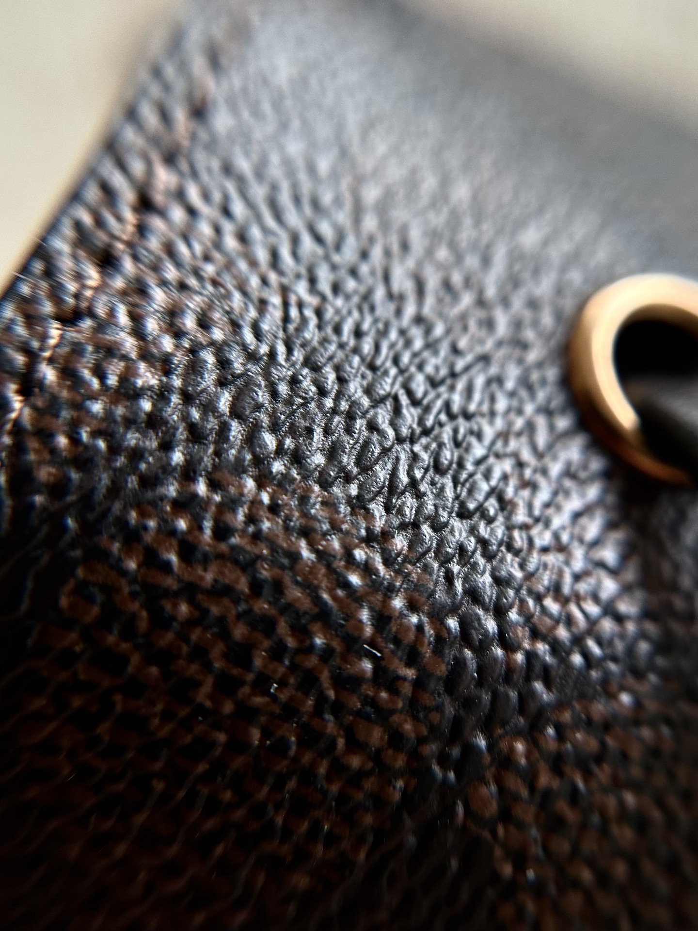看一下随手鞣捏后老花的状态以及皮质的颜色 非常正!进口的原版老花料!质感细腻! 整个包一拿到手就是zg的感觉,zg的味道!