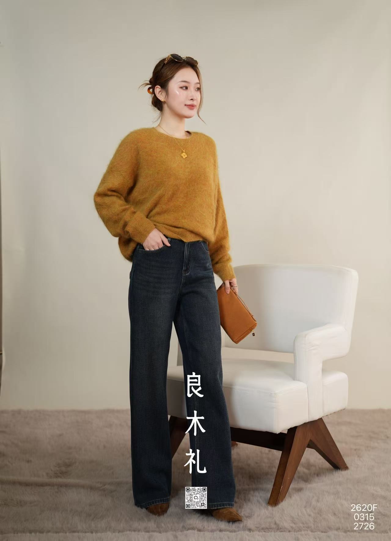 【特价不退换】【部分现货/加绒】良木礼直筒牛仔裤(绿豆豆)(D25103855)