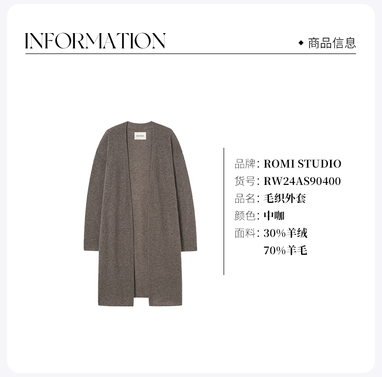 ROMI STUDIO“温柔已至”羊绒羊毛混纺宽松针织长开衫 RW24AS90400