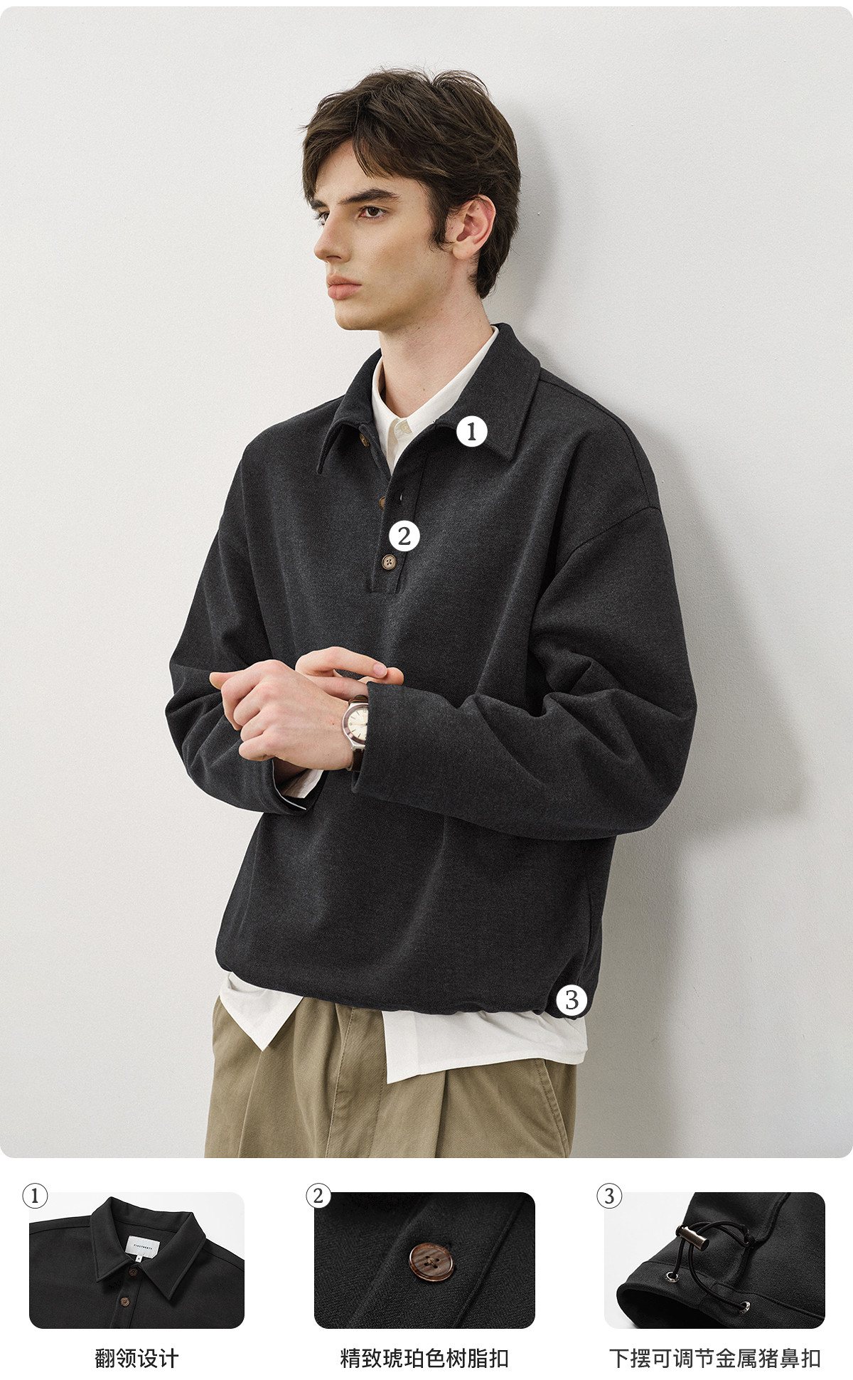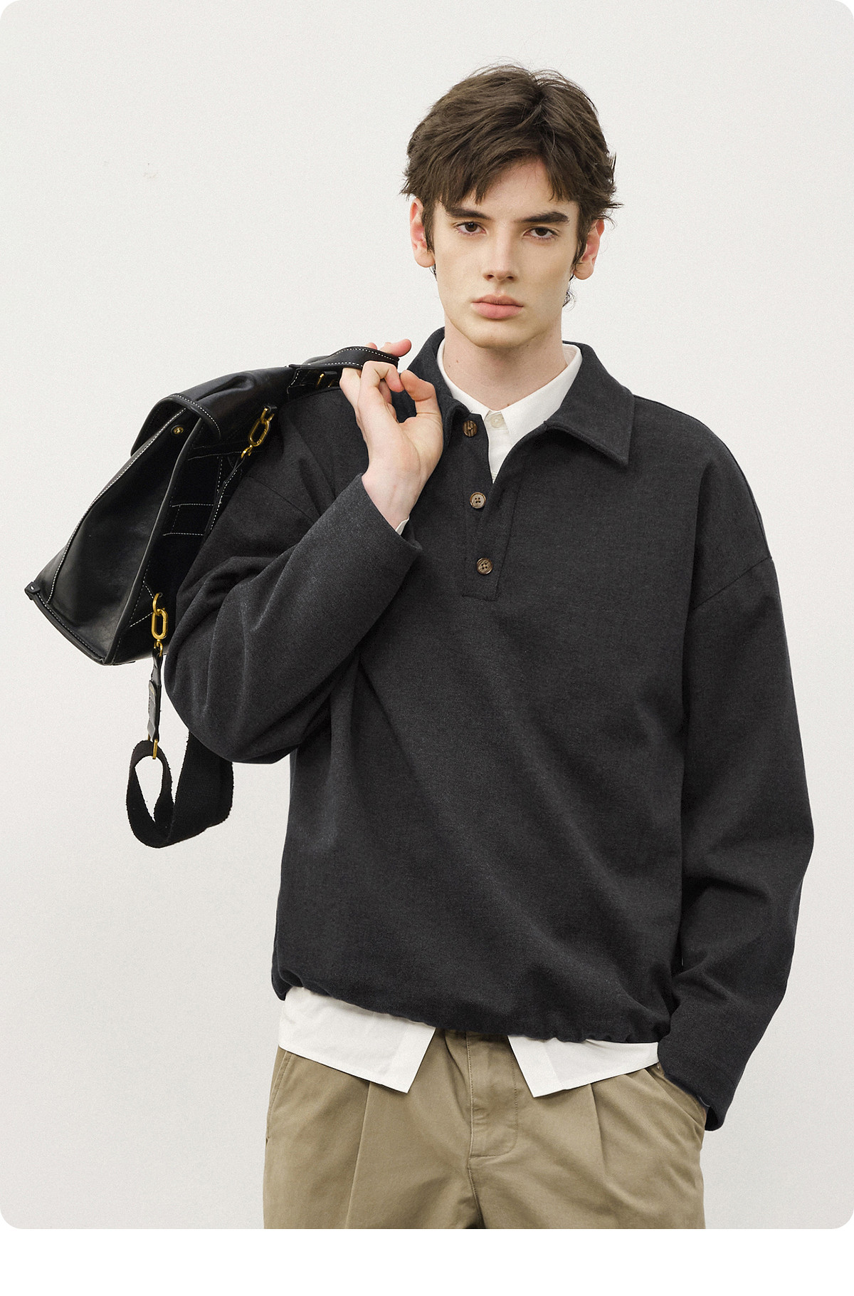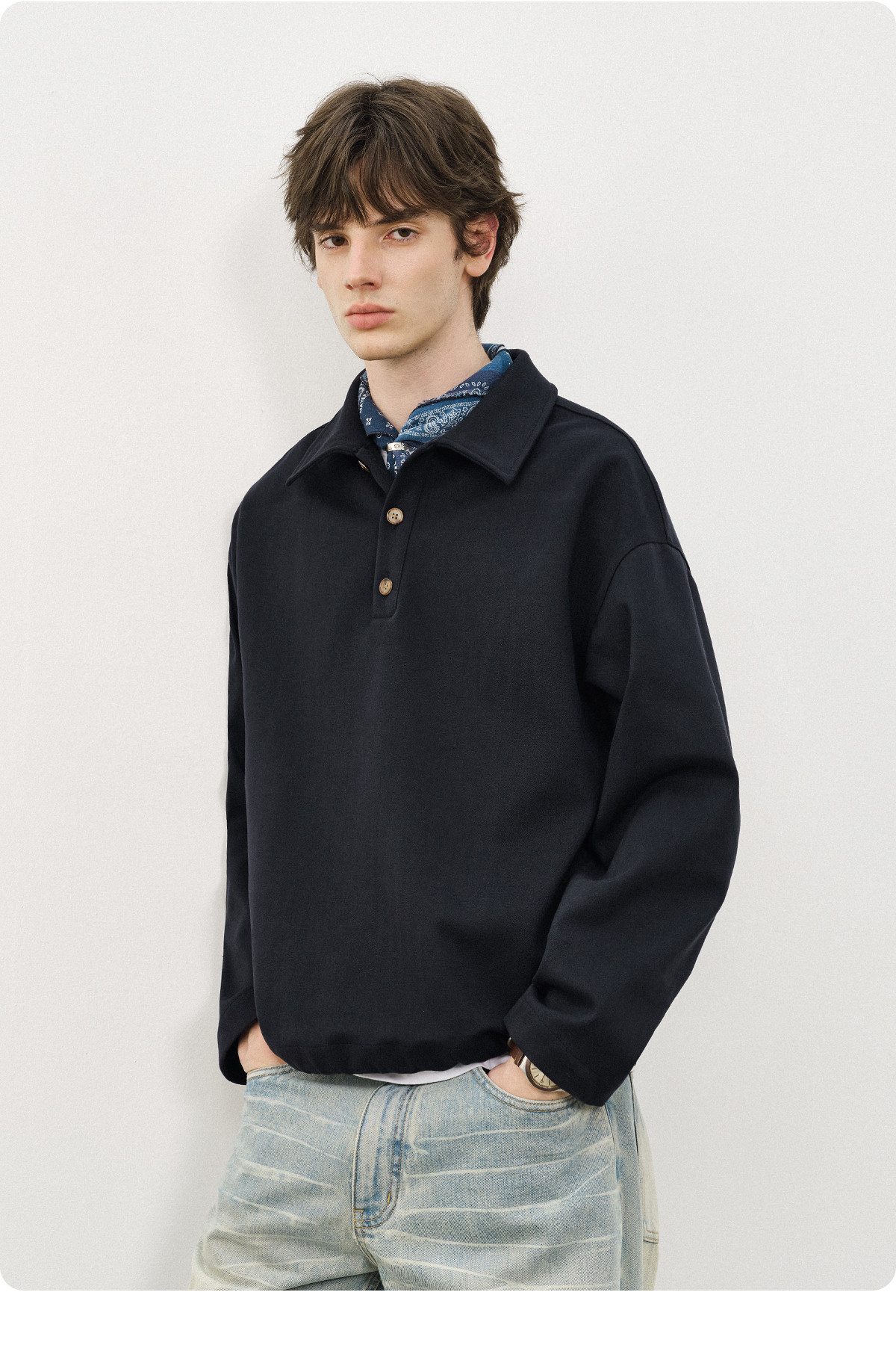 714stree宽松长袖POLO衫2025秋季复古毛呢翻领卫衣男情侣针织毛衣