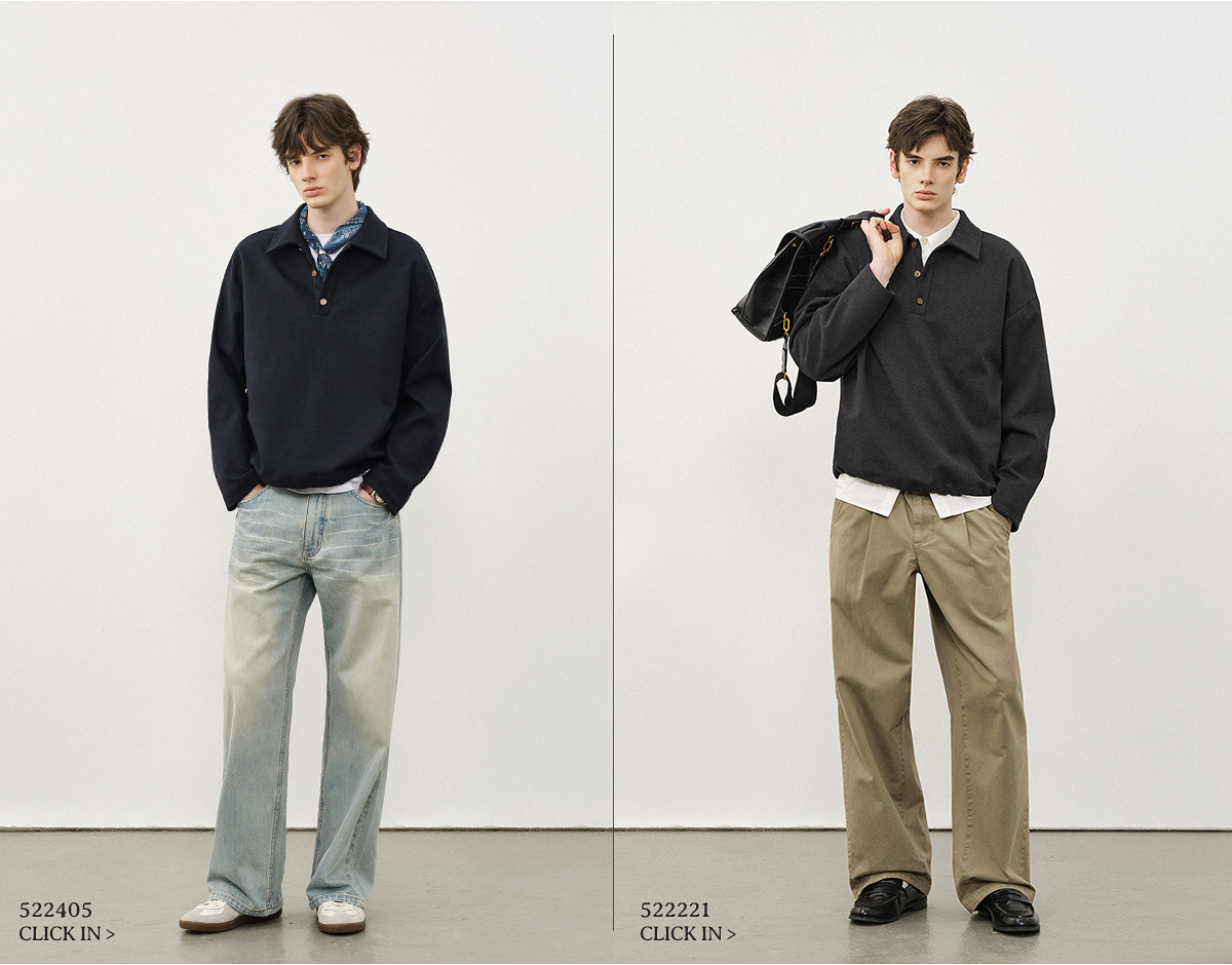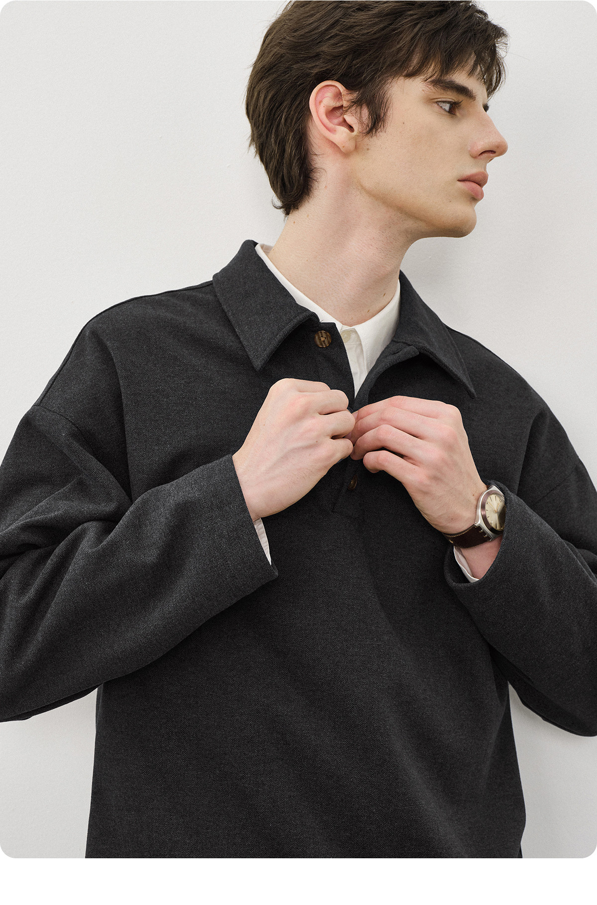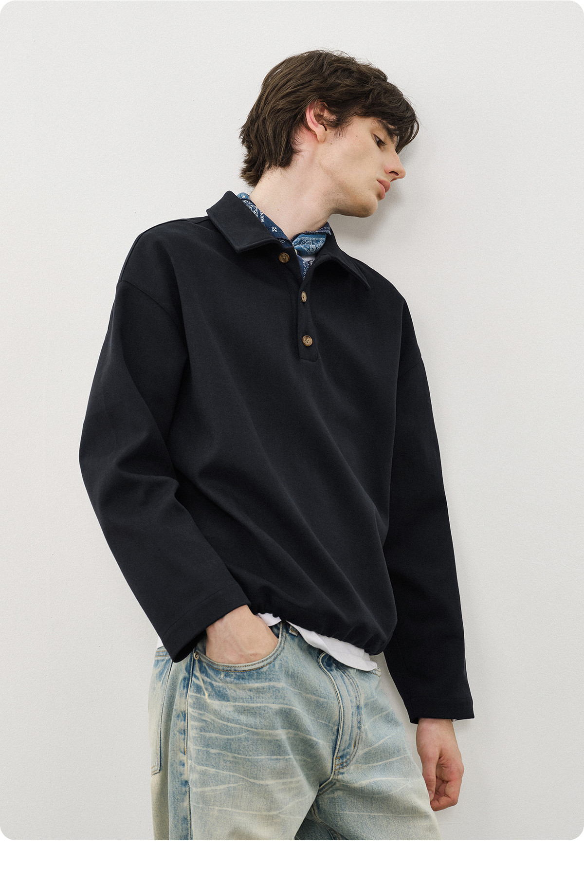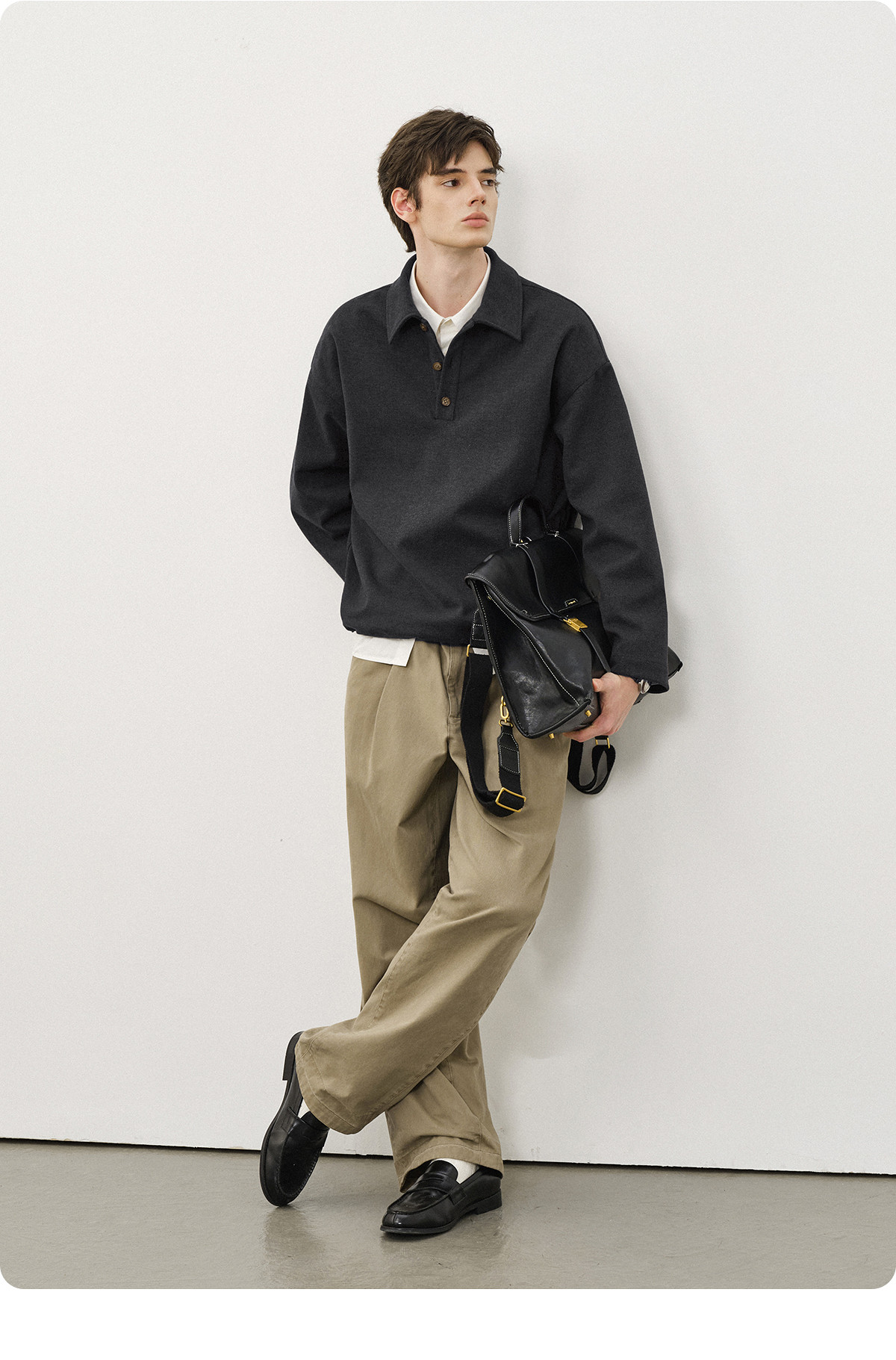 714stree宽松长袖POLO衫2025秋季复古毛呢翻领卫衣男情侣针织毛衣