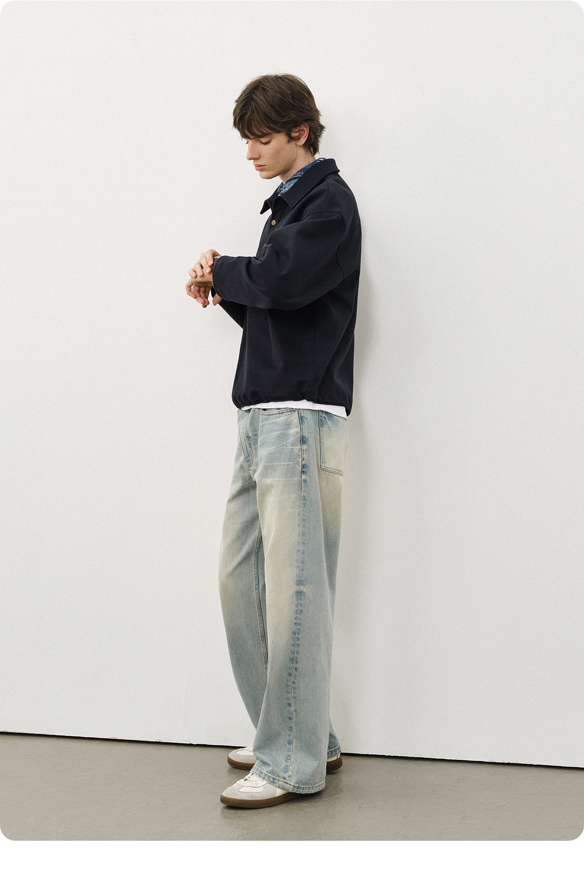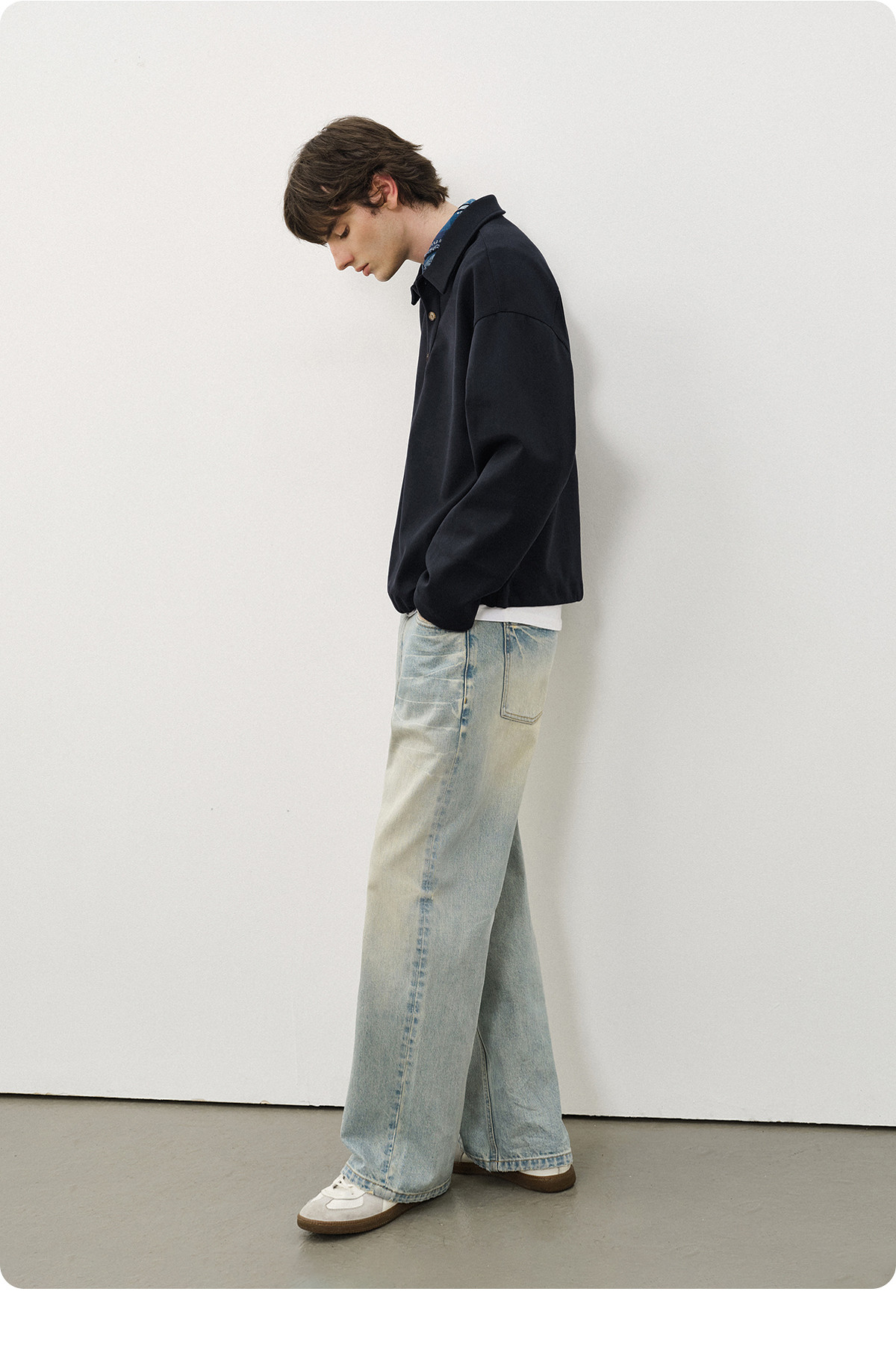 714street水洗纯棉宽松休闲裤男2025秋季新款弯刀裤cleanfit长裤