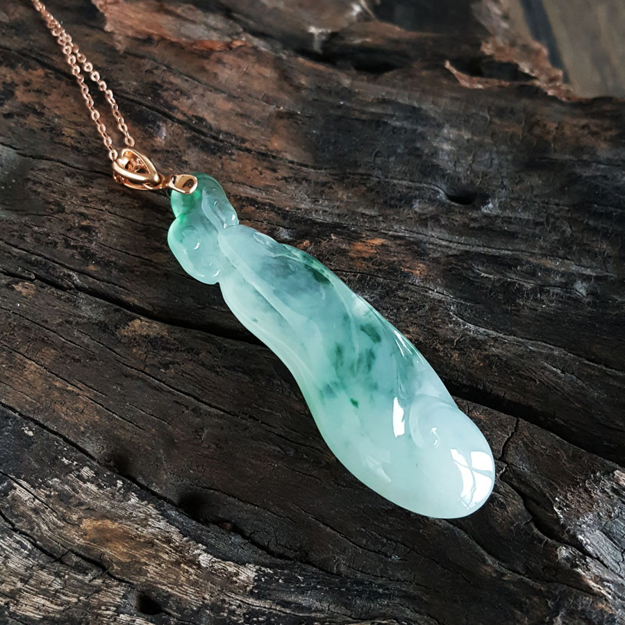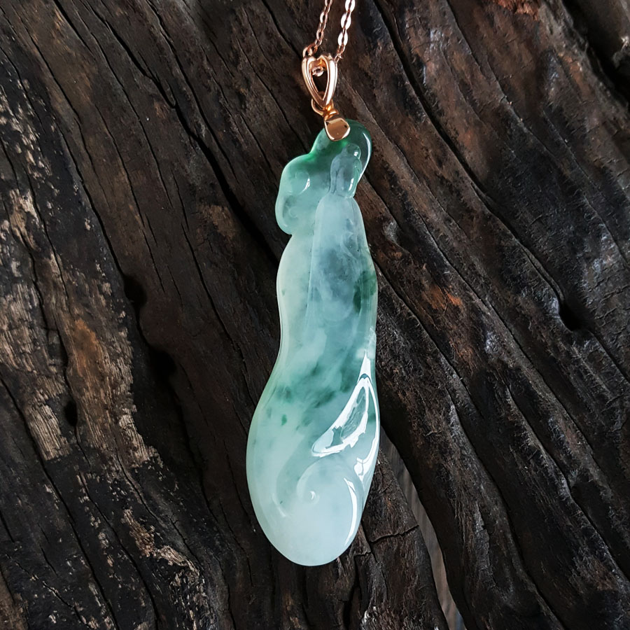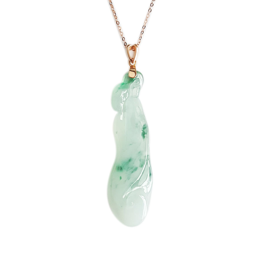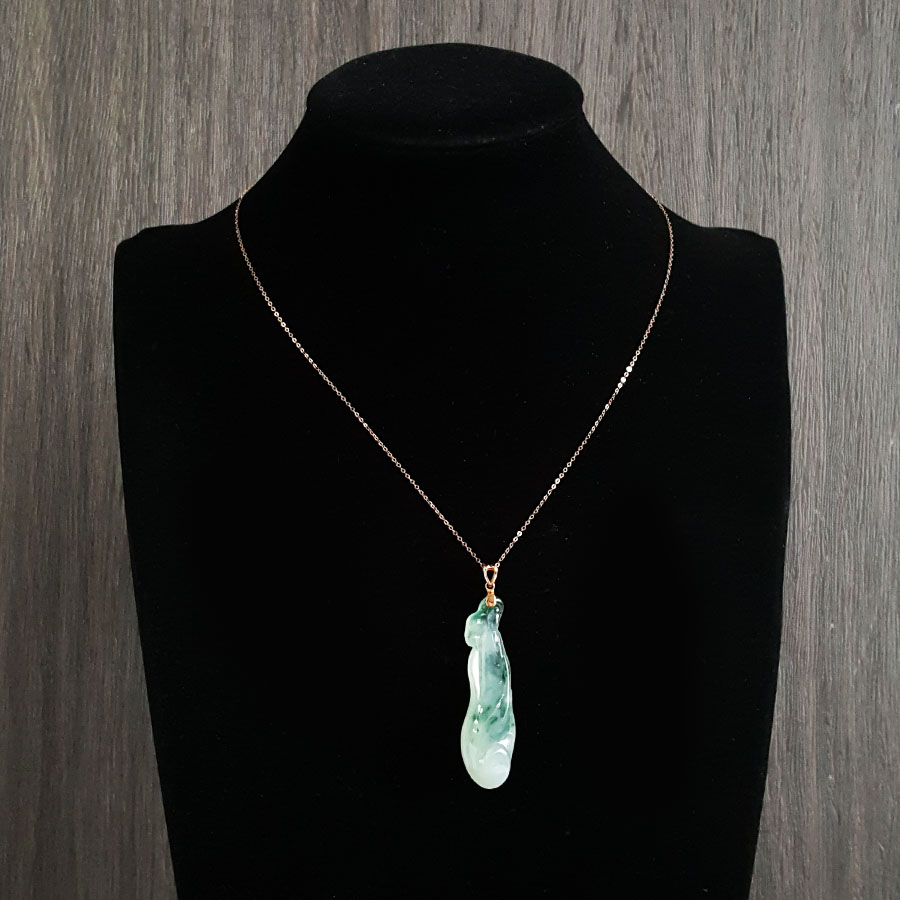 名称 | AU750玫瑰金镶天然冰种飘花悟道造型翡翠吊坠项链 |