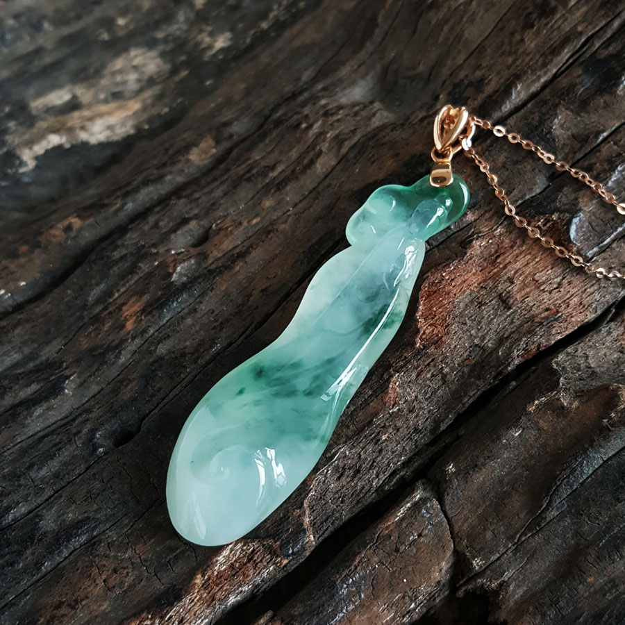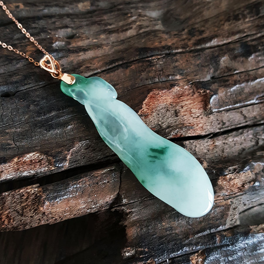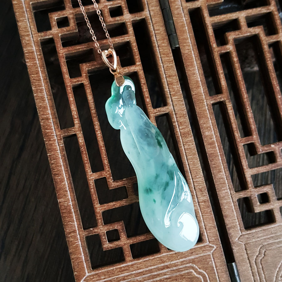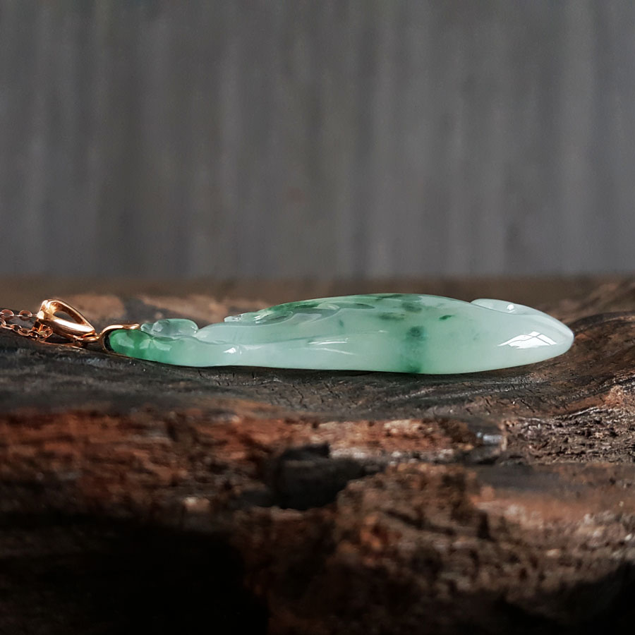 名称 | AU750玫瑰金镶天然冰种飘花悟道造型翡翠吊坠项链 |