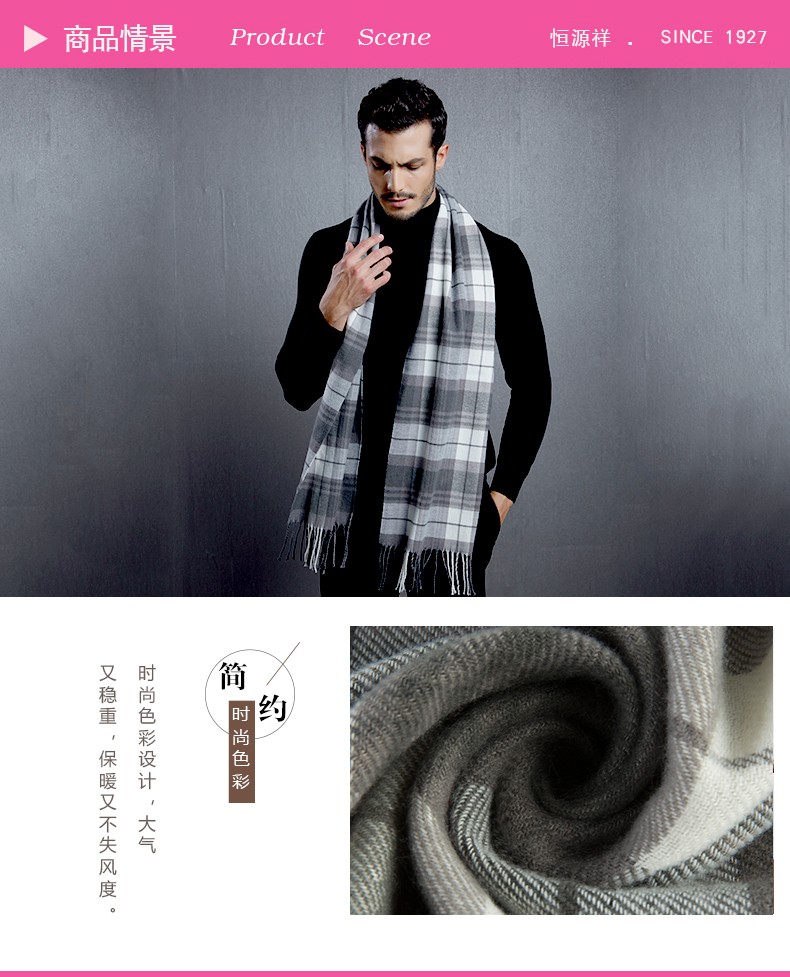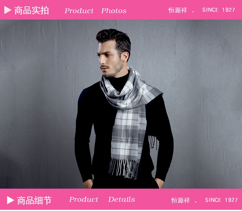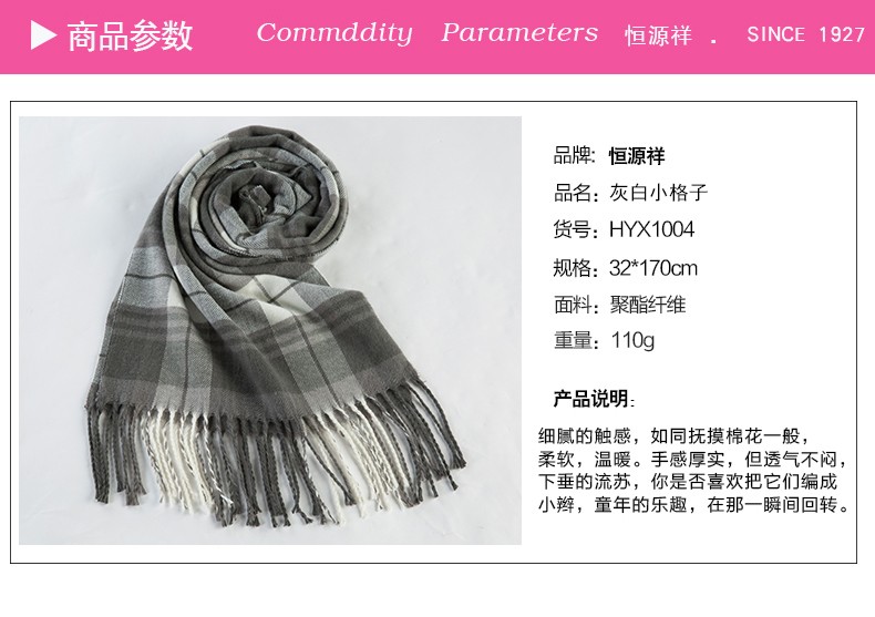 恒源祥(HYX) 恒源祥礼业HYX1004灰白小格子围巾 浅灰色 30*170