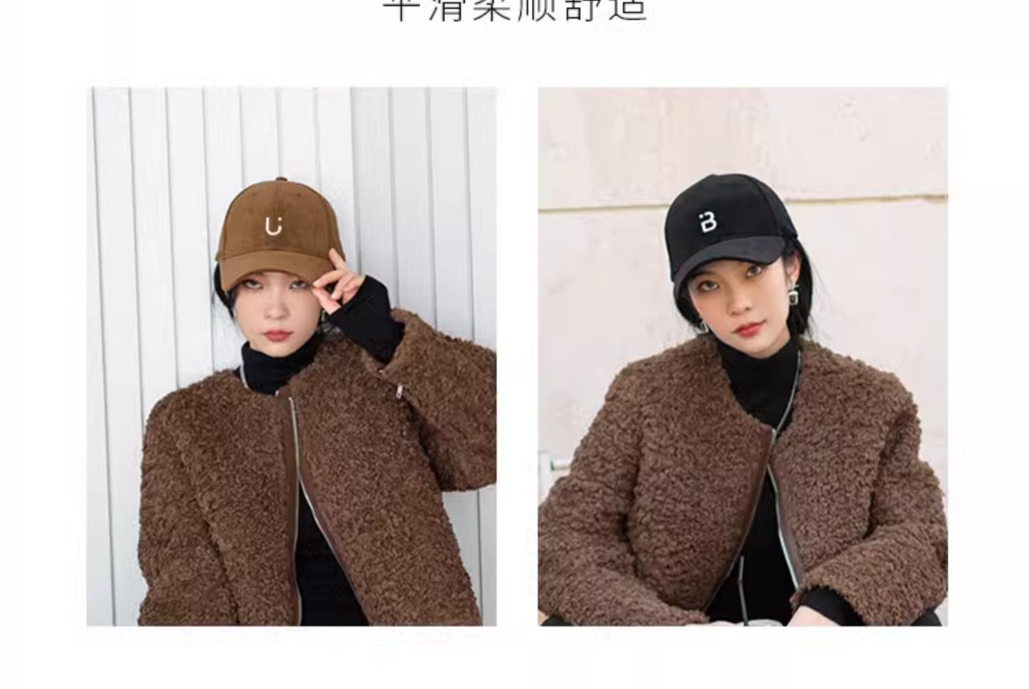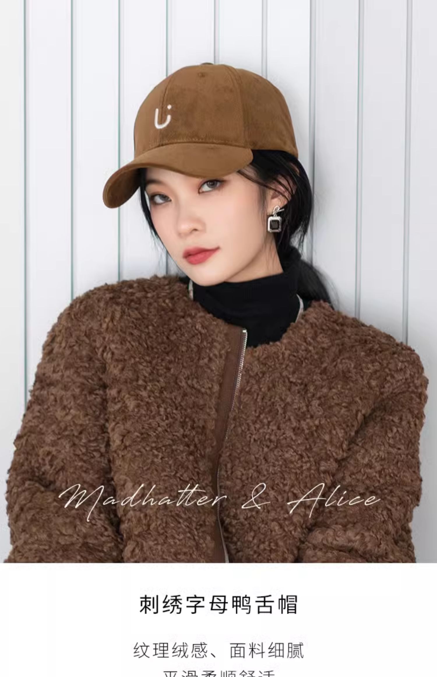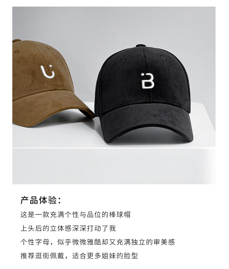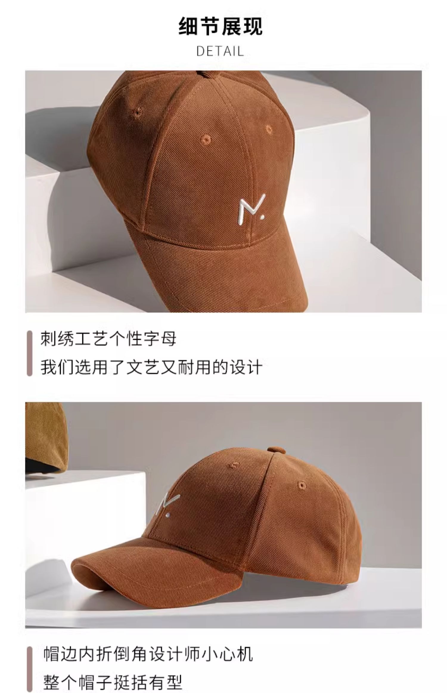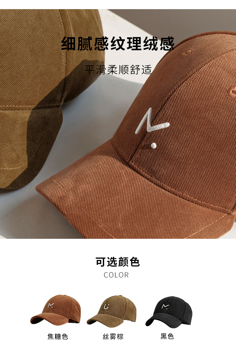 疯帽子 简约灯芯绒鸭舌帽 加宽帽檐显脸小棒球帽子女 通用款春季