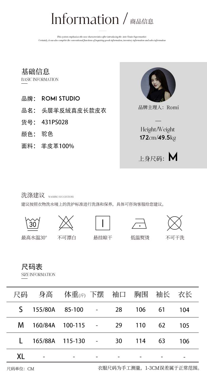 ROMI STUDIO“棕标甄选”土耳其进口头层小羊反绒宽松皮衣 431PS028