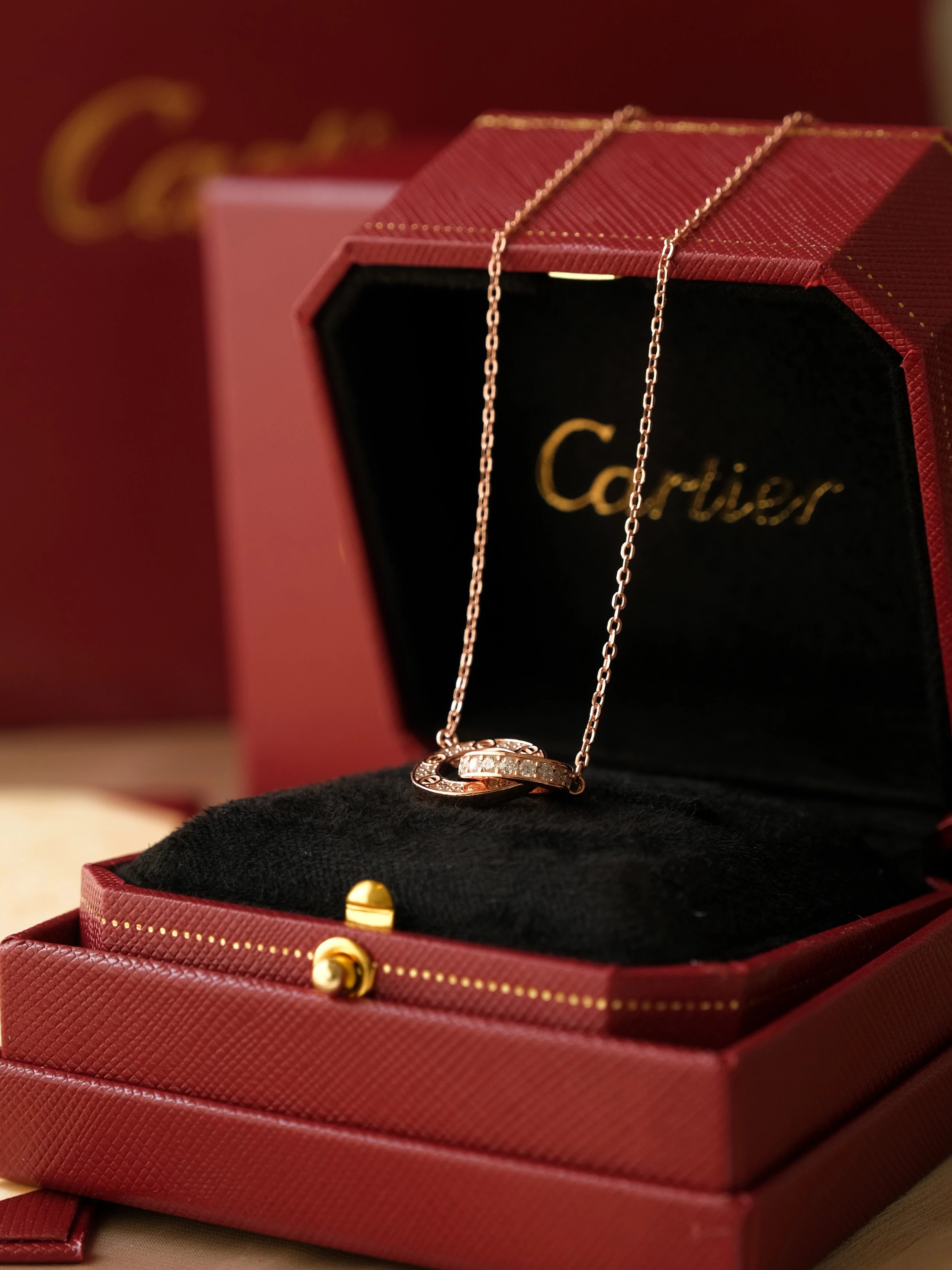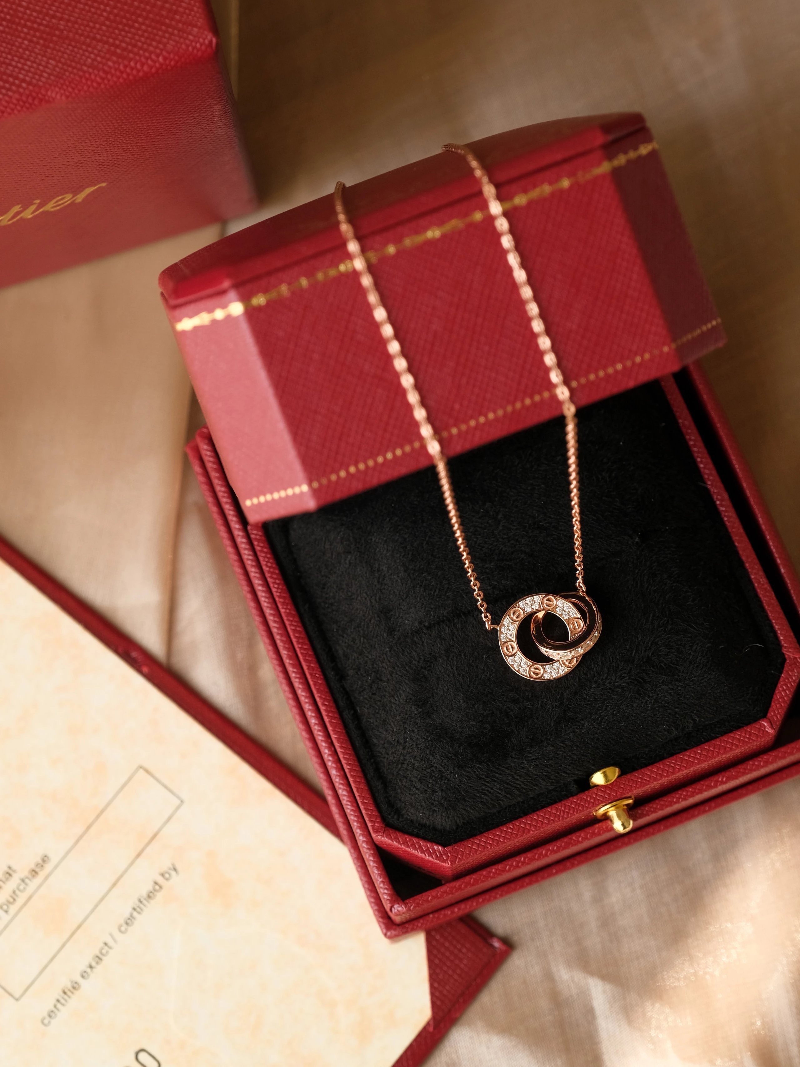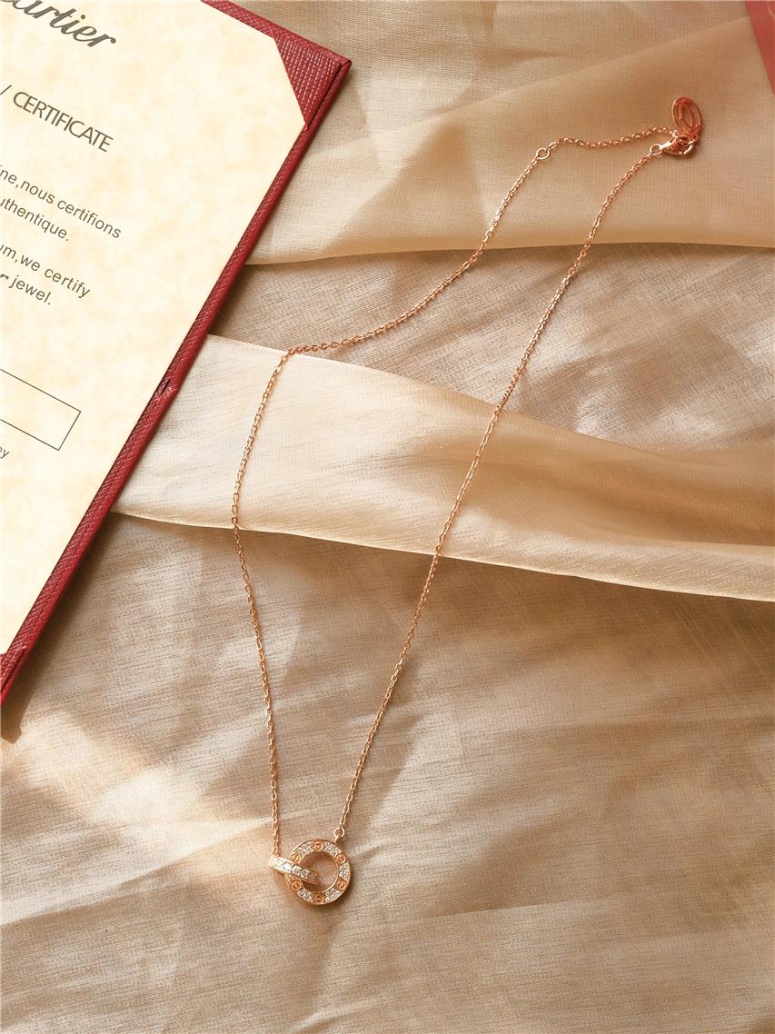 Cartier卡地亚 新款 Love系列 排钻 双环 项链 精选德国进口s925纯银材质电镀厚金 采用5a级别高碳钻 市面最高版本了 无需多做介绍了 来多少批都不够卖的款 两色齐 项链 配全套包装