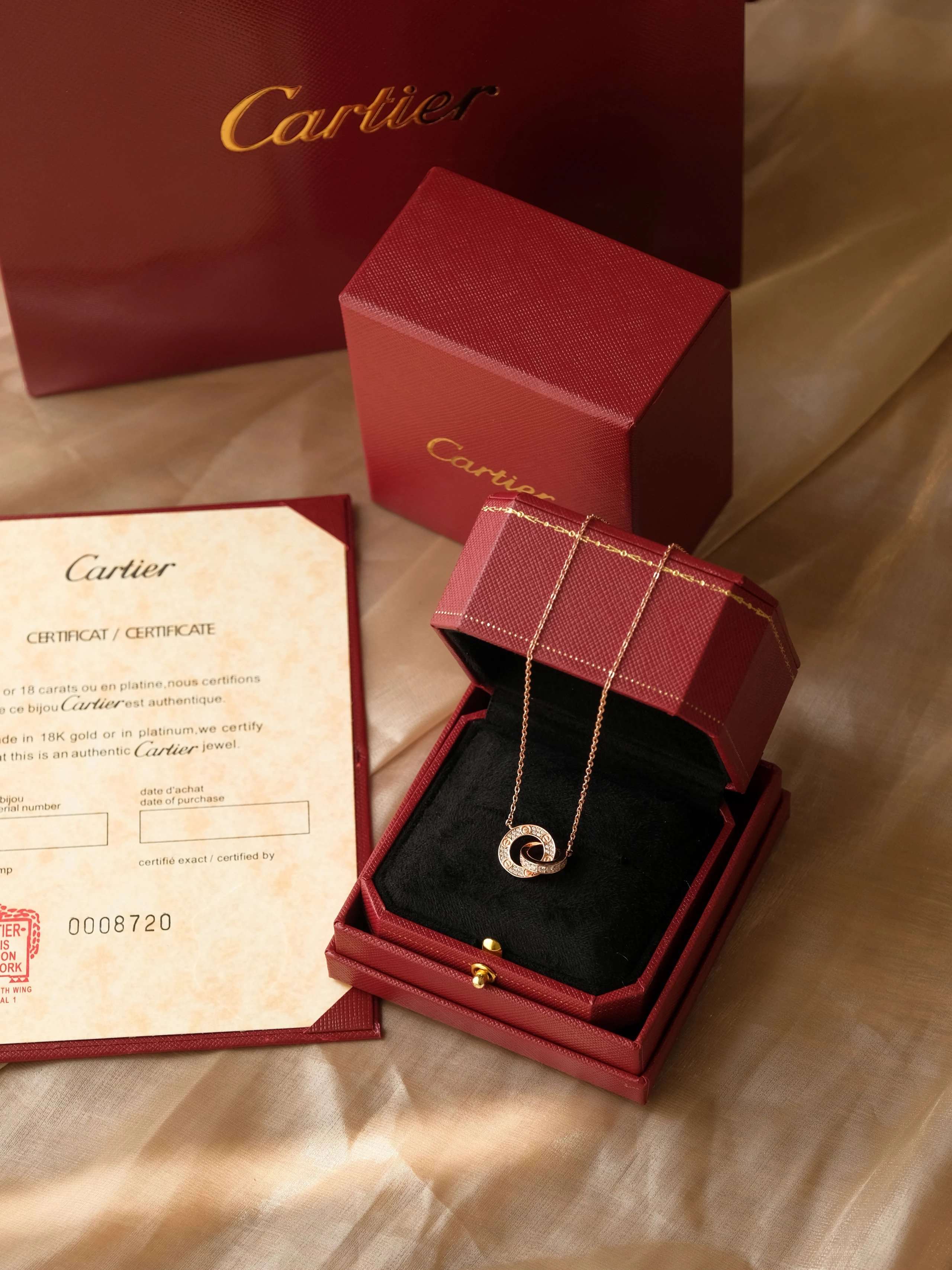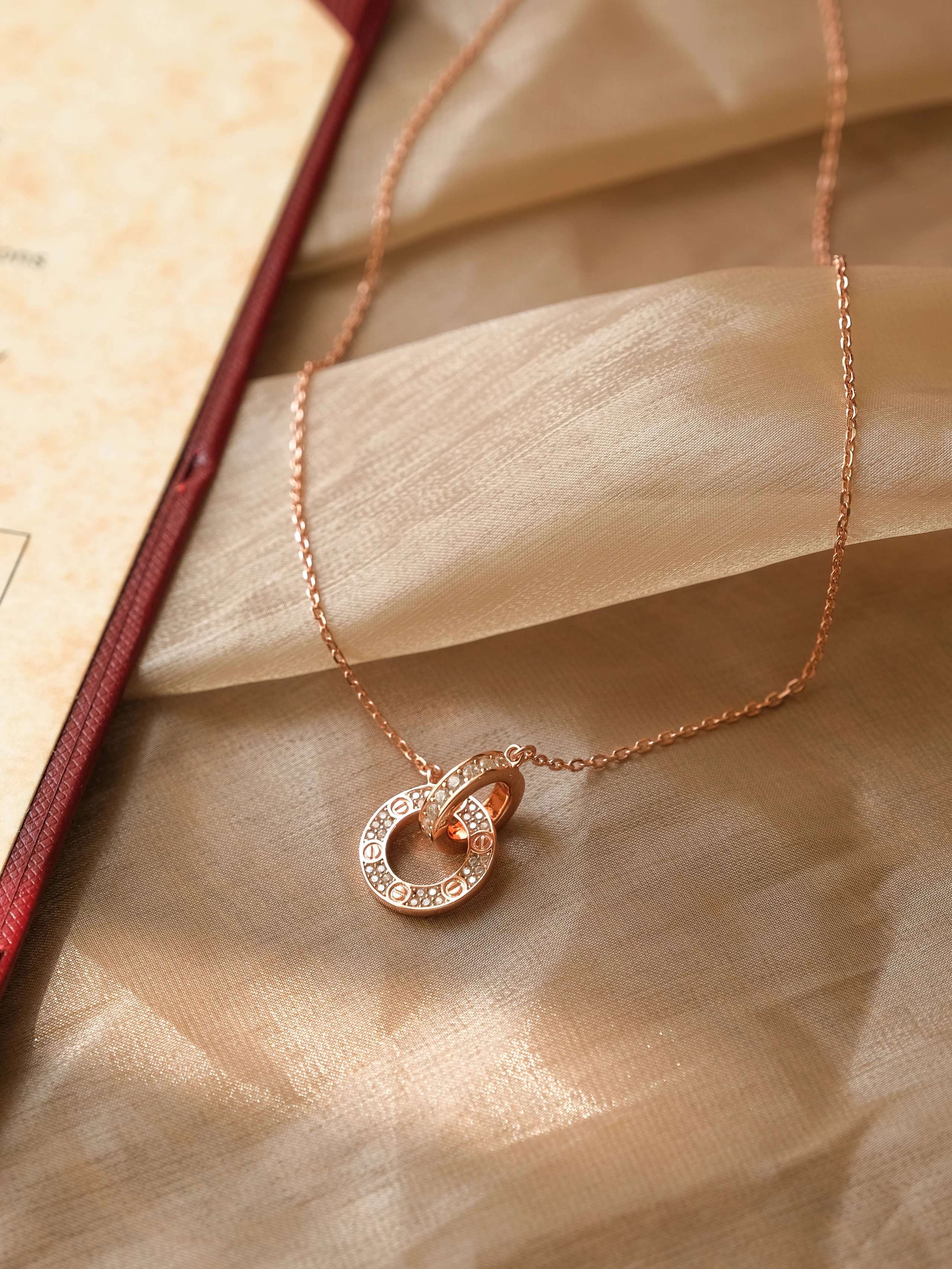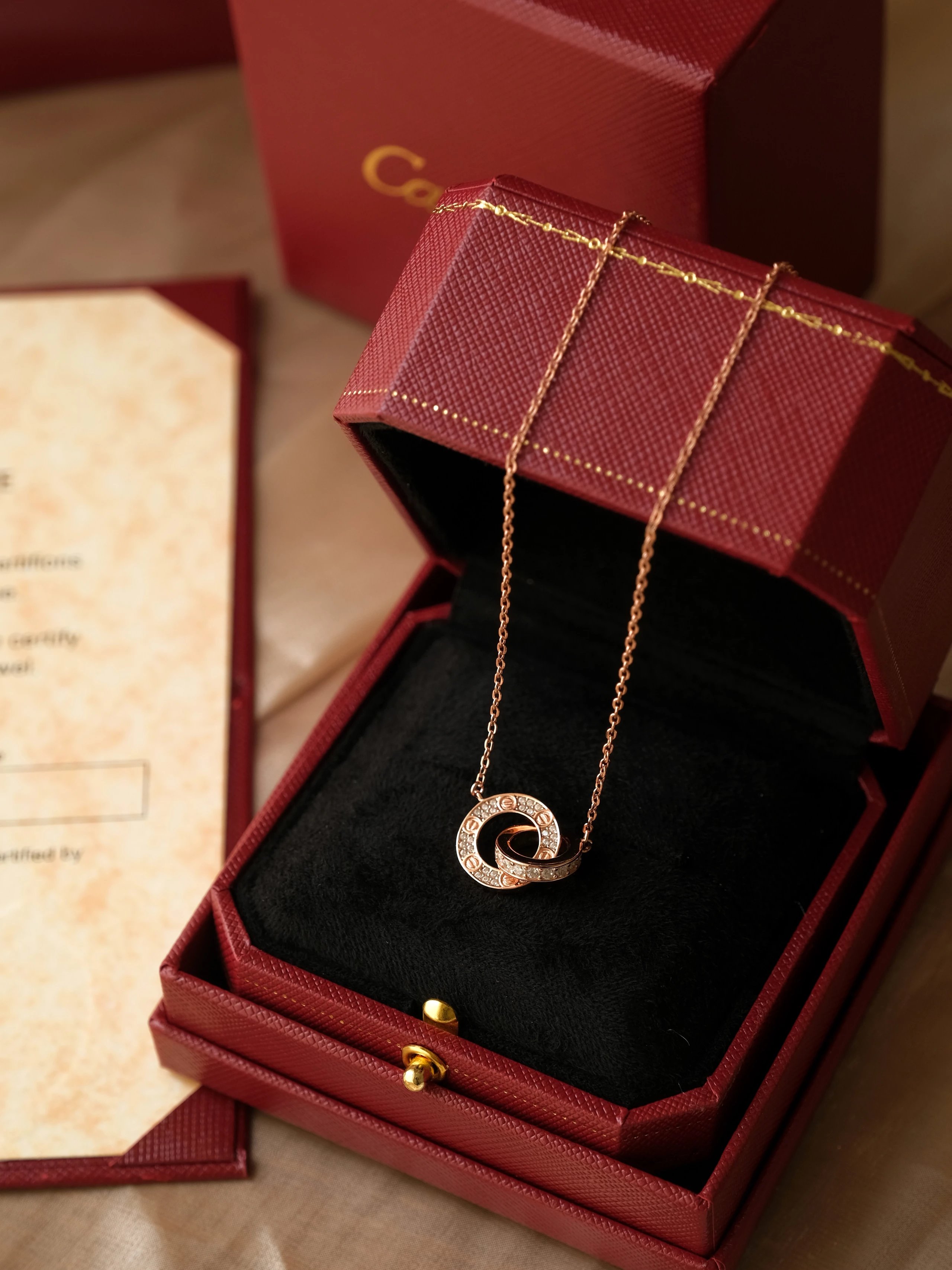 Cartier卡地亚 新款 Love系列 排钻 双环 项链 精选德国进口s925纯银材质电镀厚金 采用5a级别高碳钻 市面最高版本了 无需多做介绍了 来多少批都不够卖的款 两色齐 项链 配全套包装